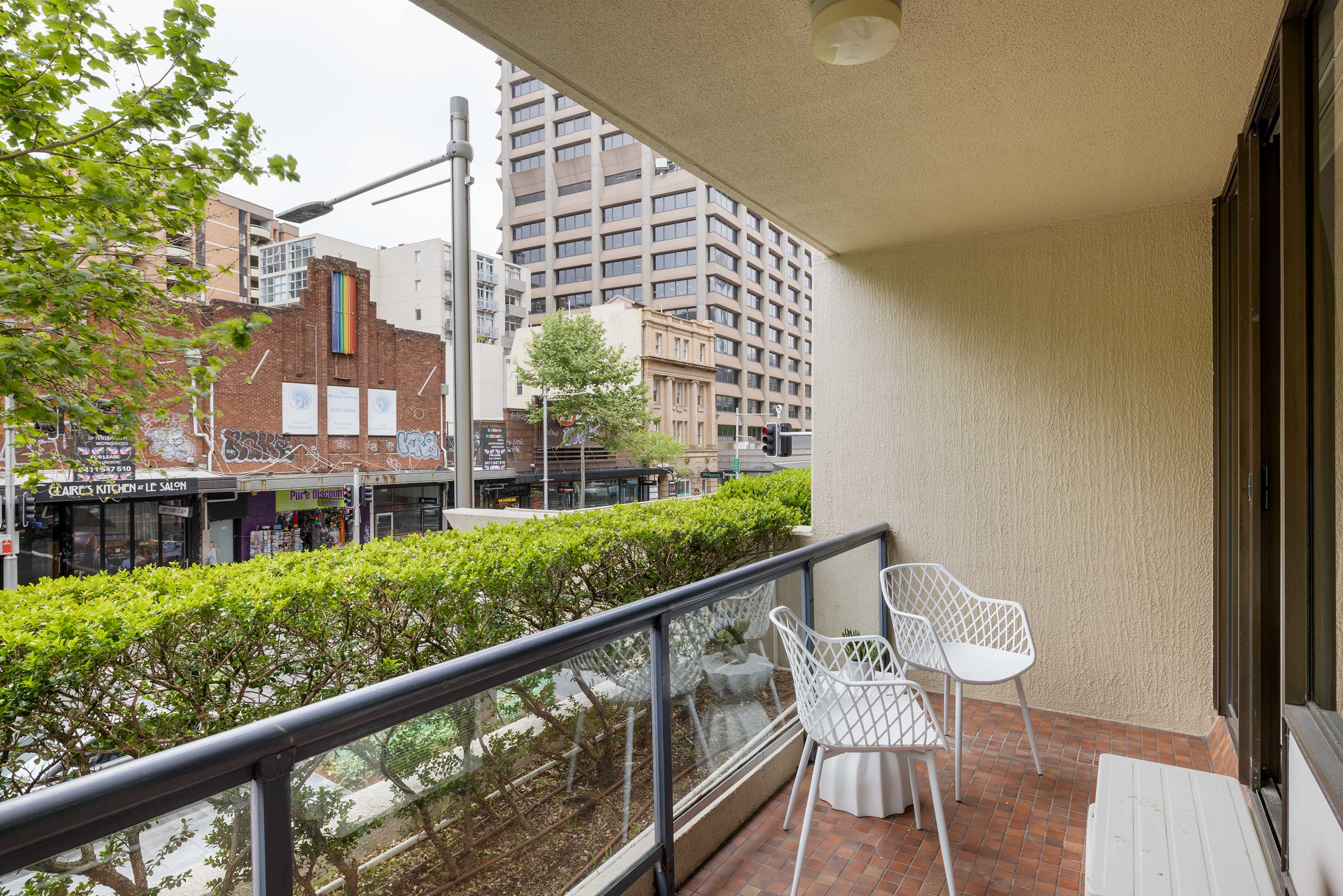 - Opens onto balcony in leafy setting