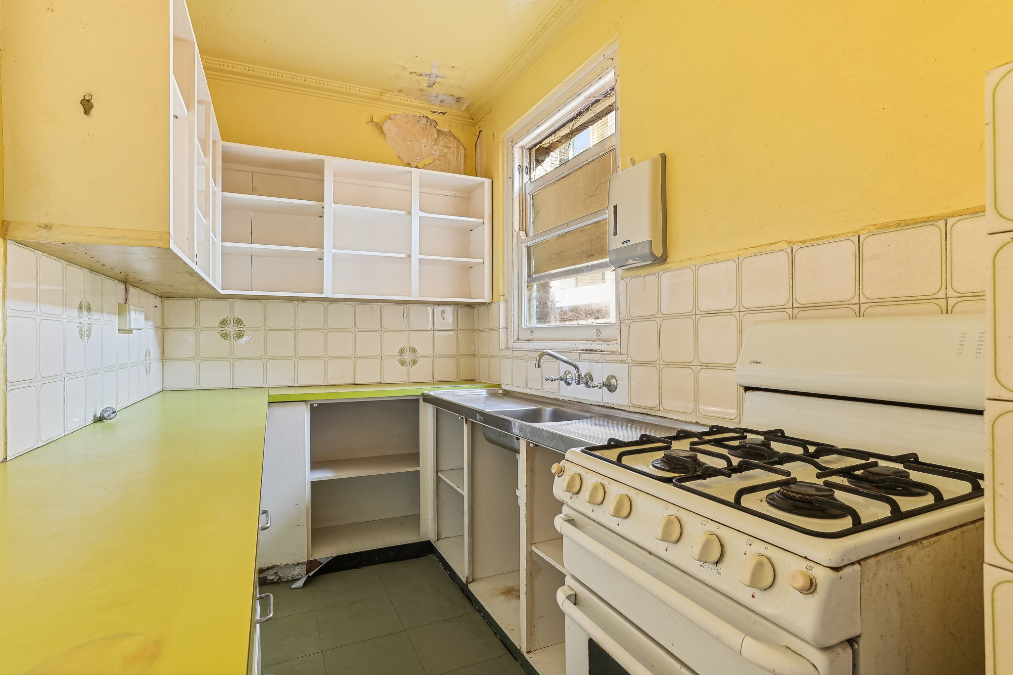 - Gas kitchen, full bathroom and two bedrooms in original condition