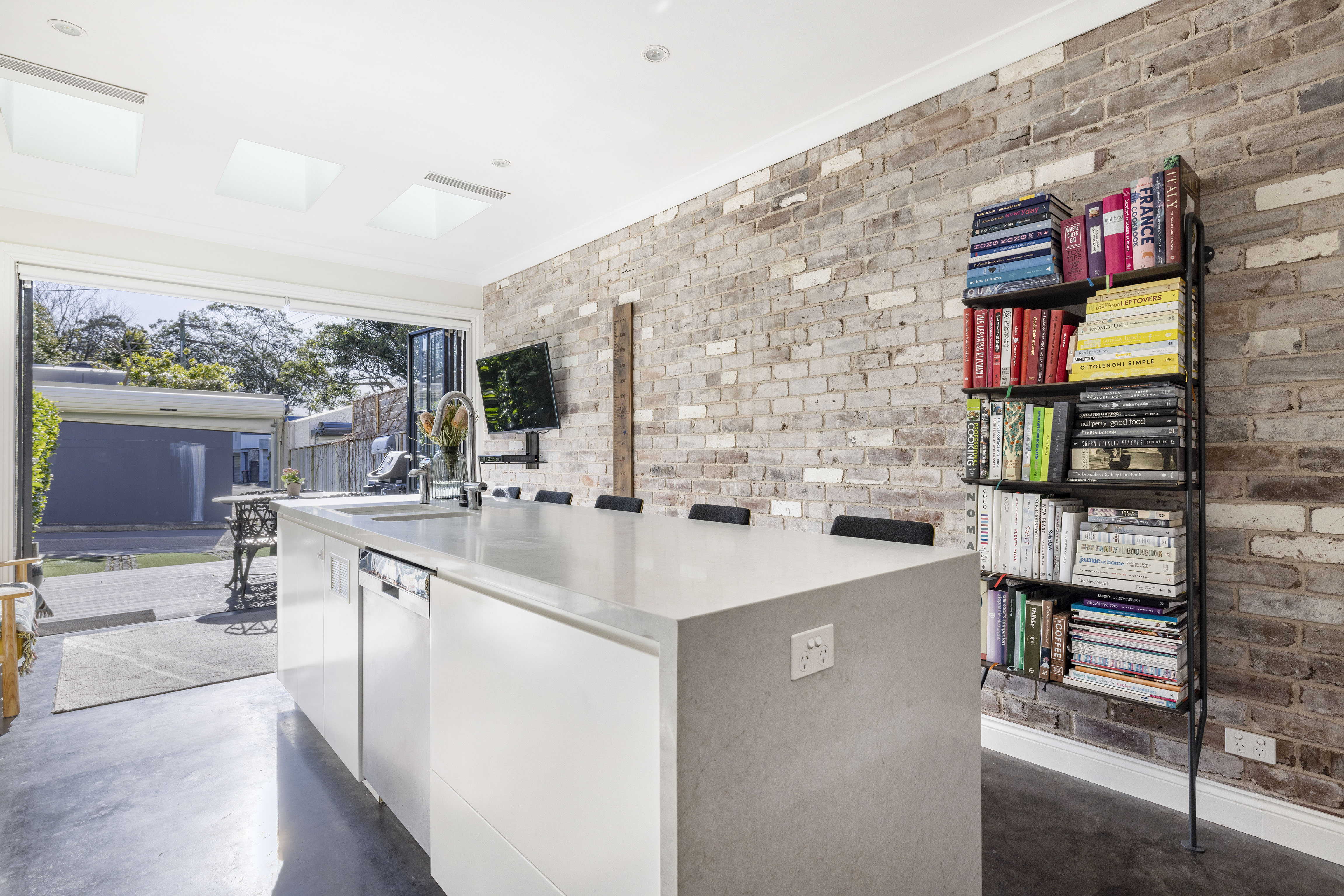 - Sky-lit stone kitchen, gas & induction