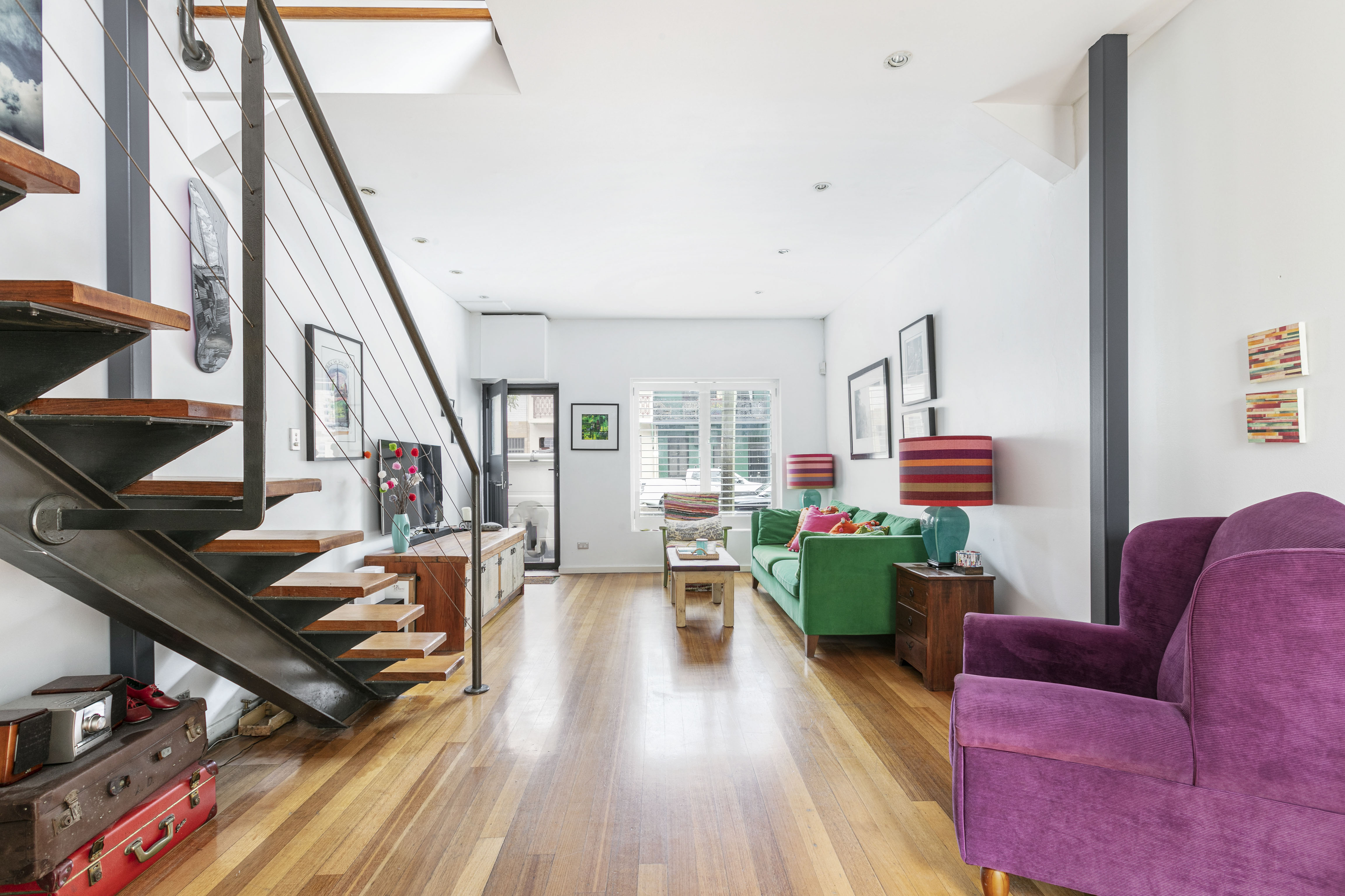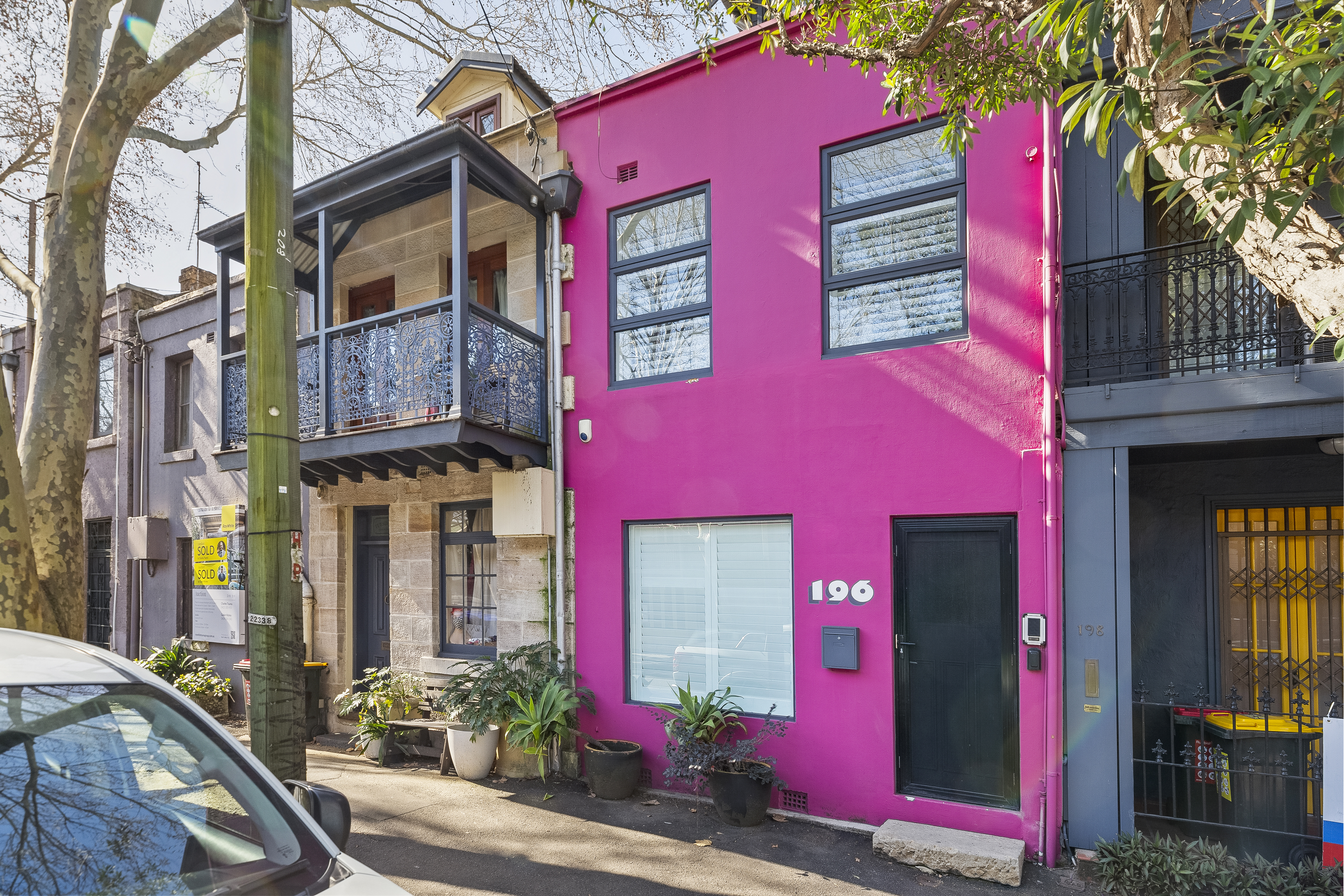 This terrace’s modern fuchsia façade makes a bold statement in a classic row along a tree-lined street. Inside is a home of impressive privacy and natural light, especially in the atrium-like dining room which seamlessly connects outdoors. Crown Street’s dining and attractions are at your door, plus it’s a short stroll to the CBD via Hyde Park.
