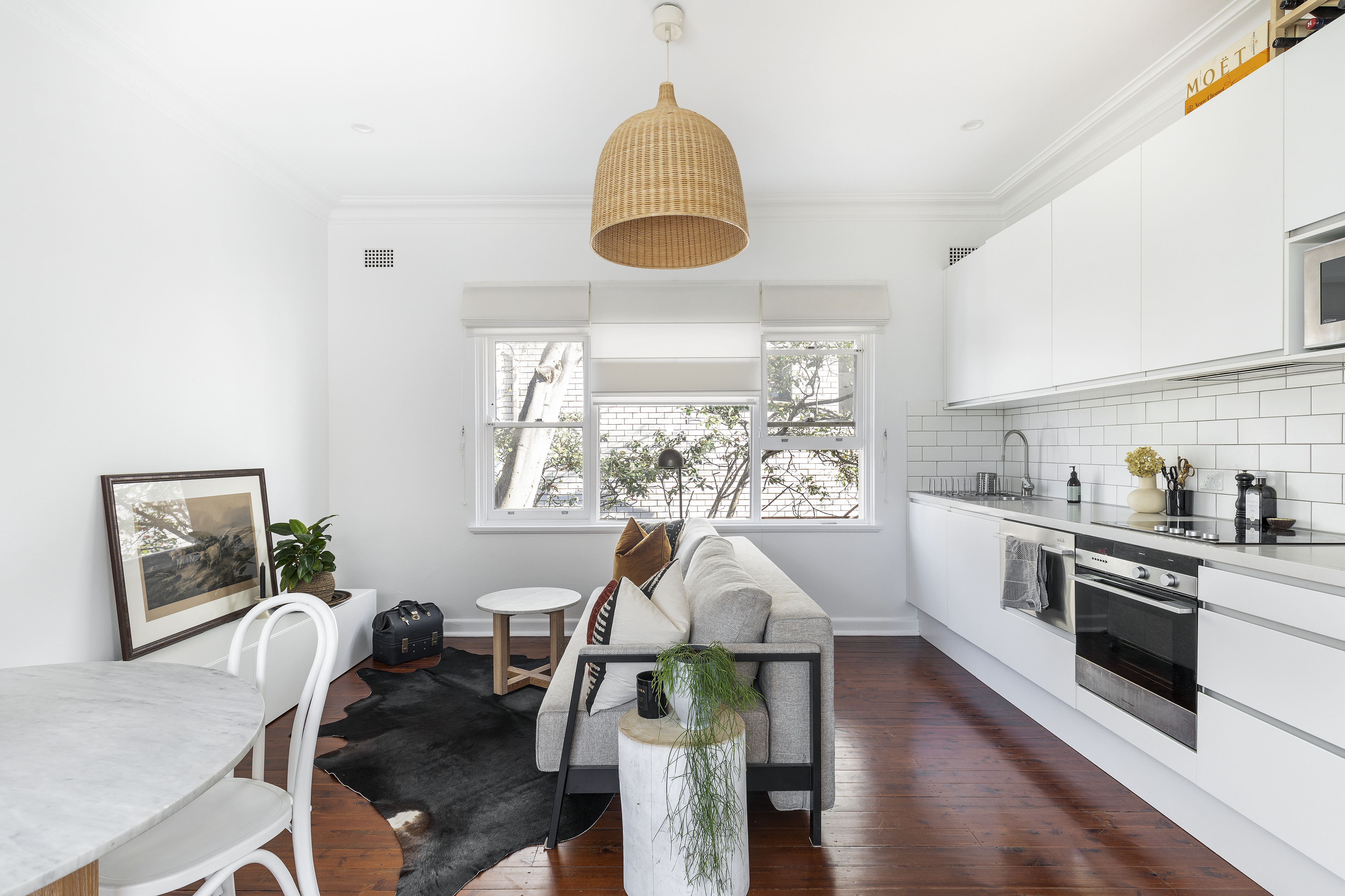With a prime top-floor position full of natural light and privacy, this renovated apartment is wrapped in balconies for a modern indoor/outdoor design. With tasteful renovations throughout, it’s a modern classic in a top location, close to trains, on the cusp of Enmore and Newtown.