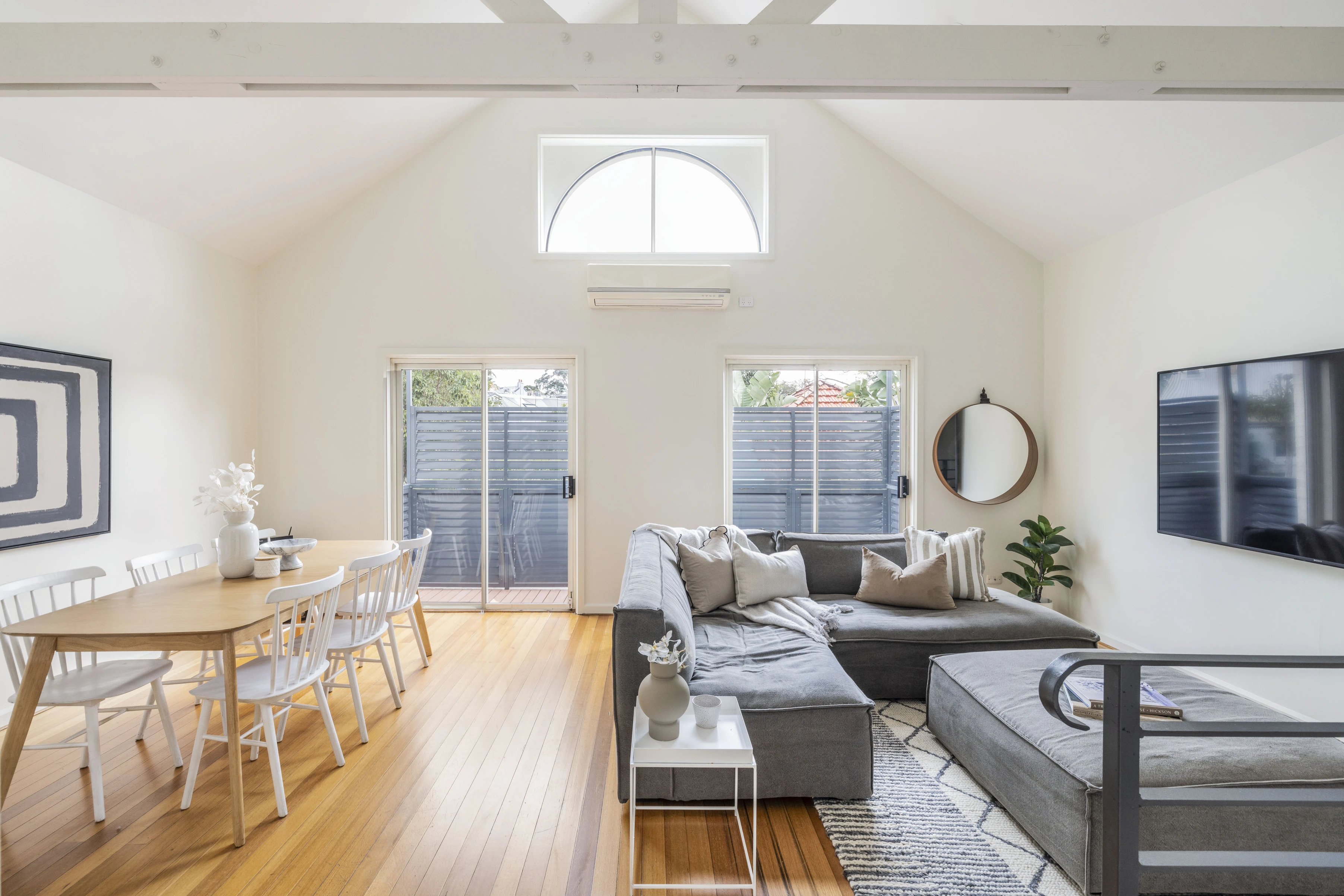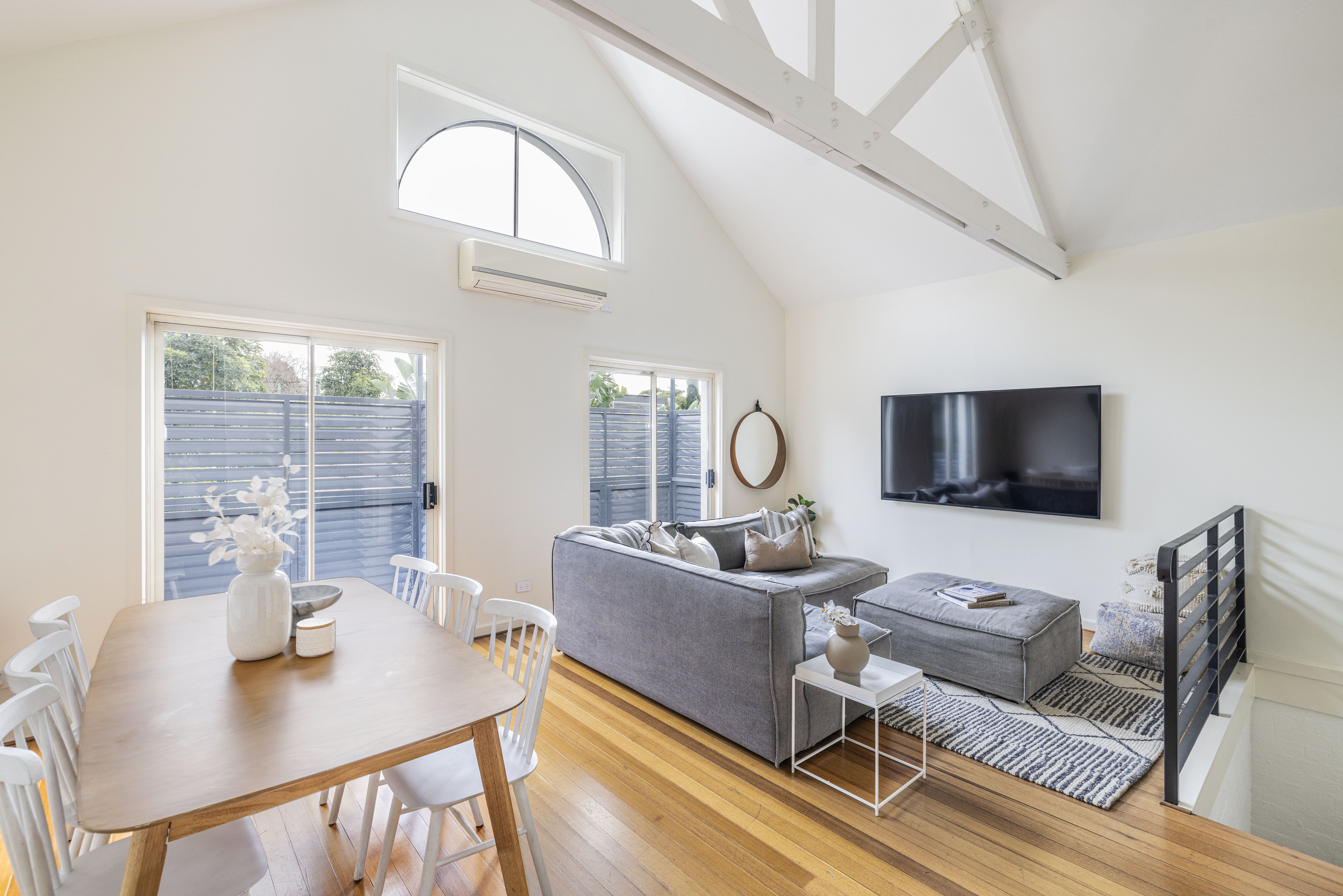 - Polished timber floors & pitched ceiling