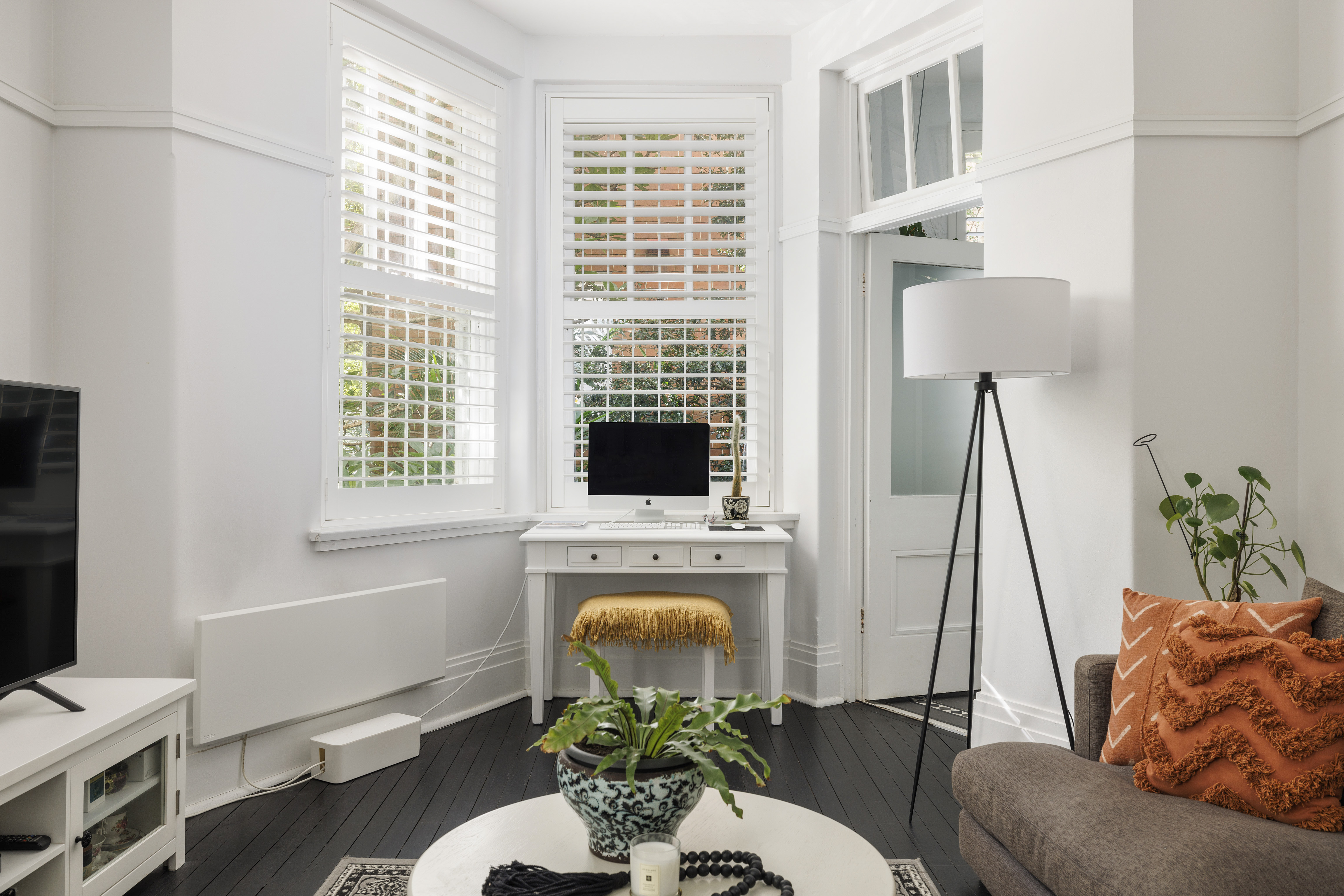 - High ceilings, floorboards, plant shutters