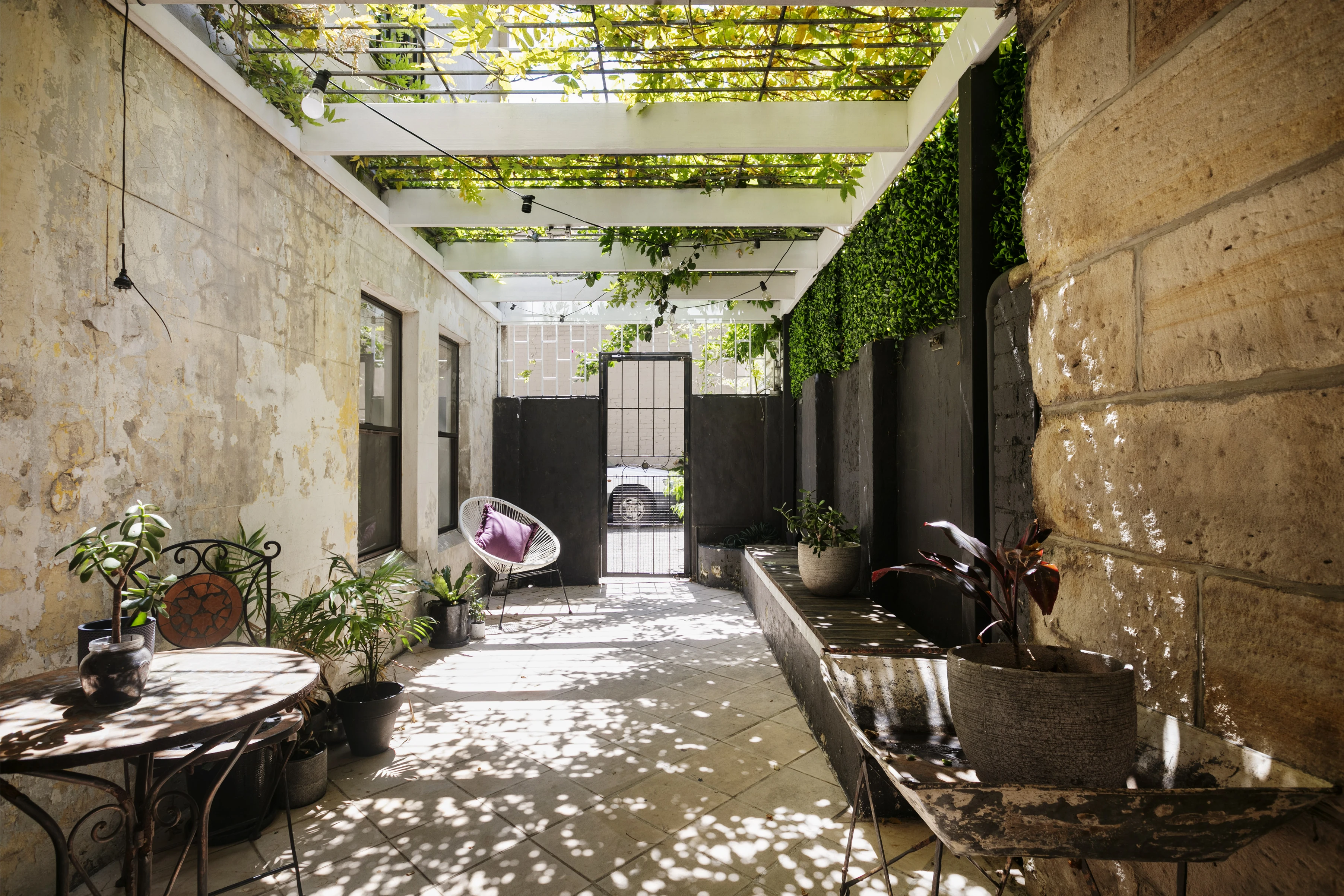 An unexpected courtyard home on the edge of the city, this unique home has an other-worldly charm, opening into a Tuscan-inspired patio. It's in a peaceful position at the rear of the building.
