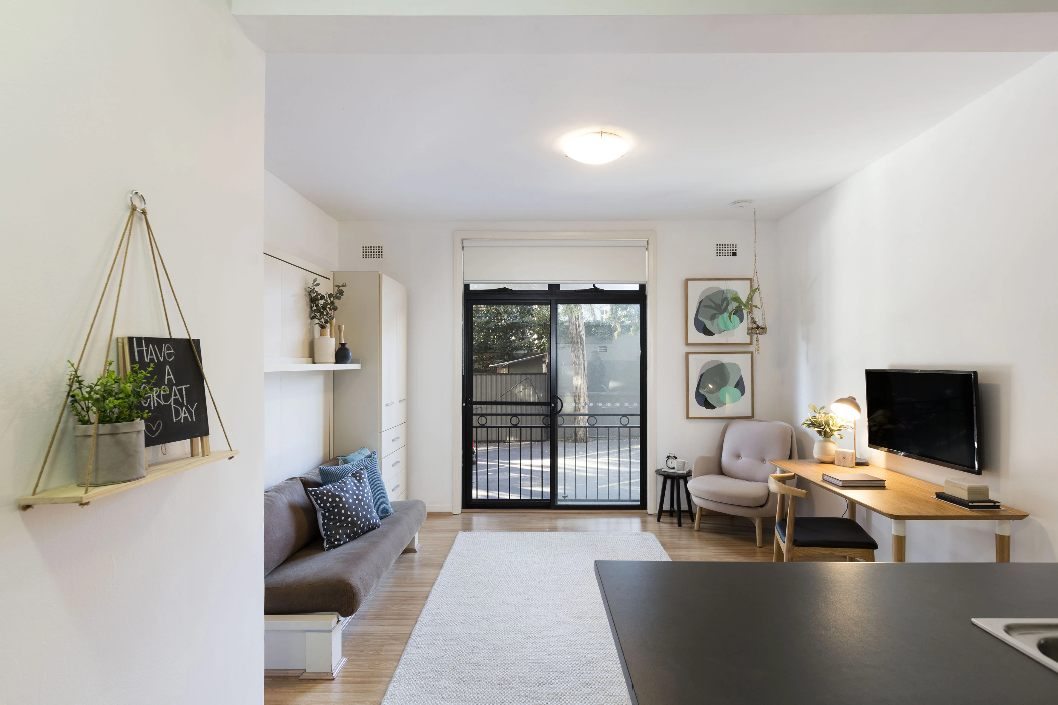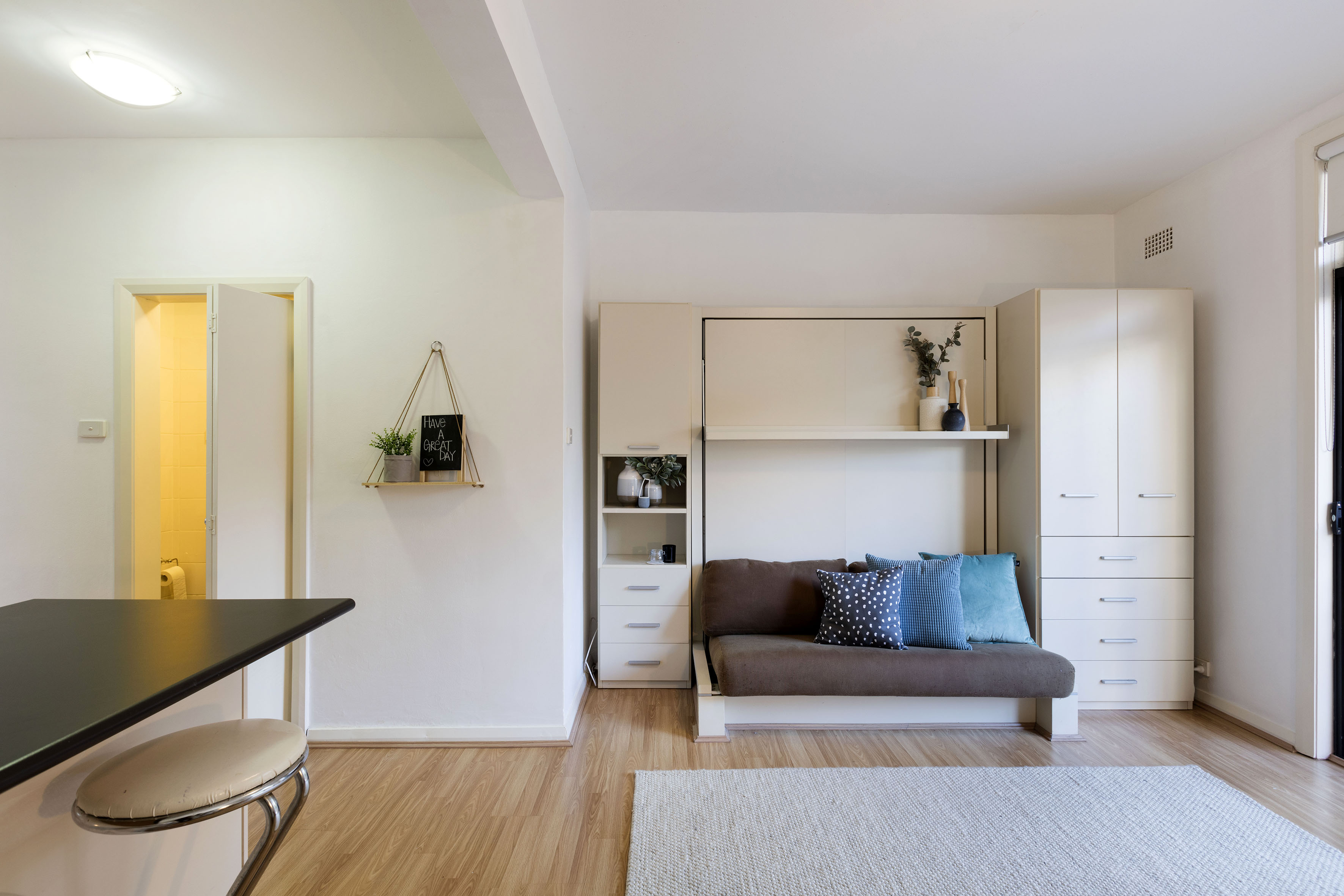 - Cabinetry & integrated pull-down bed