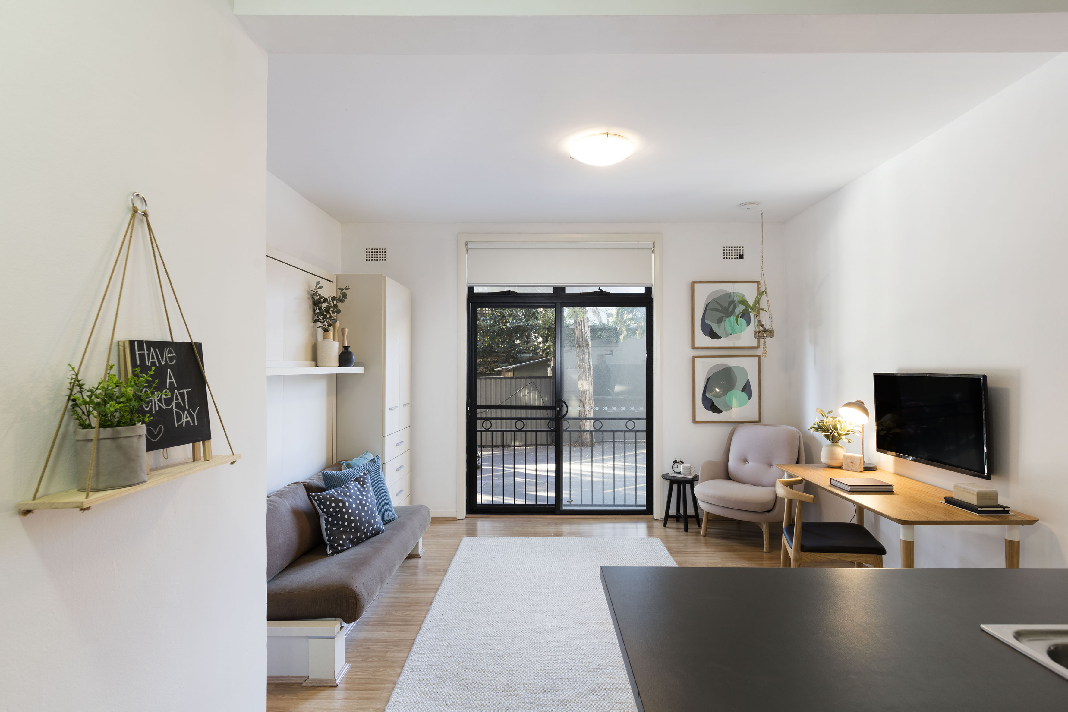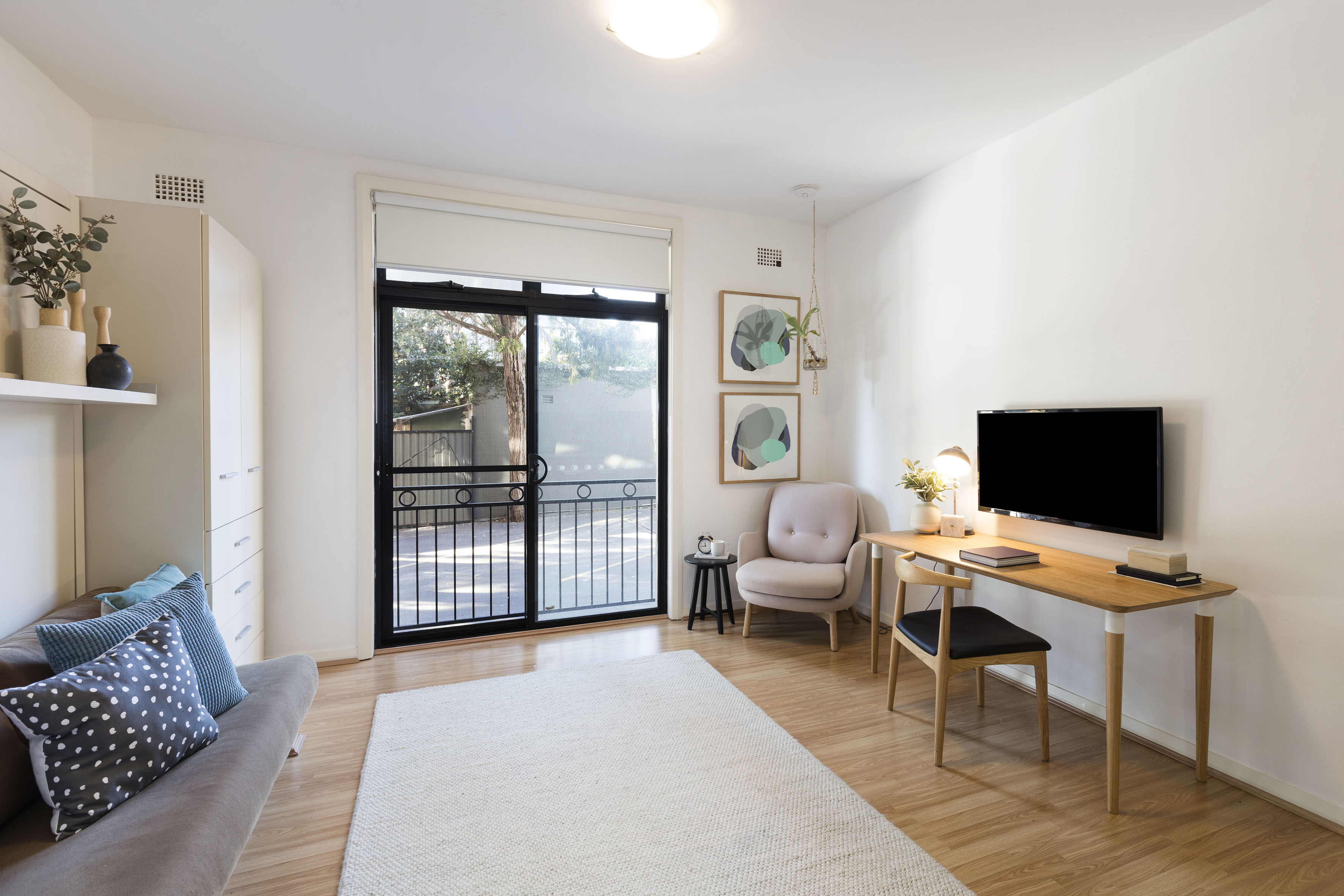 On the ground floor this apartment has an oversized feel thanks to its garden entry & courtyard views. A studio by definition, but it's more - the layout/flow means you could entertain here.