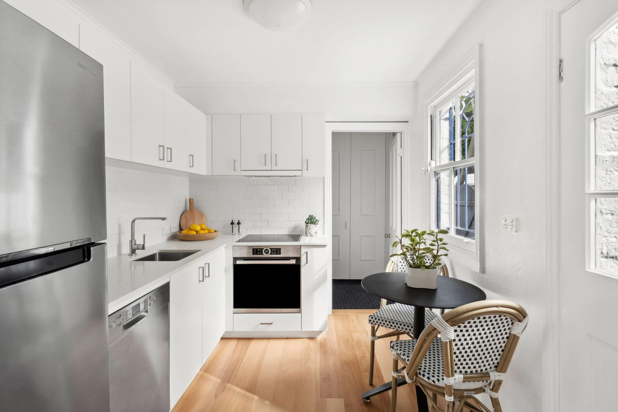 Light bathed, airy and free flowing in design, this beautifully revamped terrace is a rare find. It entices through spacious open proportions both upstairs and down, while connecting to a tranquil entertainers' courtyard outside.