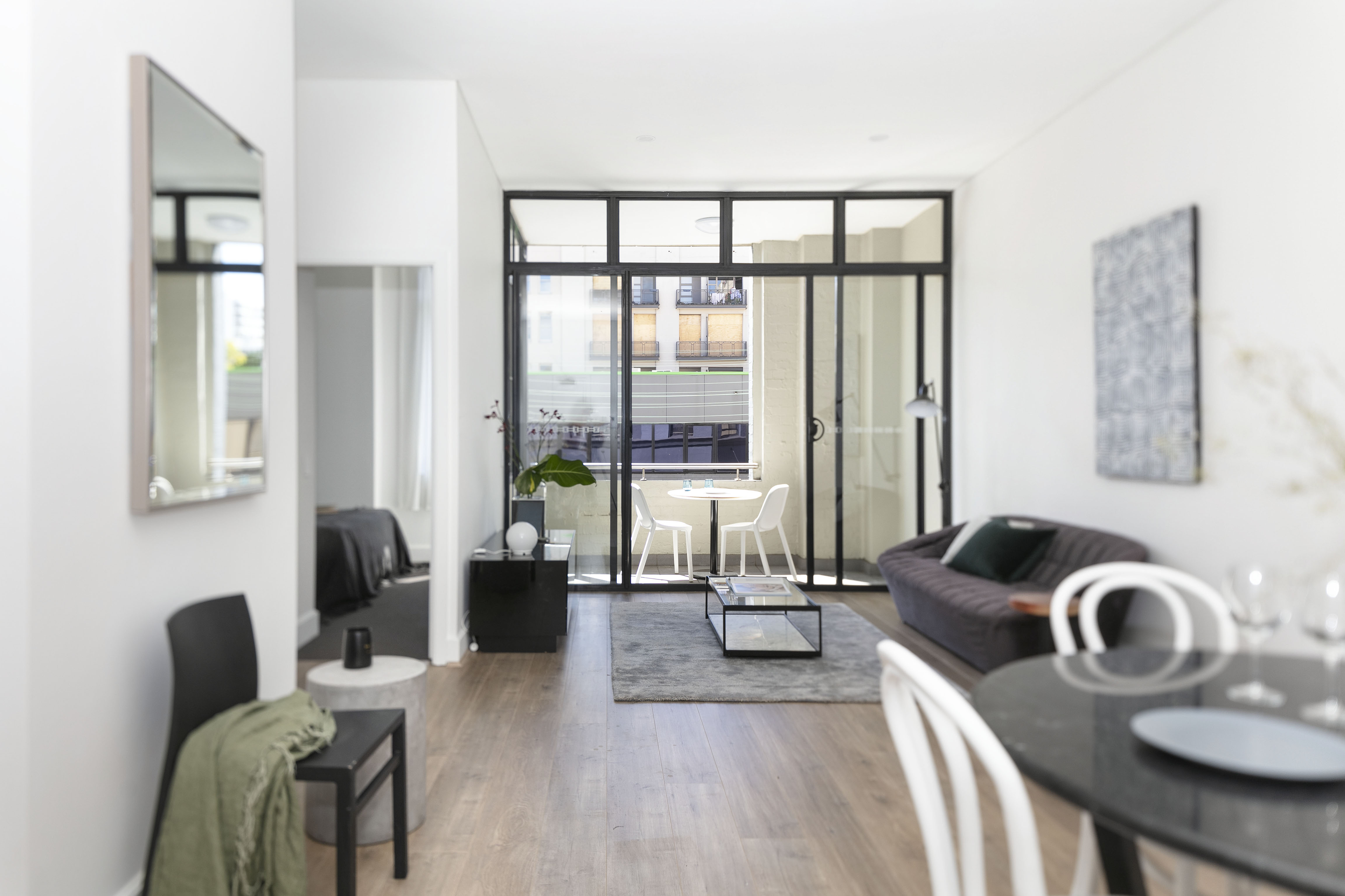 - Floor-to-ceiling glass to a balcony