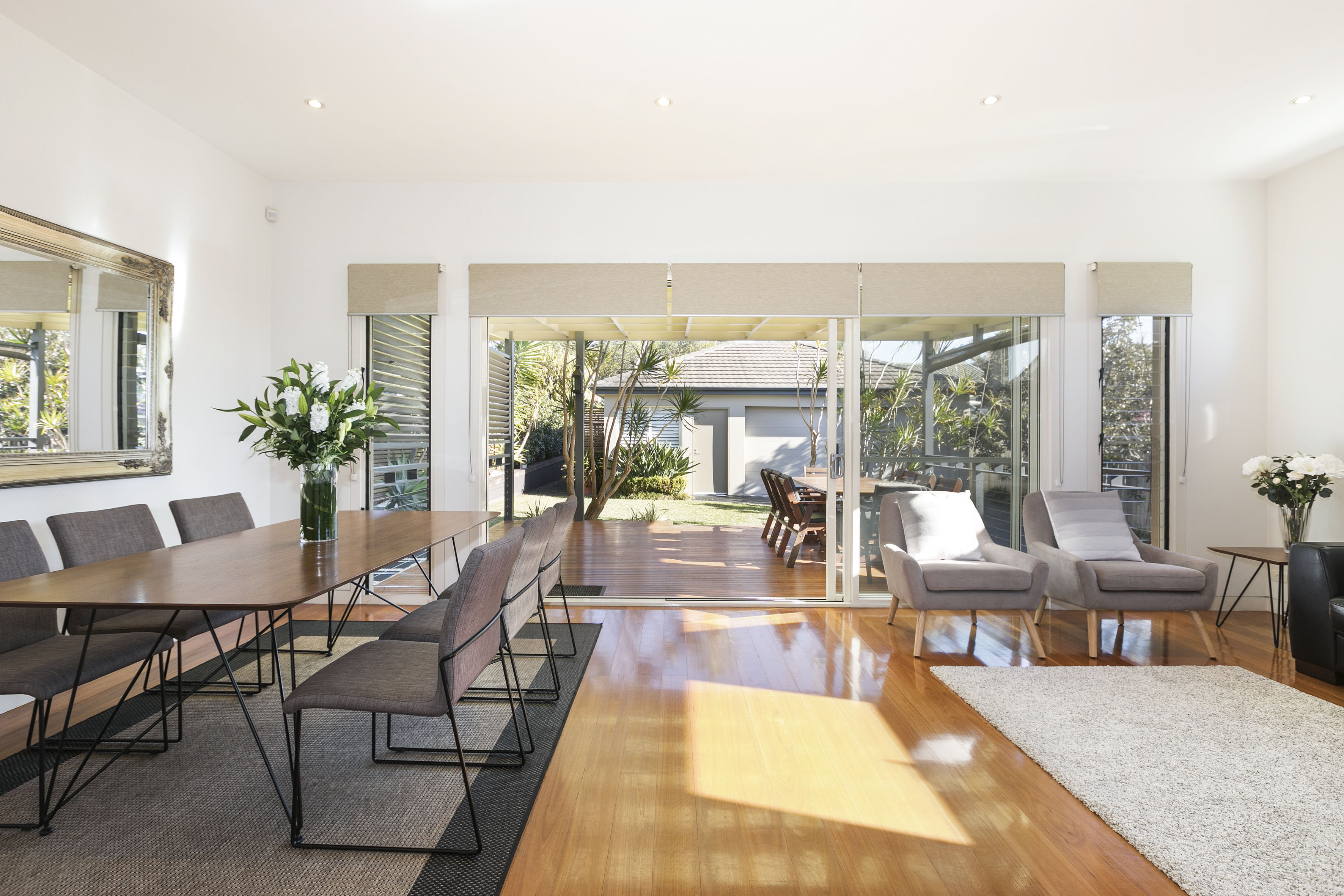 - Wide stacking doors opening to decking