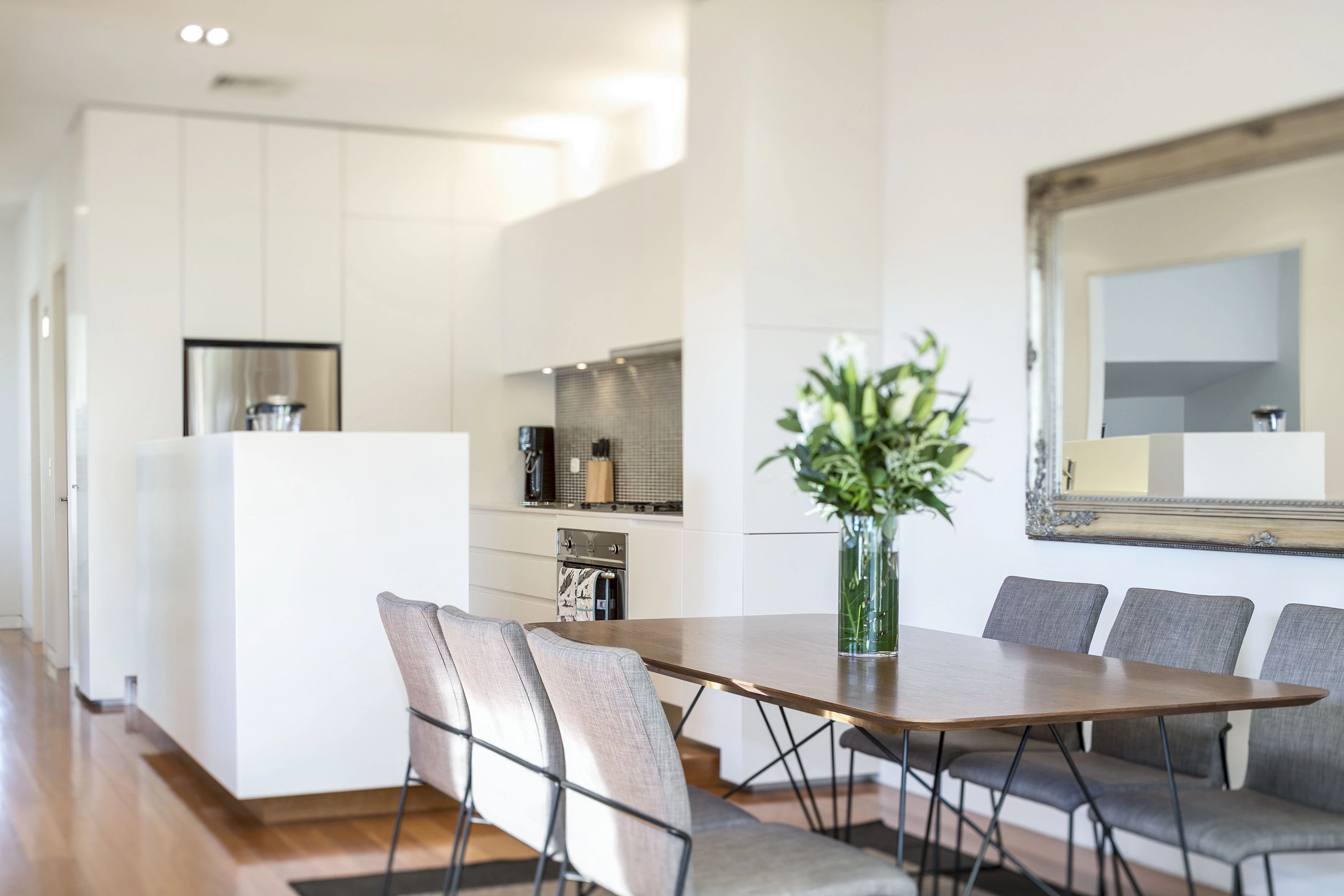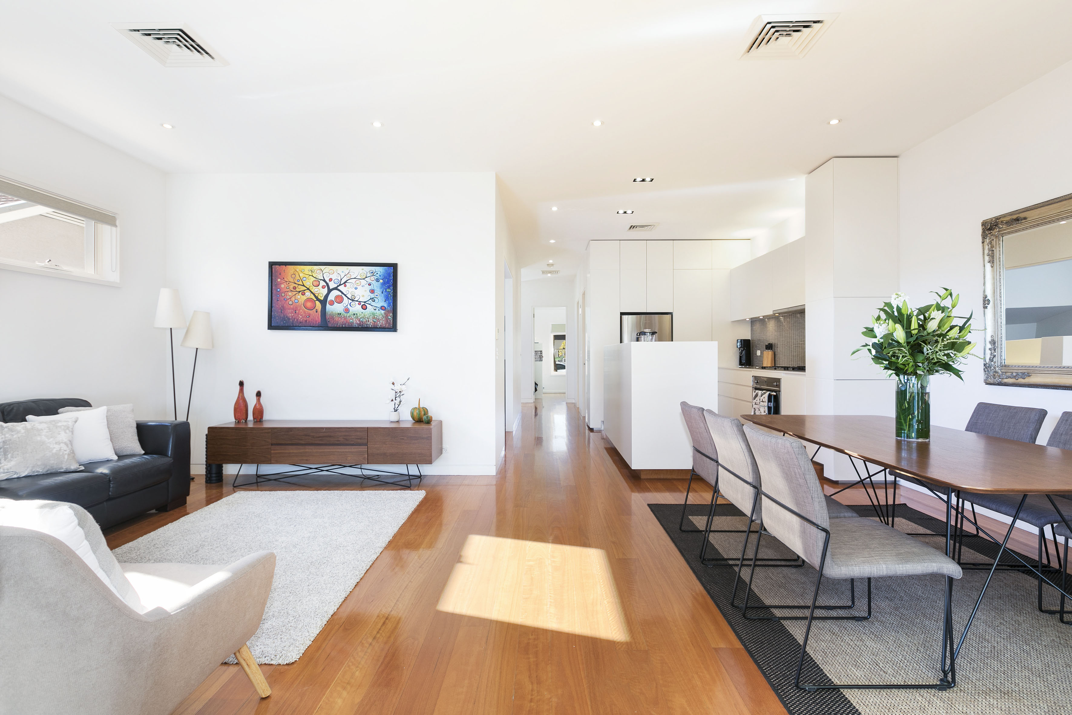 - Polished timber boards & high ceilings