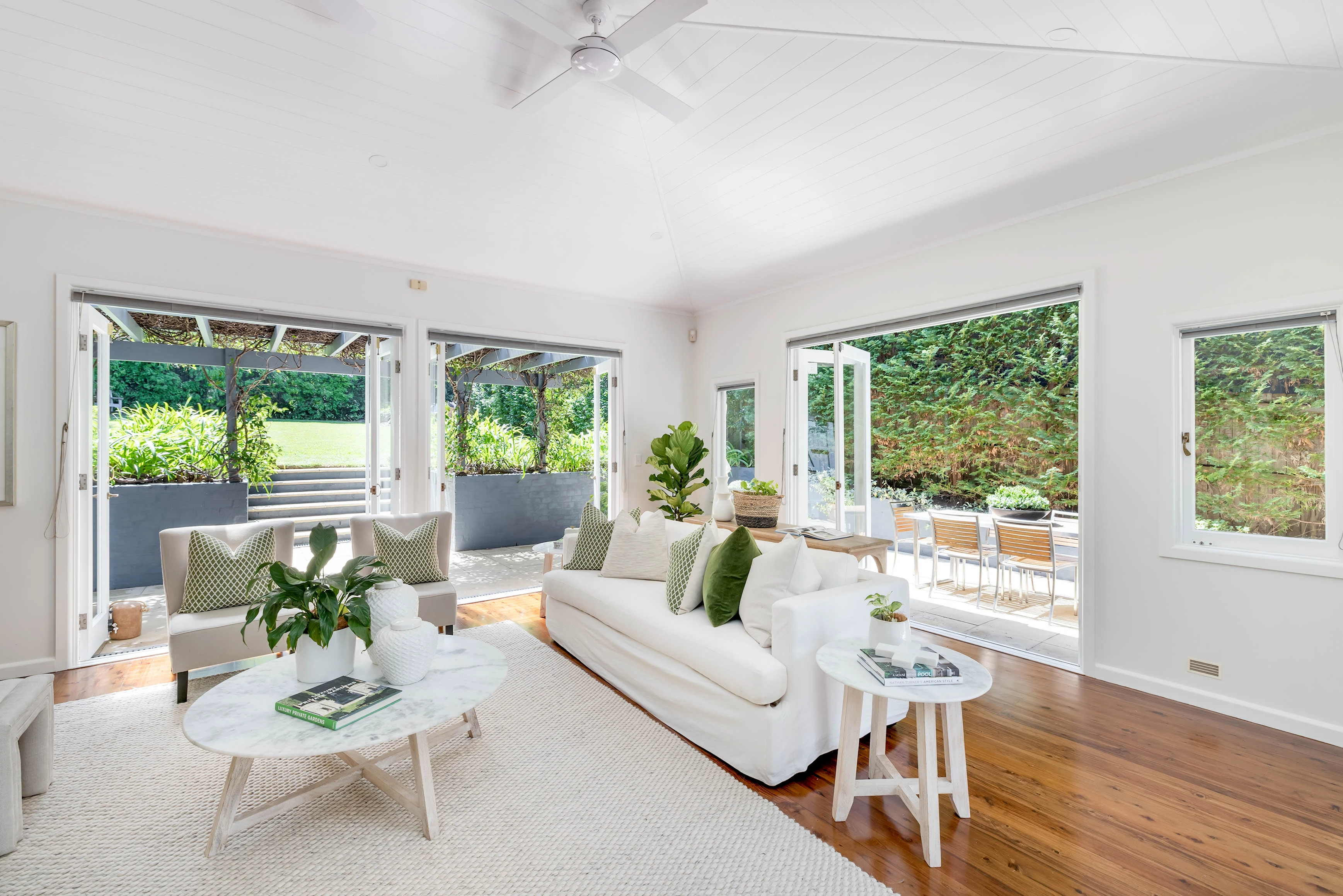 - Ceiling fans, retractable dining awning