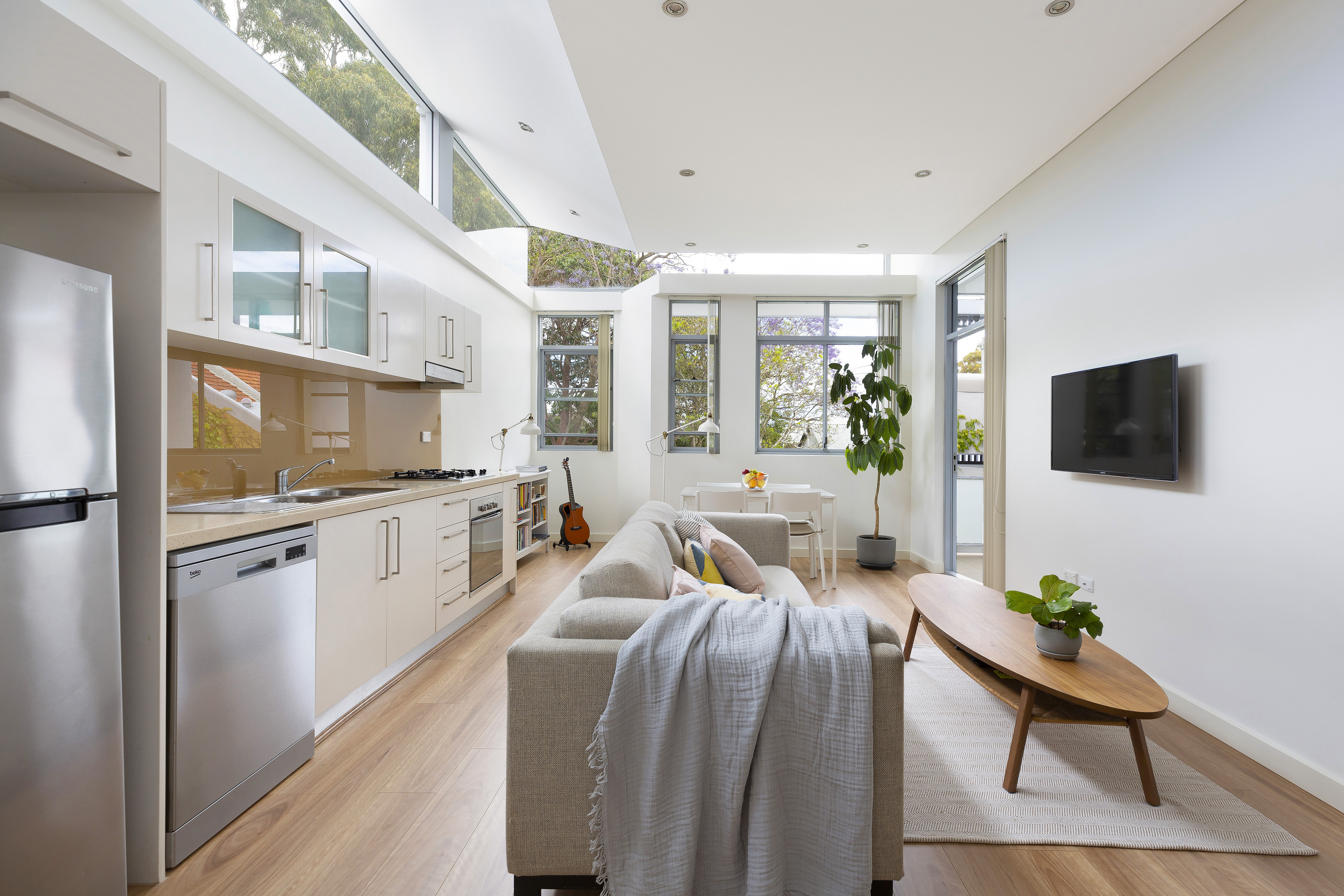 With a unique entry via a converted 1840s manor, this top-floor apartment is full of natural light and wow factor, for a contemporary home within a historic setting. From the double-height windows to the glass highlights, it’s an indoor/outdoor residence of unique style.