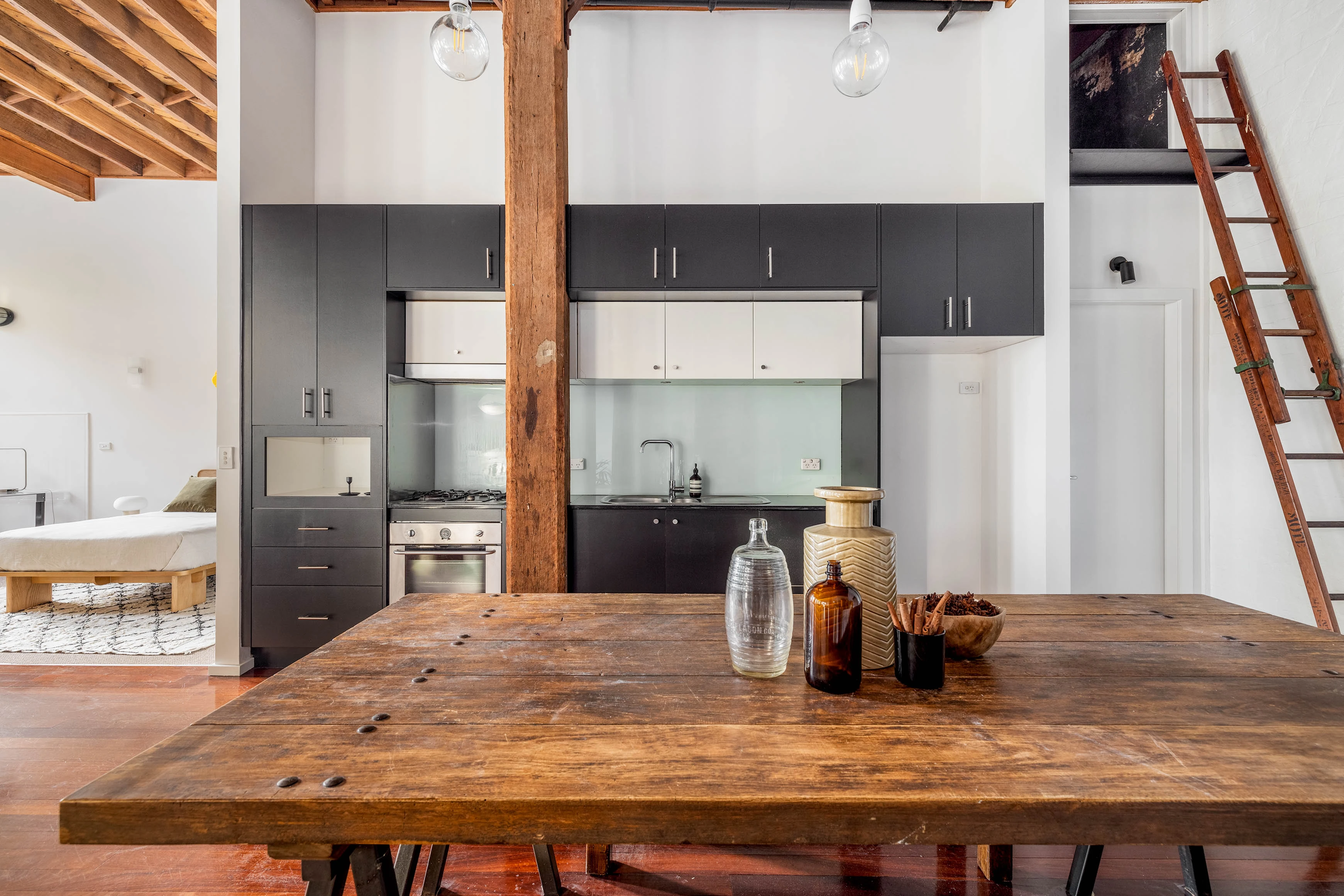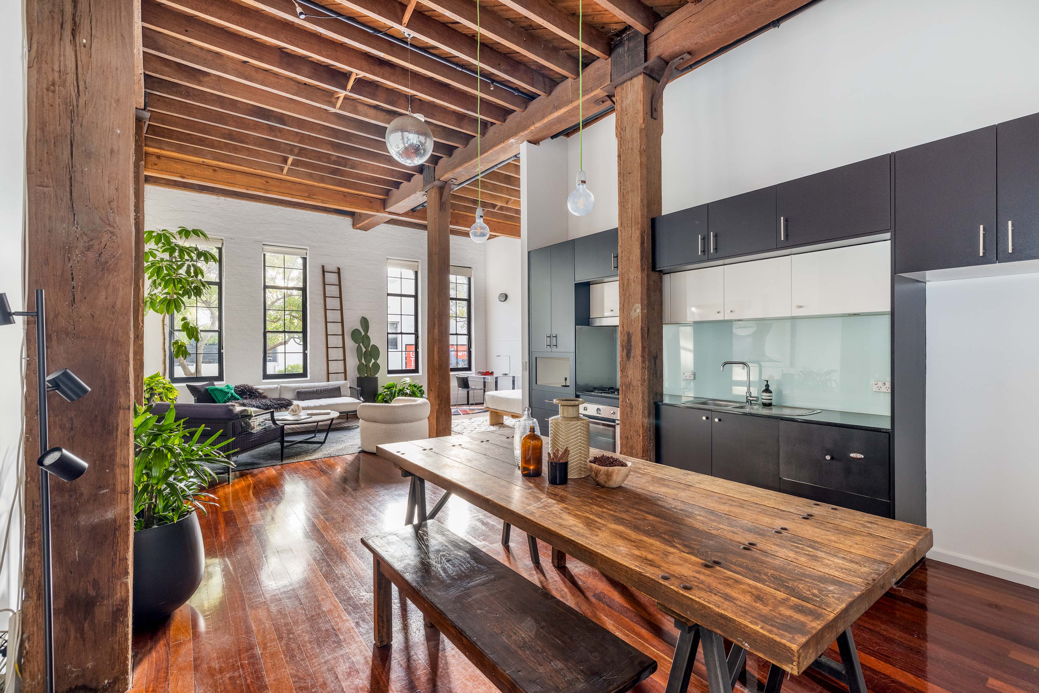 Set in the ‘Foundry’ warehouse it’s easy to see why this is considered to be one of Sydney’s best example of an industrial conversion. The building’s authentic scale and character has been celebrated, with exposed timber and preserved columns on show. In a thriving lifestyle hub, the area’s cafes and nightlife are all around you, just footsteps to Redfern Station, uni hubs, and the weekend markets at Carriageworks.