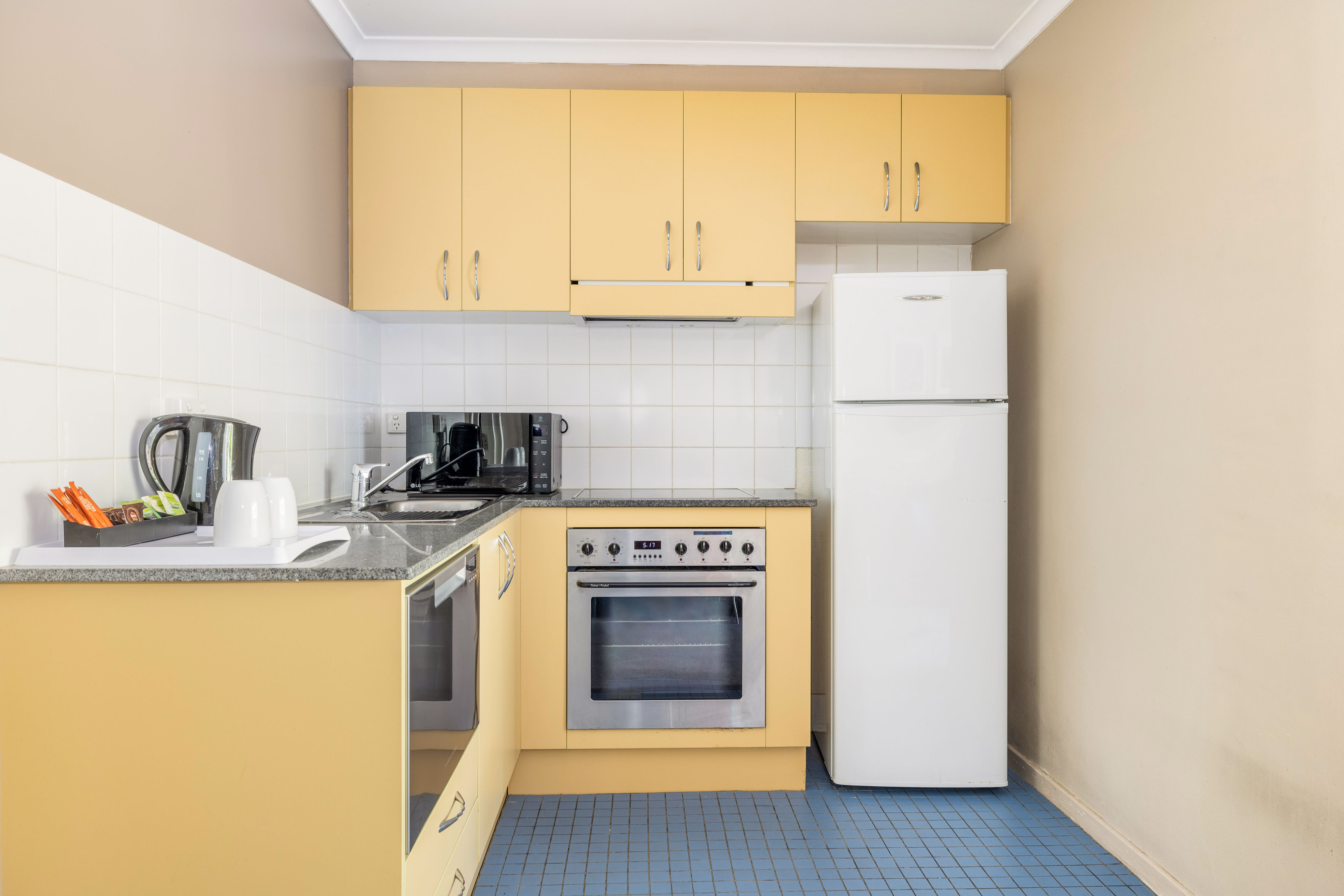 - Integrated laundry space, dishwasher