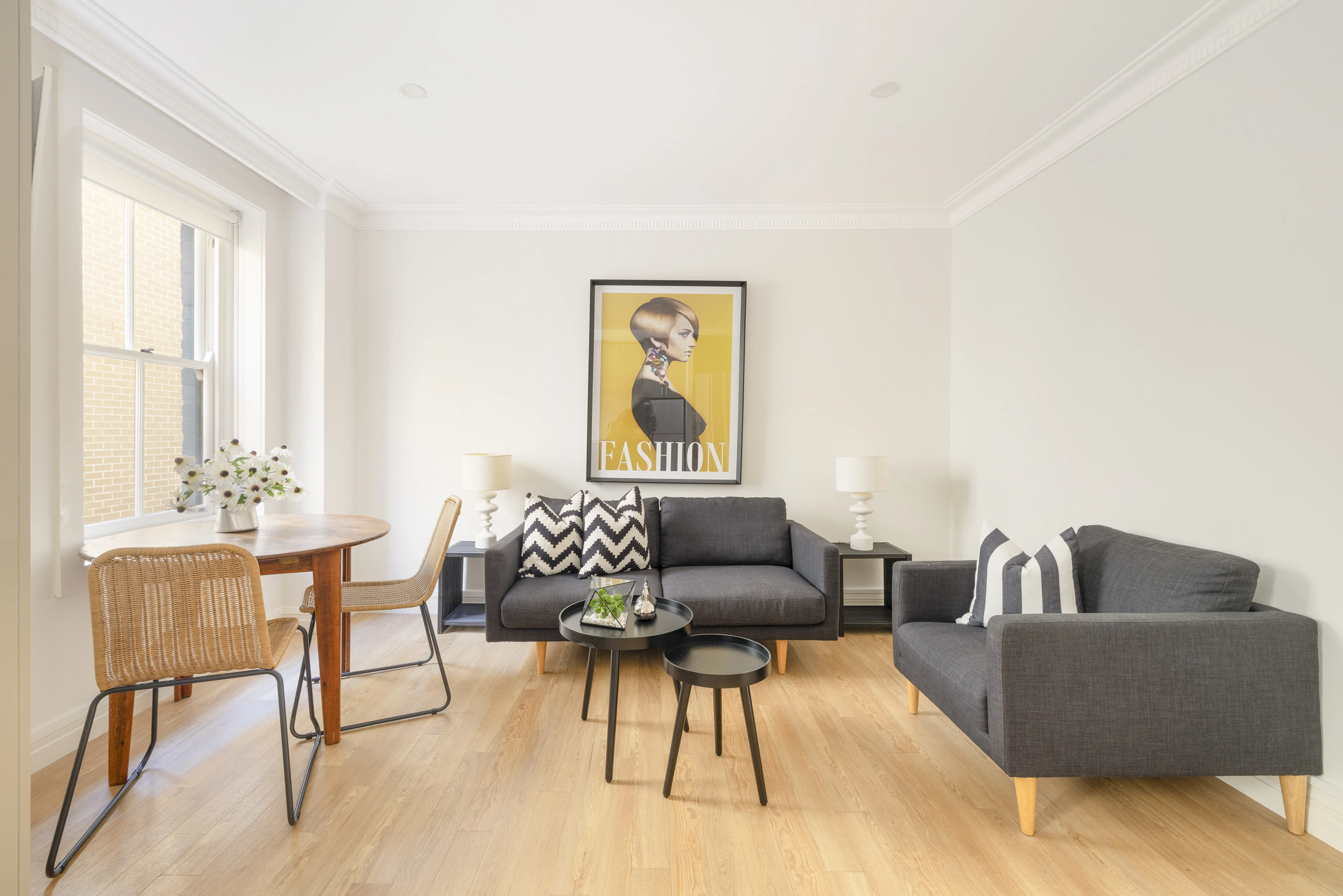 - High ceilings & decorative cornices