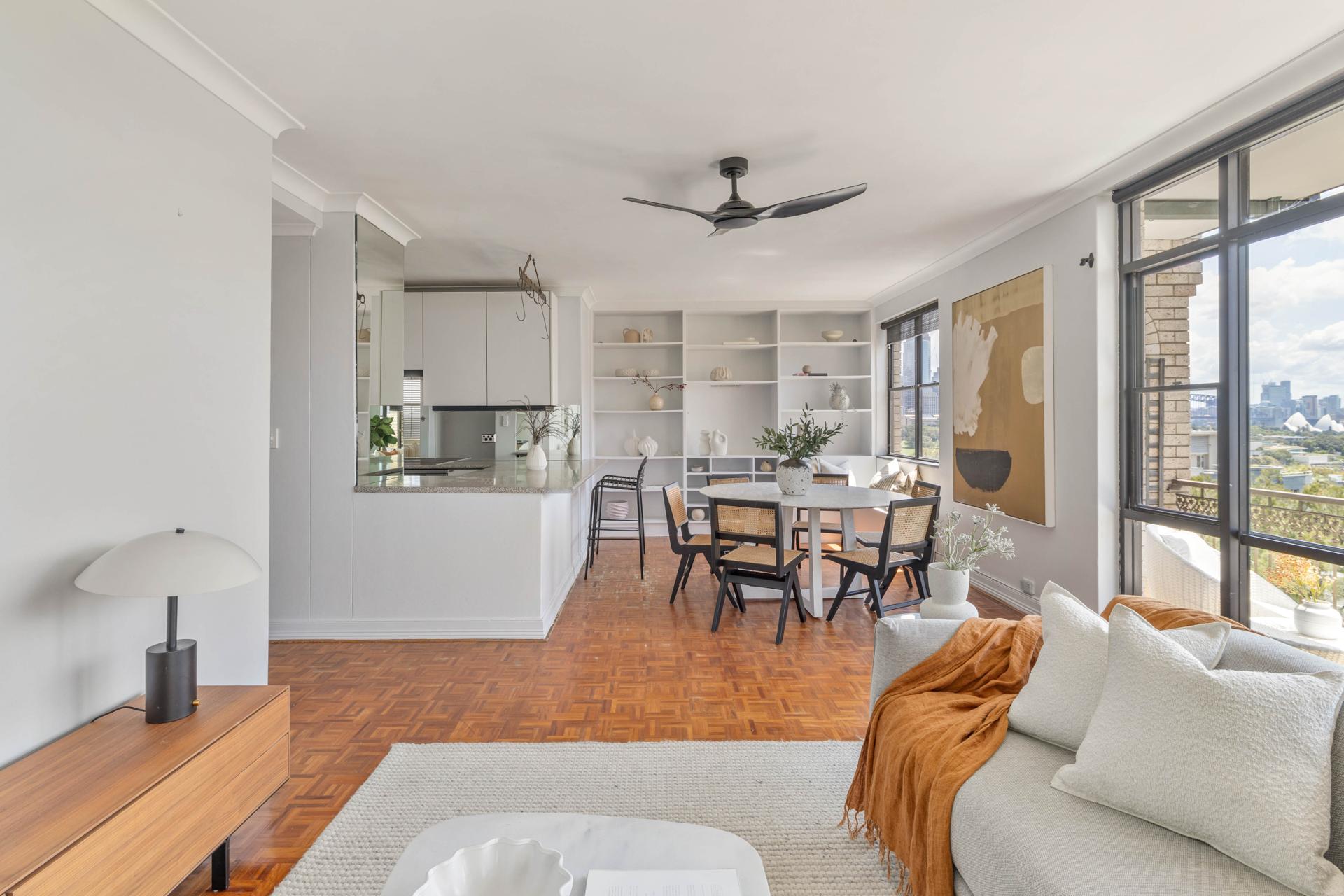 A substantial 2 level residence with extensive views of the harbour and CBD. On the top 2 levels of the building and 177sqm on title, it delivers rare sense of space for apartment living. With a flexible floorplan offering a 3-bedroom layout or separate living spaces, in one of Inner Sydney’s most walkable districts.