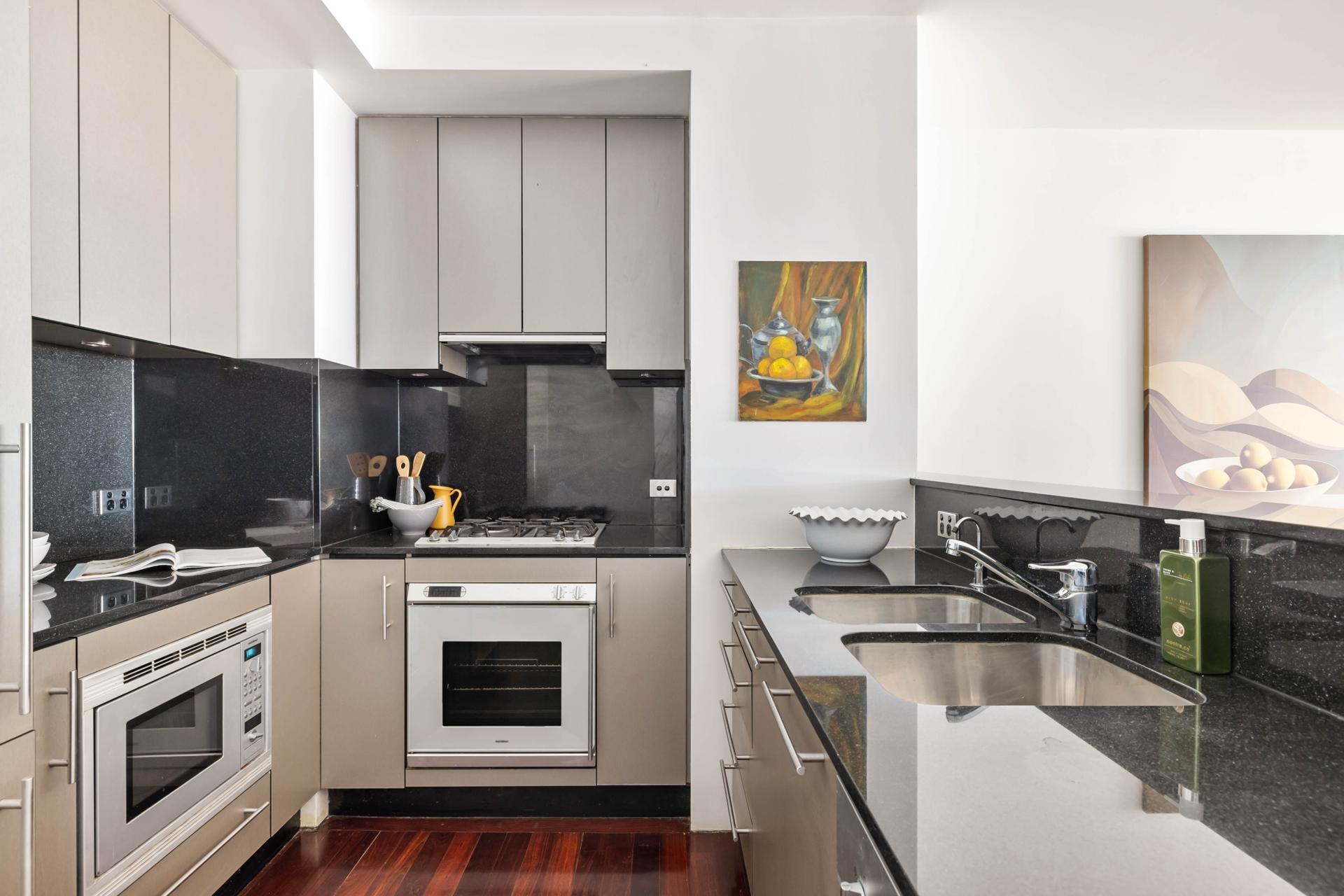 - Full-sized stone kitchen, gas cooking