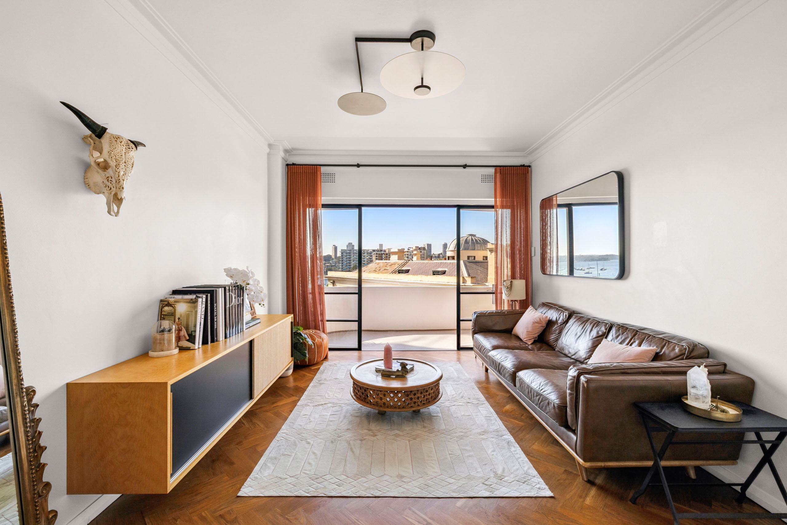 An incredibly detailed experience that wows you at every turn, this home has been finished to impress with a level of detail to match its prestigious harbour-side location. Looking out over the boat moorings of Elizabeth Bay, it holds an incredible NE aspect and corner position, ensuring natural light, sea breezes, and Sydney Harbour views from multiple angles. With high-end appointments throughout, the light over the dining table is a Danish Soleil Pendant by Philip Bro Ludvigsen, while the Danish lights in both bedrooms are the original Le Klint (The Lantern) pieces. Meanwhile, the living room ceiling light is a is a two-piece Vibia piece imported from Spain. From the social spaces to the luxurious accommodation, it’s a space that functions as entertainer, private retreat, and ultimate showpiece. Footsteps to McElhone Reserve and the cafe/restaurant precinct, positioned in the Art Deco building 'Cambrian Place’.