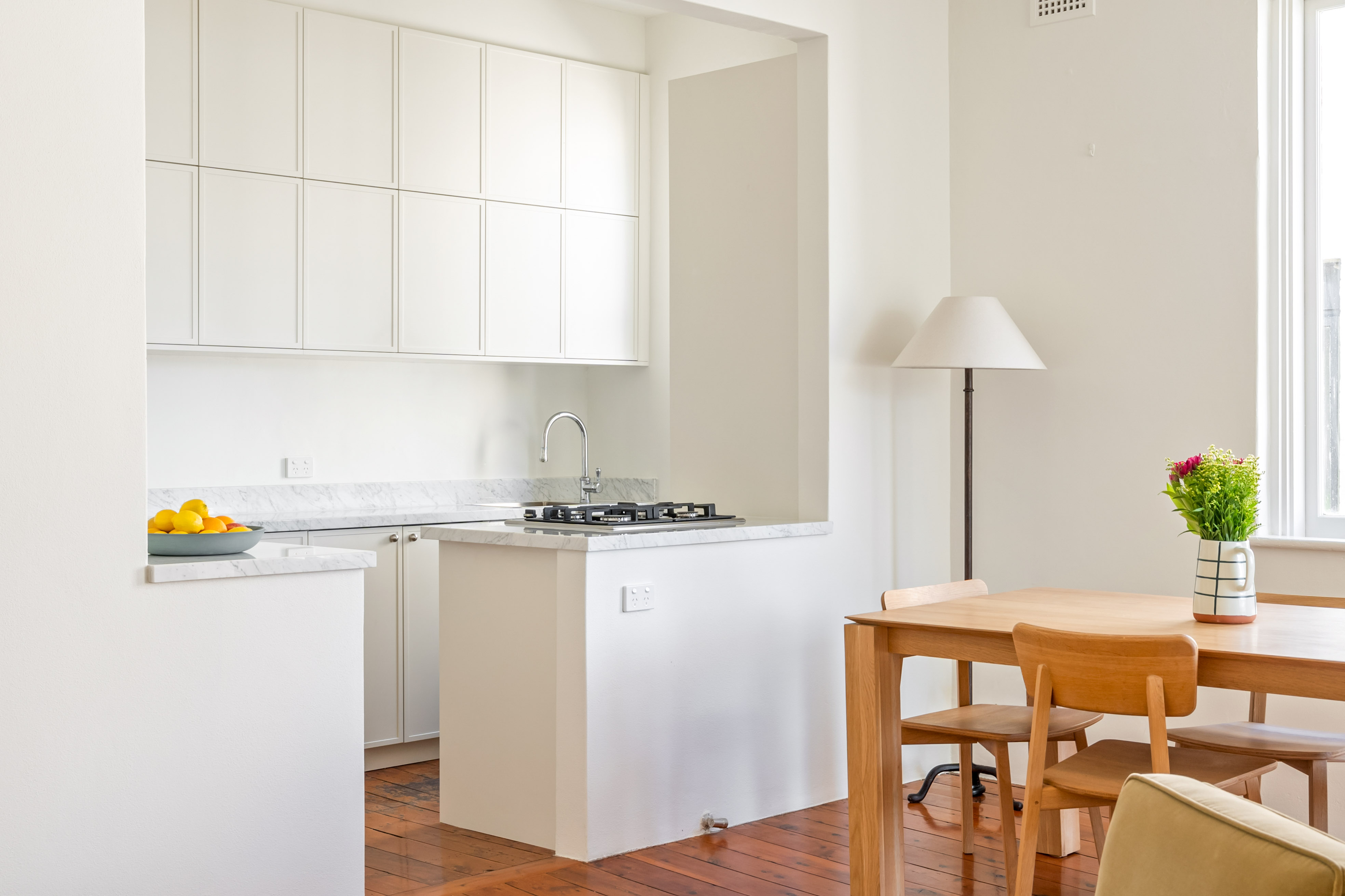 An oversized Top Floor Art Deco home (2 beds + sunroom) with leafy views and glimpses of Sydney Harbour, this residence is a beautifully renovated space, offering a turn-key lifestyle in a vibrant village address. With the residents’ rooftop taking in views over the district with backdrops of Sydney Harbour Bridge and the Opera House sails, it’s a quality offering in the classic landmark building ‘Rosebank Hall’.