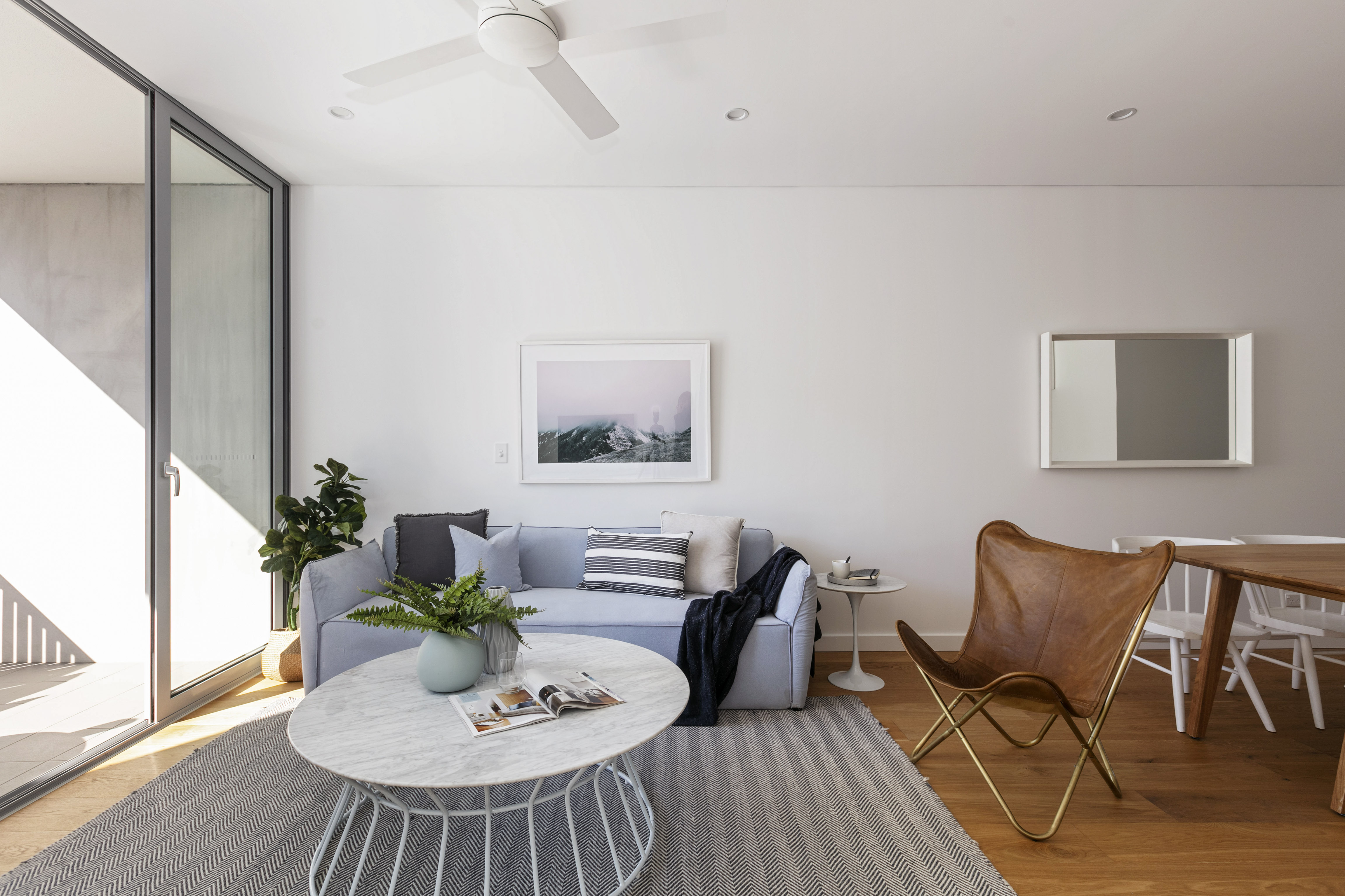 - Full-wall sliding glass, N-facing terrace