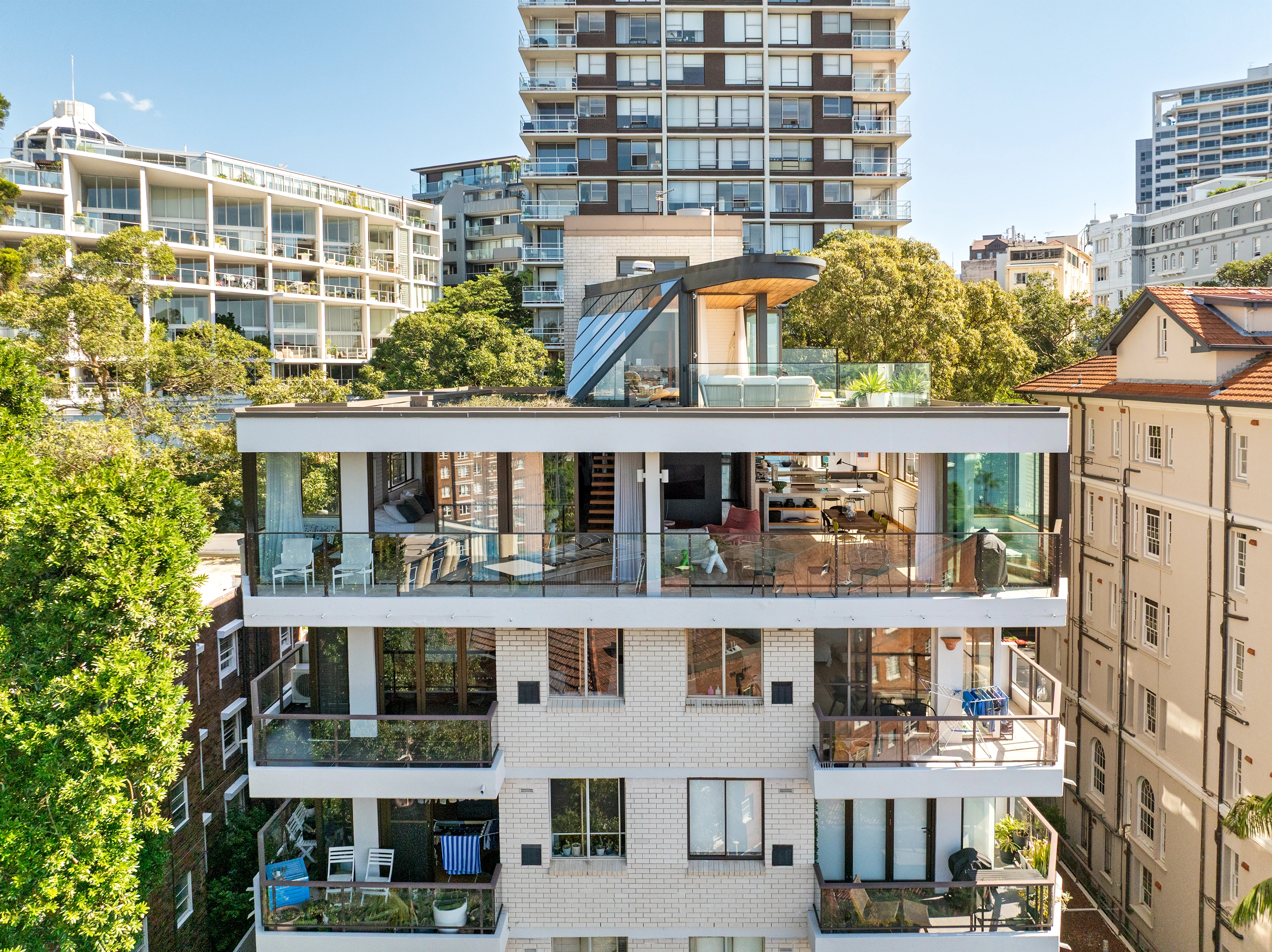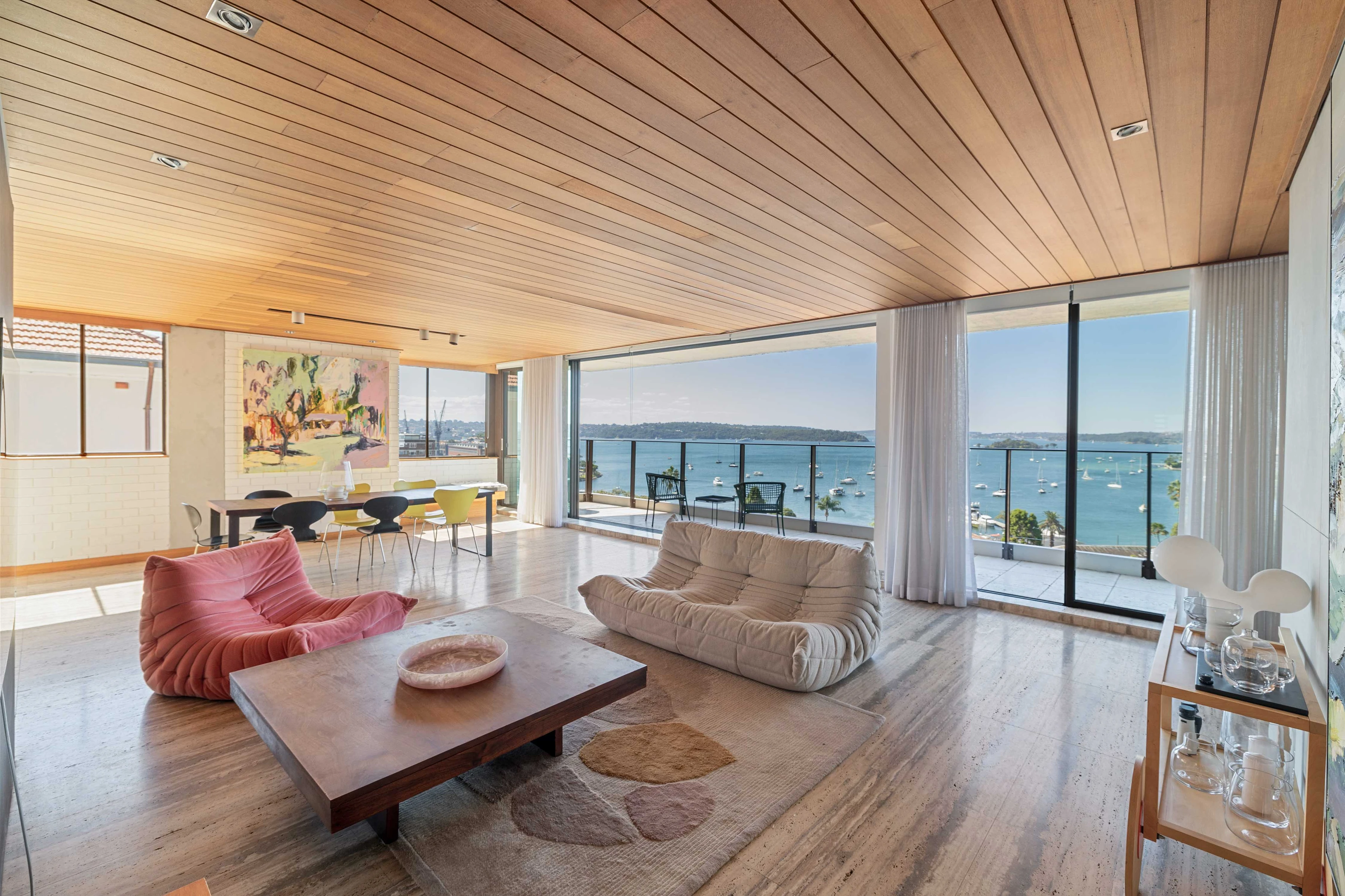 Two-level penthouse apartment sitting atop the 6-level ‘Tradewinds’ building. Spanning the width of the building and occupying the top/front position, the 250sqm north-facing apartment provides captivating and uninterrupted Harbour views towards North Head.