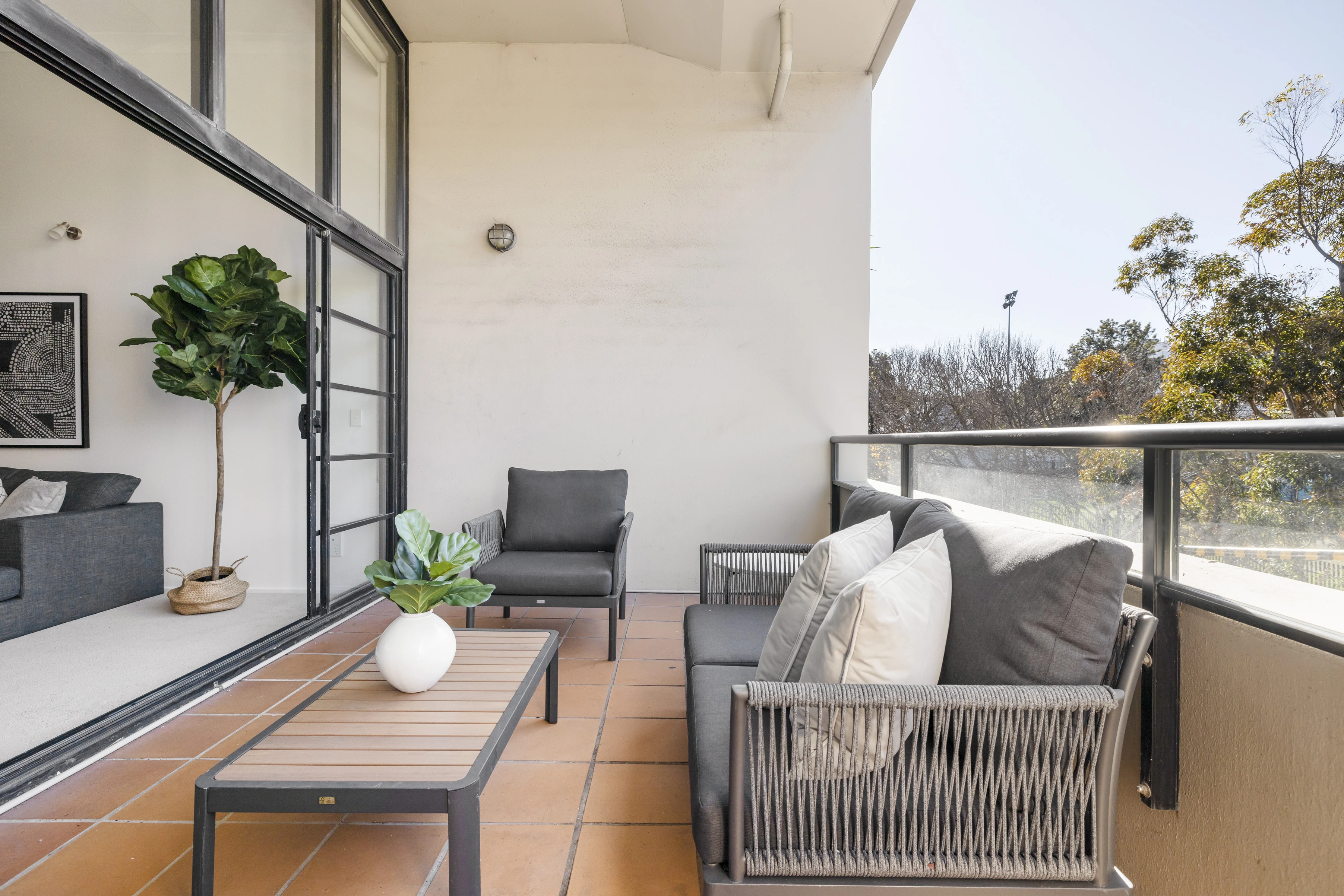 An oversized warehouse apartment in a leafy treetop position at the back of block, this residence is a peaceful and private escape for an inner-city home, just footsteps to Redfern Station, entertainment and the area's best small bars and restaurants. With tasteful contemporary style and authentic character preserved, it unfolds to a covered balcony setting, for a rare combination of industrial cool and alfresco vibrancy. With inventive use of space, green outlooks and a rooftop entertaining deck, it's everything you expect from city living and more.