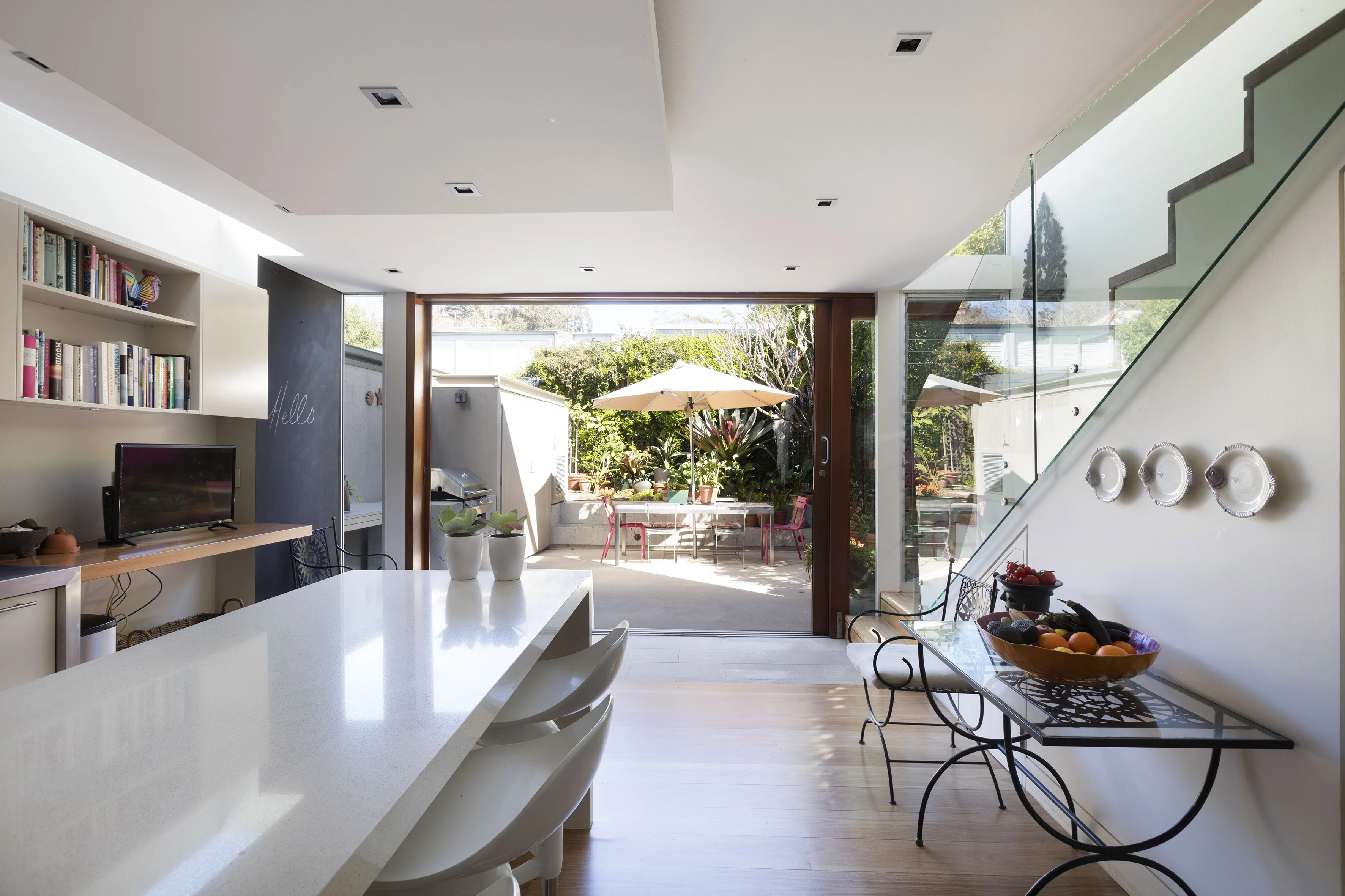- Seamless in-out flow, sliding glass wall