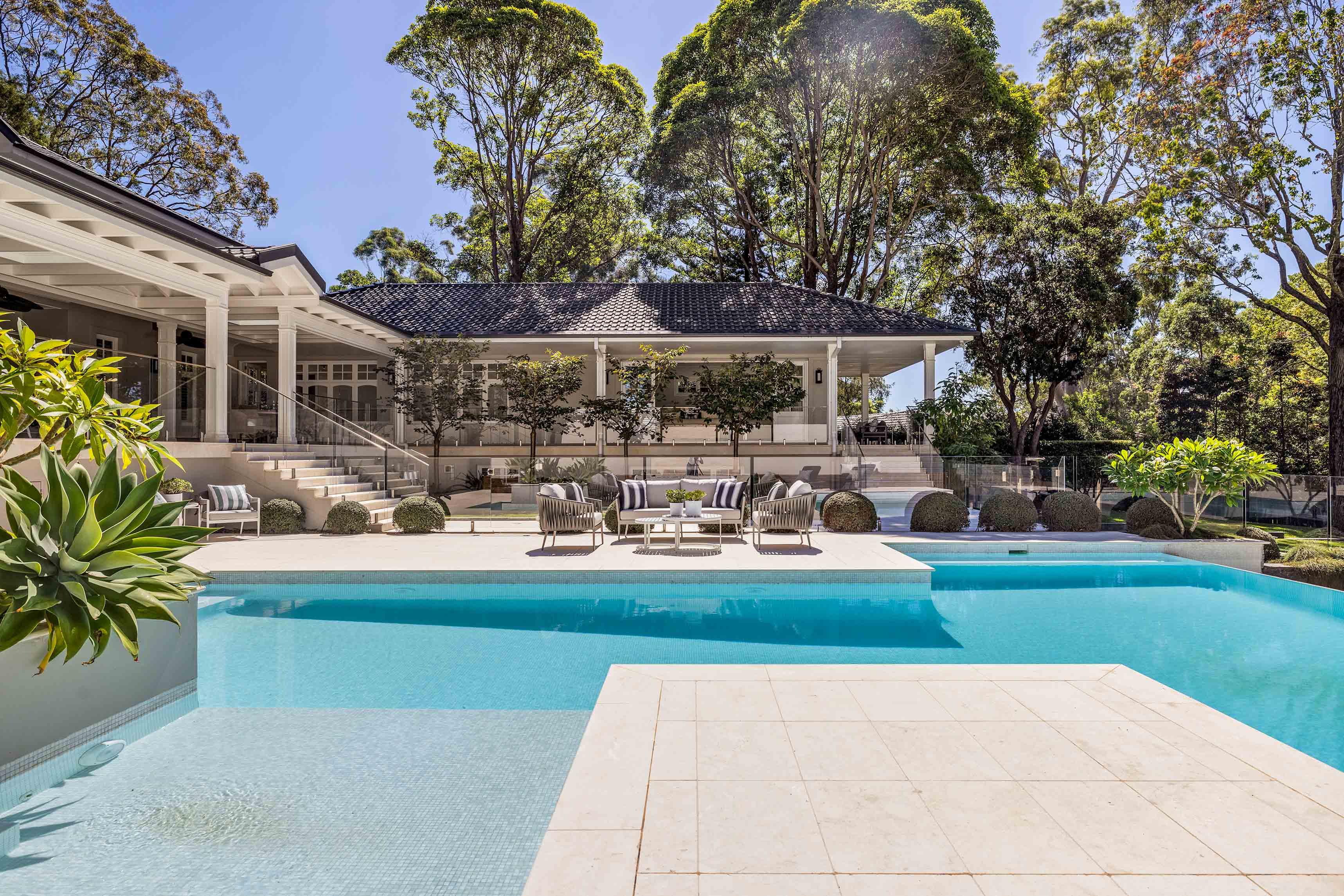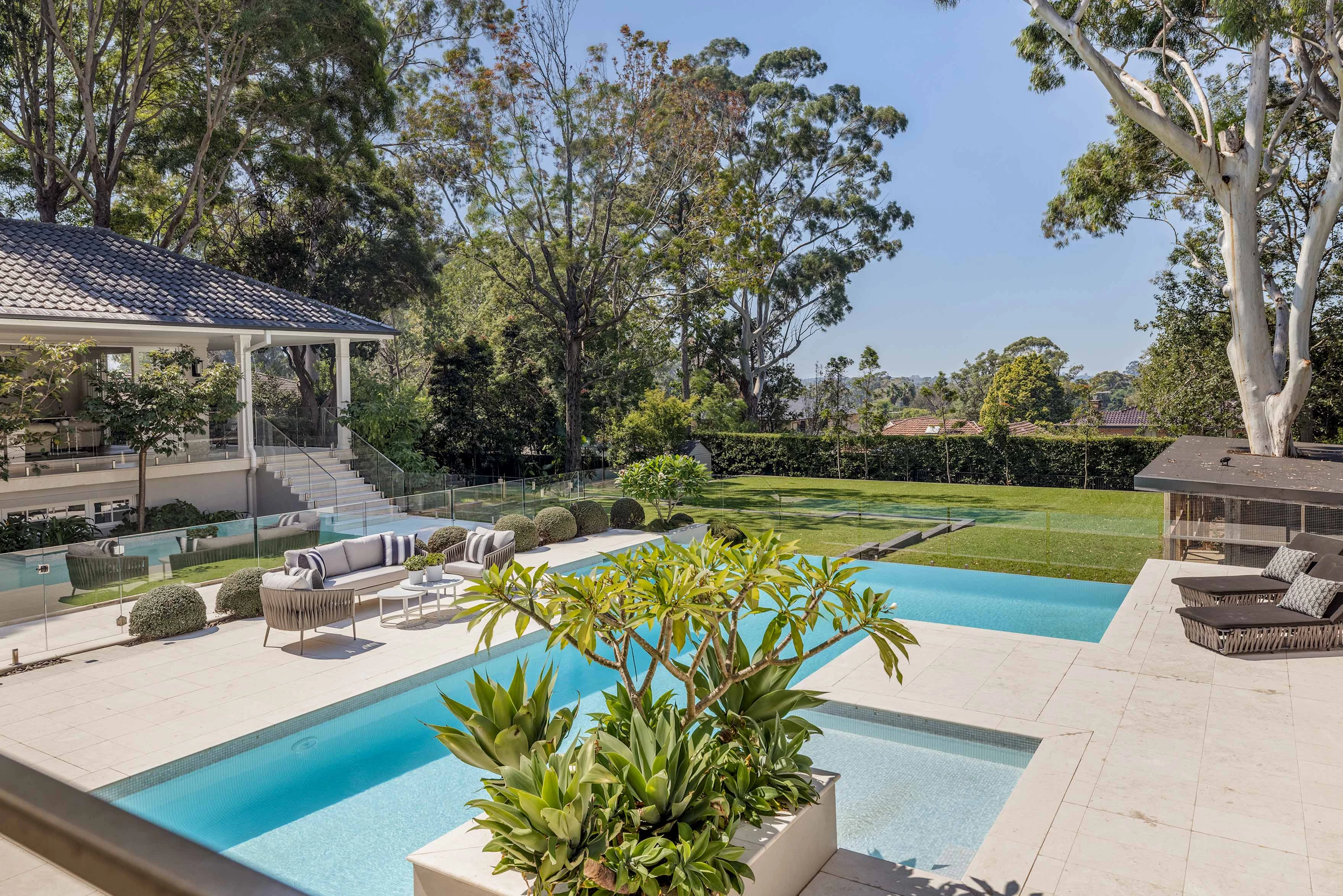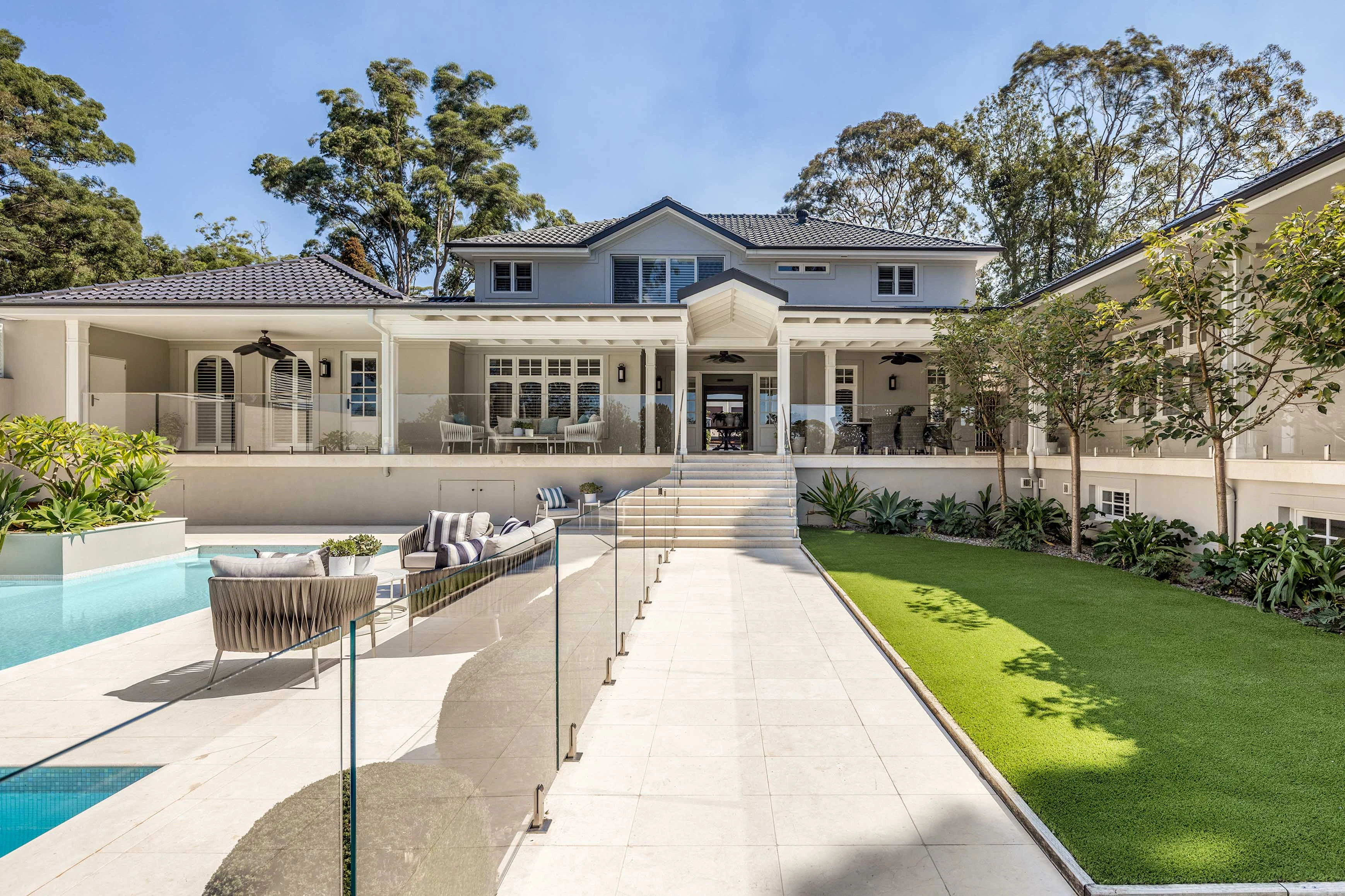 A sprawling contemporary build that pays homage to sophisticated Hamptons style, this double brick residence is an entertainer’s home that transcends time and generations, offering wide appeal with its retreat-like ambiance and sense of seclusion. Designed to be functional as a single house or two separate residences, it has the flexibility to accommodate extended families under one roof, or provide space for visitors and more. Wrapped in private gardens and spilling onto alfresco terraces, level lawns, and poolside sundecks, it’s the type of statement home that would welcome hundreds of guests with ease, set in one of the area’s level streets, with an imposing 35m frontage and a 2761sqm land parcel.