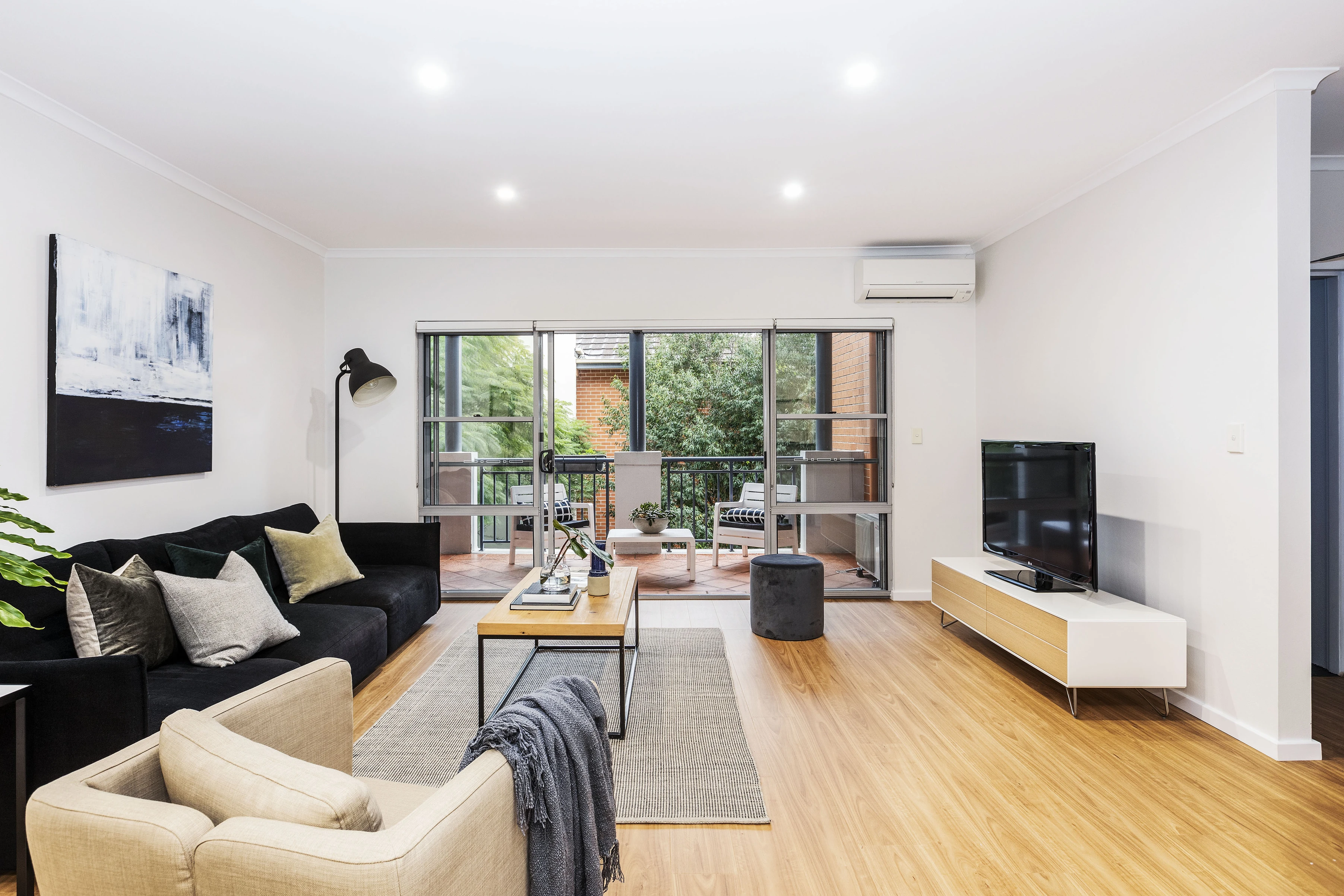 - Large open living, balcony, tree outlook