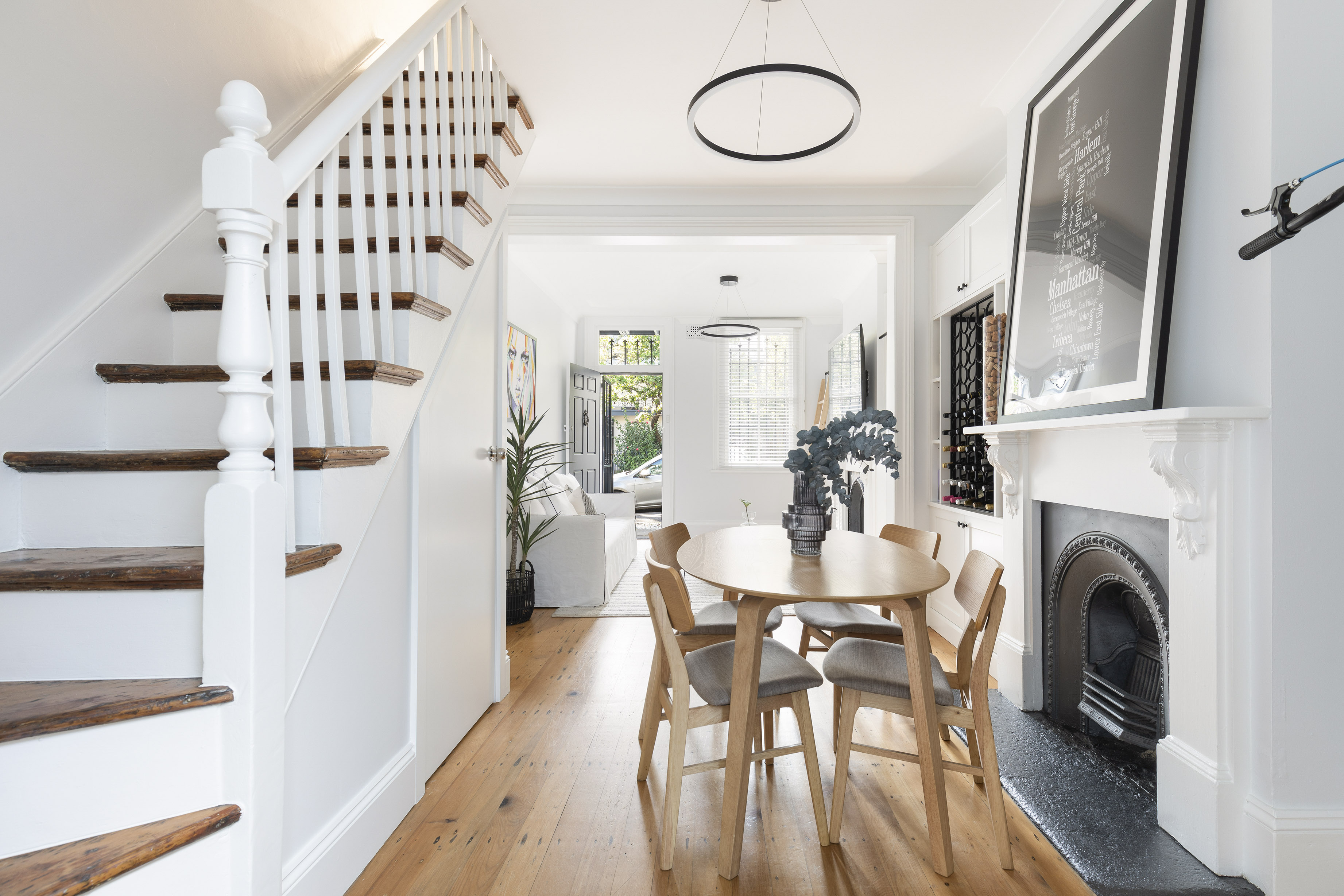 A recent and extensive upgrade has entirely opened up this terrace through its ground level, flowing from front to rear with flexible open living areas, a large office space, alfresco entertaining and a lawned yard/parking. In a peaceful tree-lined street close to the harbourfront and Glebe Point Road village heart.