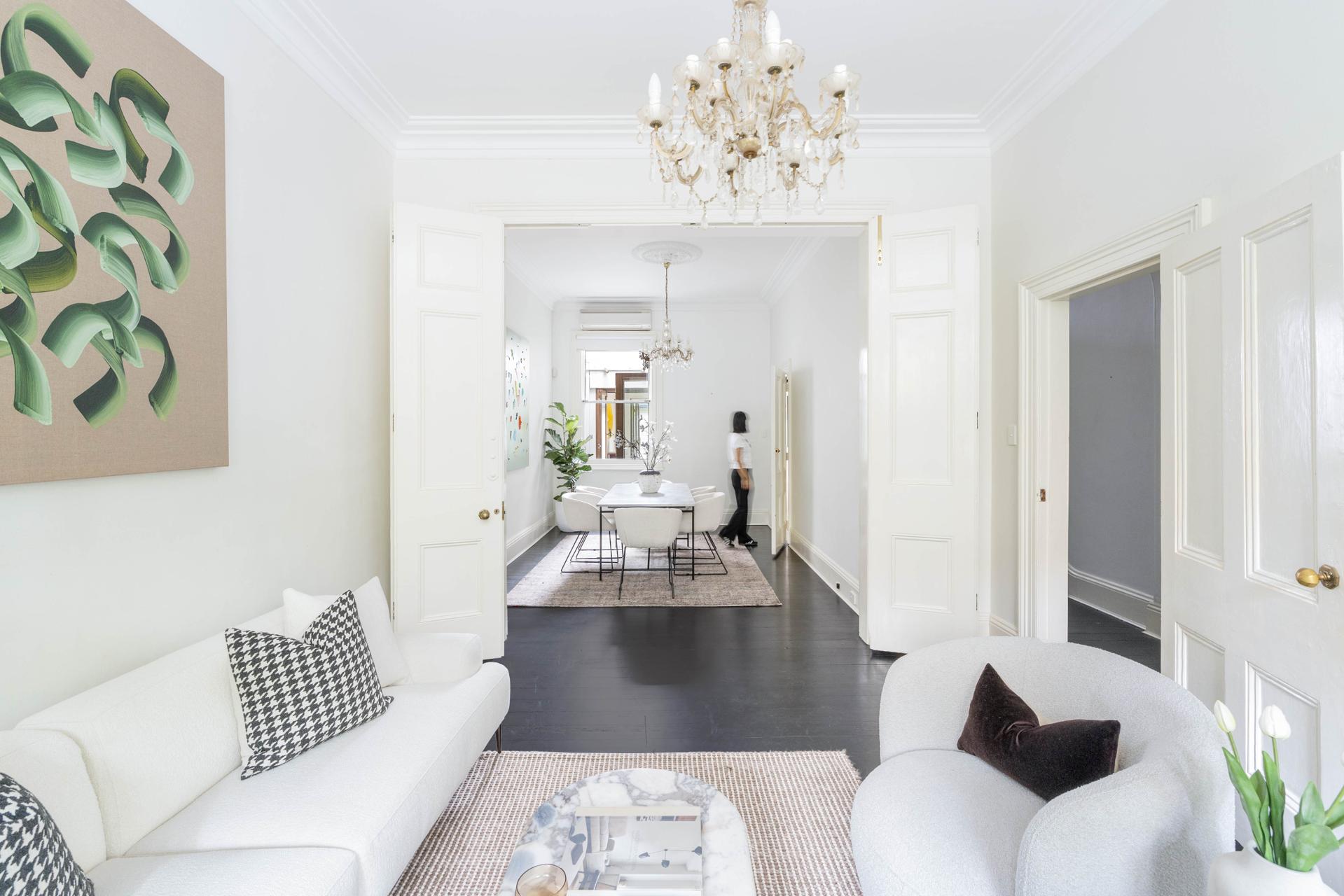 A substantial 3-level terrace with a wide in/outdoor design, this home is built around a casual central atrium and seamless rear courtyard connection. With the layout reliving separate family/living spaces and natural separation for a dynamic household, it’s set in a leafy streetscape with lock-up parking for 2 cars via Castlereagh Lane. An ultra-connected pocket amid green space, bakeries and cafes, with city buses opposite, so close to Prince Alfred Park & Pool. Free Building & Pest Report at bw.com.au