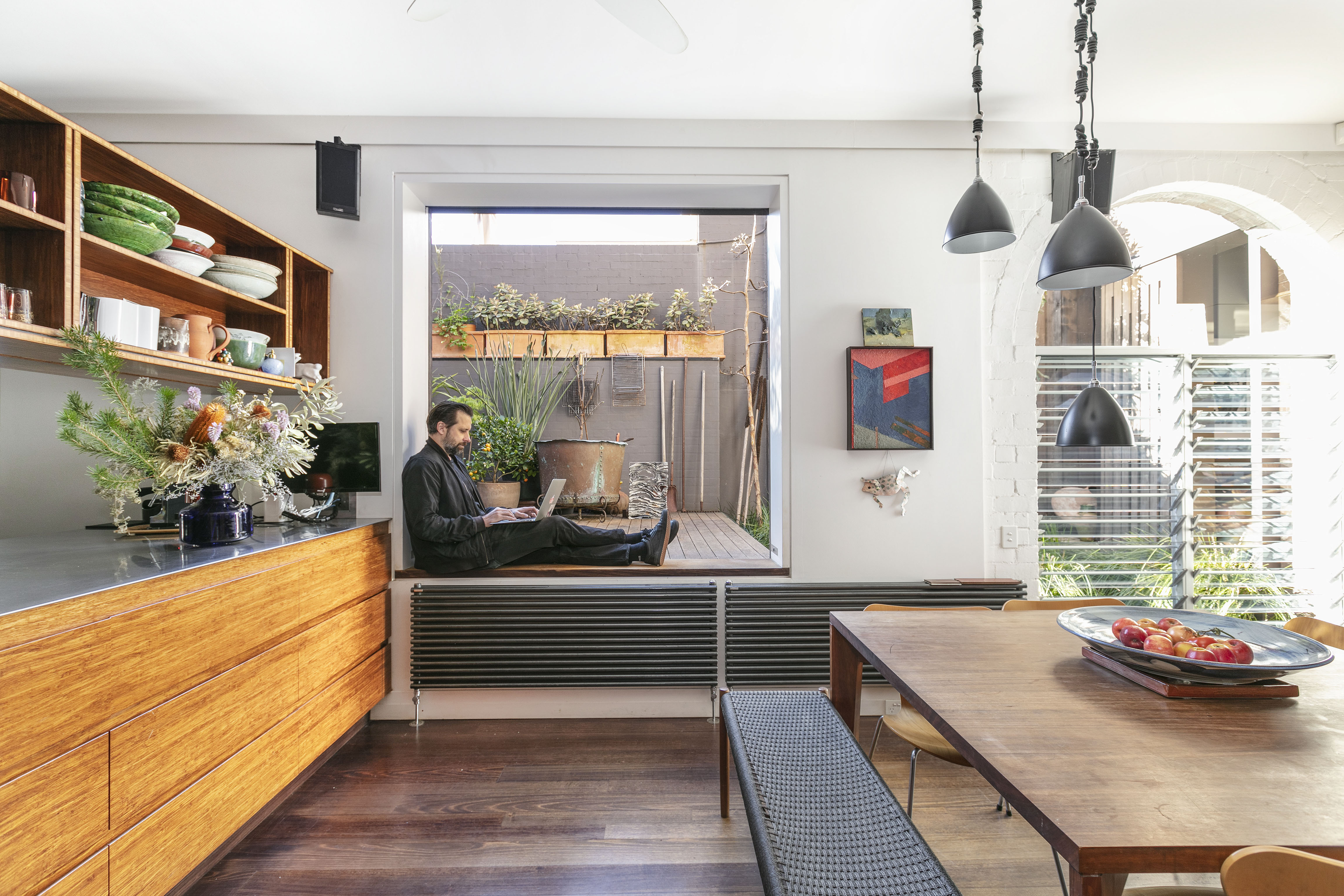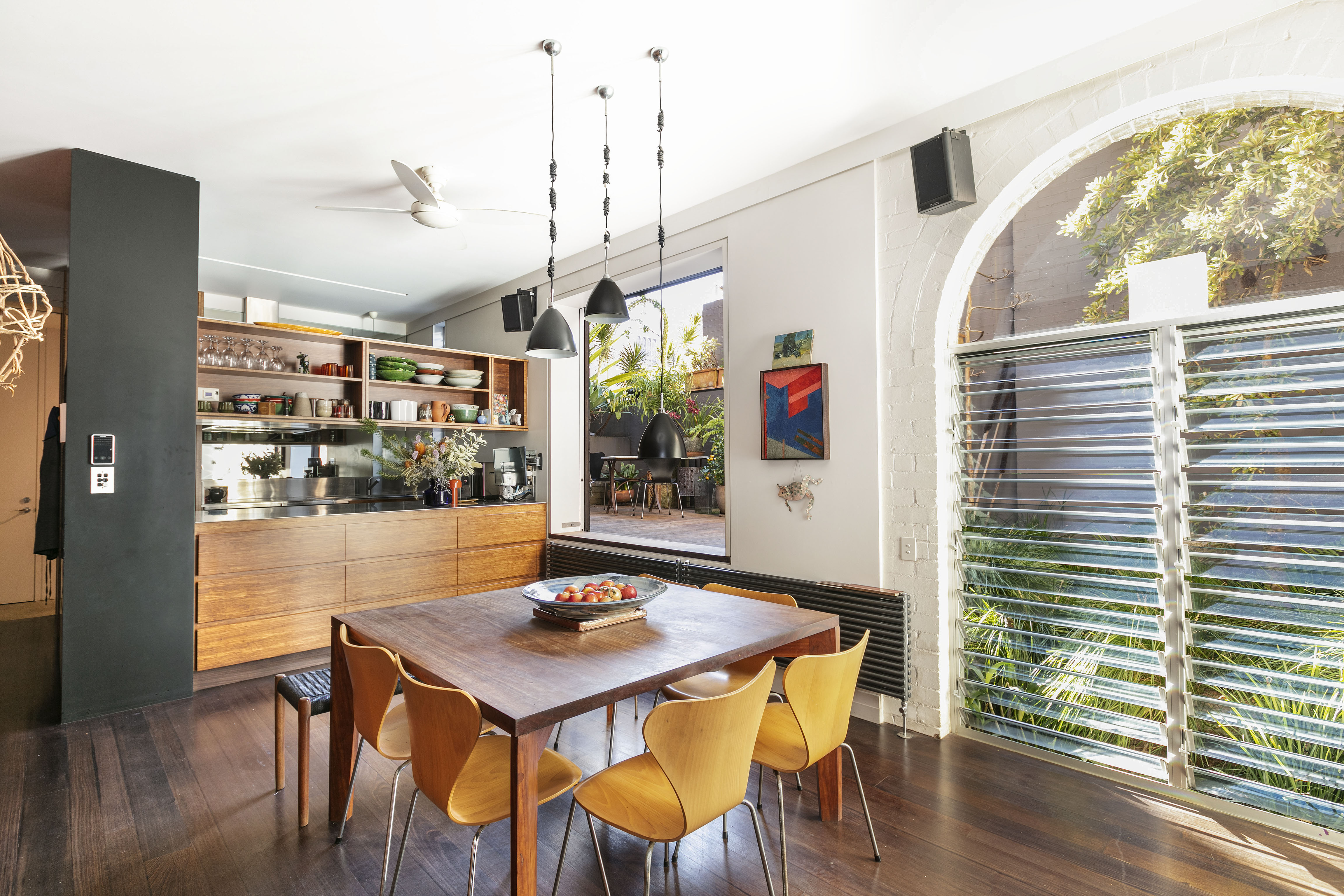 An architect’s own home (and expensively detailed so), this residence was originally a 1915 boarding house, now open and full of light. Its walls and ceilings have been extensively revealed, with massive sliding windows, louvre panels, and a courtyard garden, in impressive European Modern style. Walk-everywhere living, 150m to Hyde Park & CBD. Huge work-from-home potential.