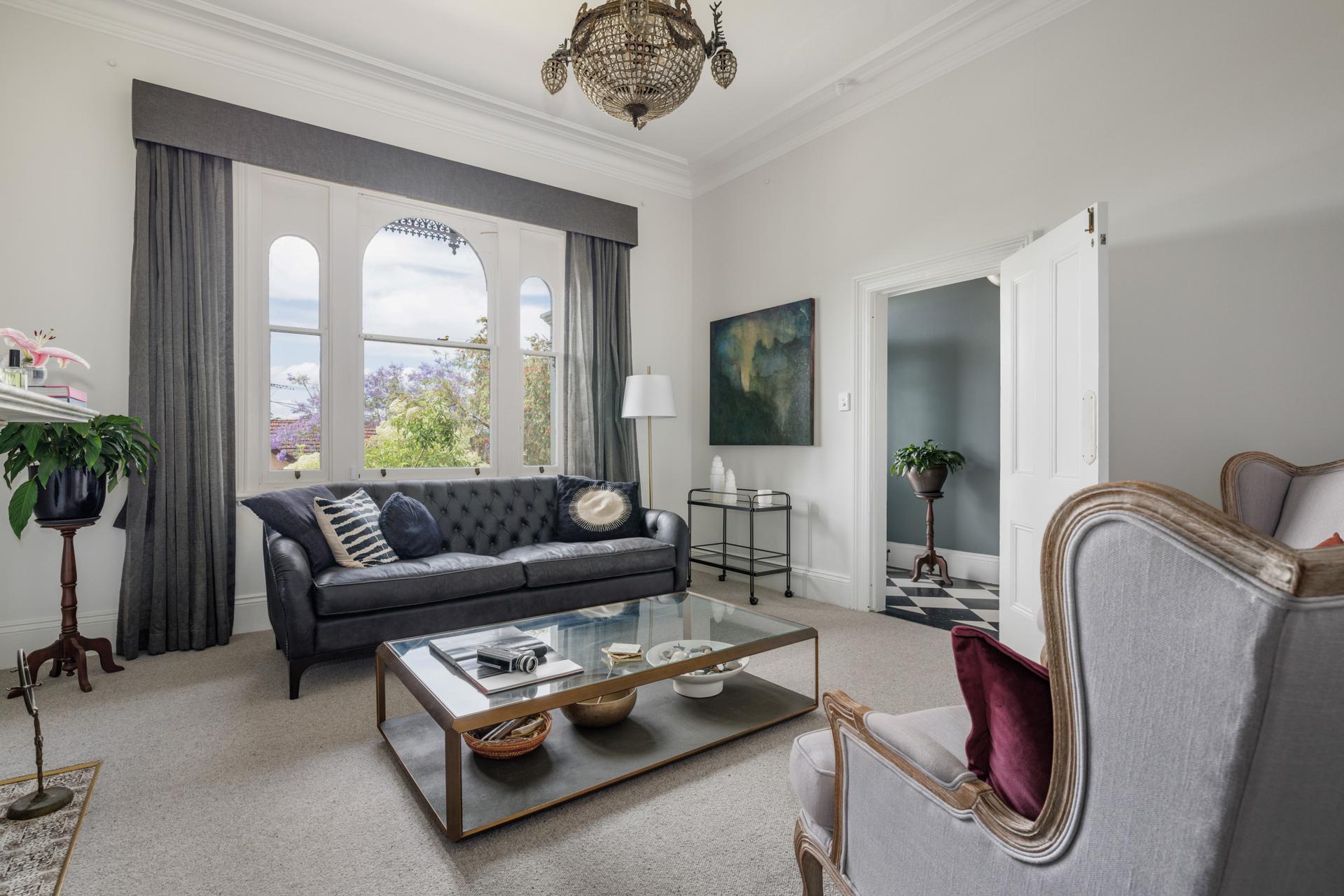 One of Annandale’s grand terraces, ‘Ivanhoe’ stands proudly on the high side of the street, enjoying a superb northerly vantage overlooking the city skyline, Anzac Bridge and surrounding districts. On a substantial 202sqm dual-access block, the sprawling floorplan weaves multiple living areas and outdoor entertaining spaces, and plenty of versatility to adapt rooms to your needs. Well-appointed throughout, it’s a masterful balance of restored heritage and contemporary updates, with plenty of space and scope to bring your own ideas to life. In a quiet pocket it’s close to both Jubilee and Hinsby Parks, light rail and Tramsheds shops and dining.