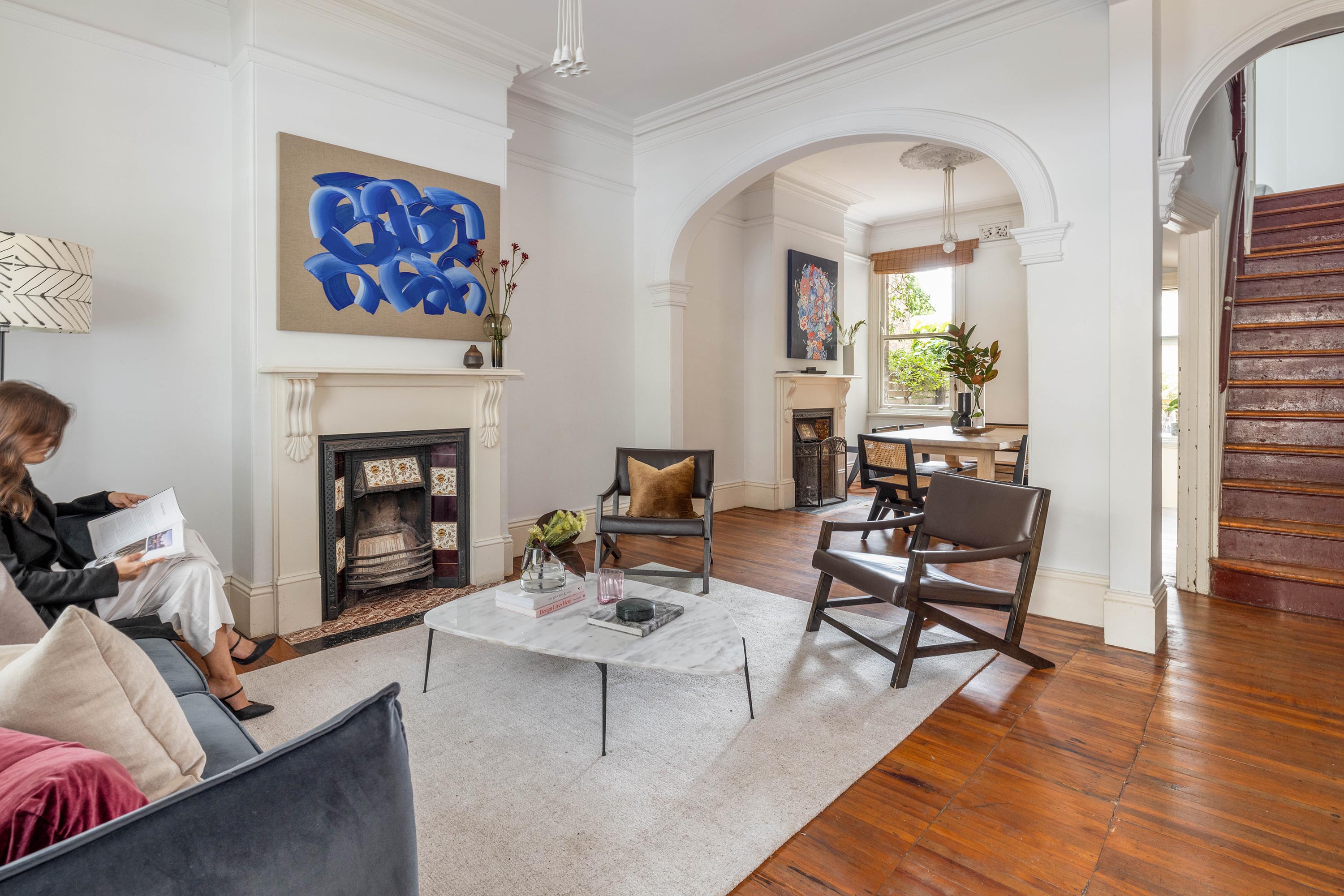 - Classic features intact, kauri floorboards
