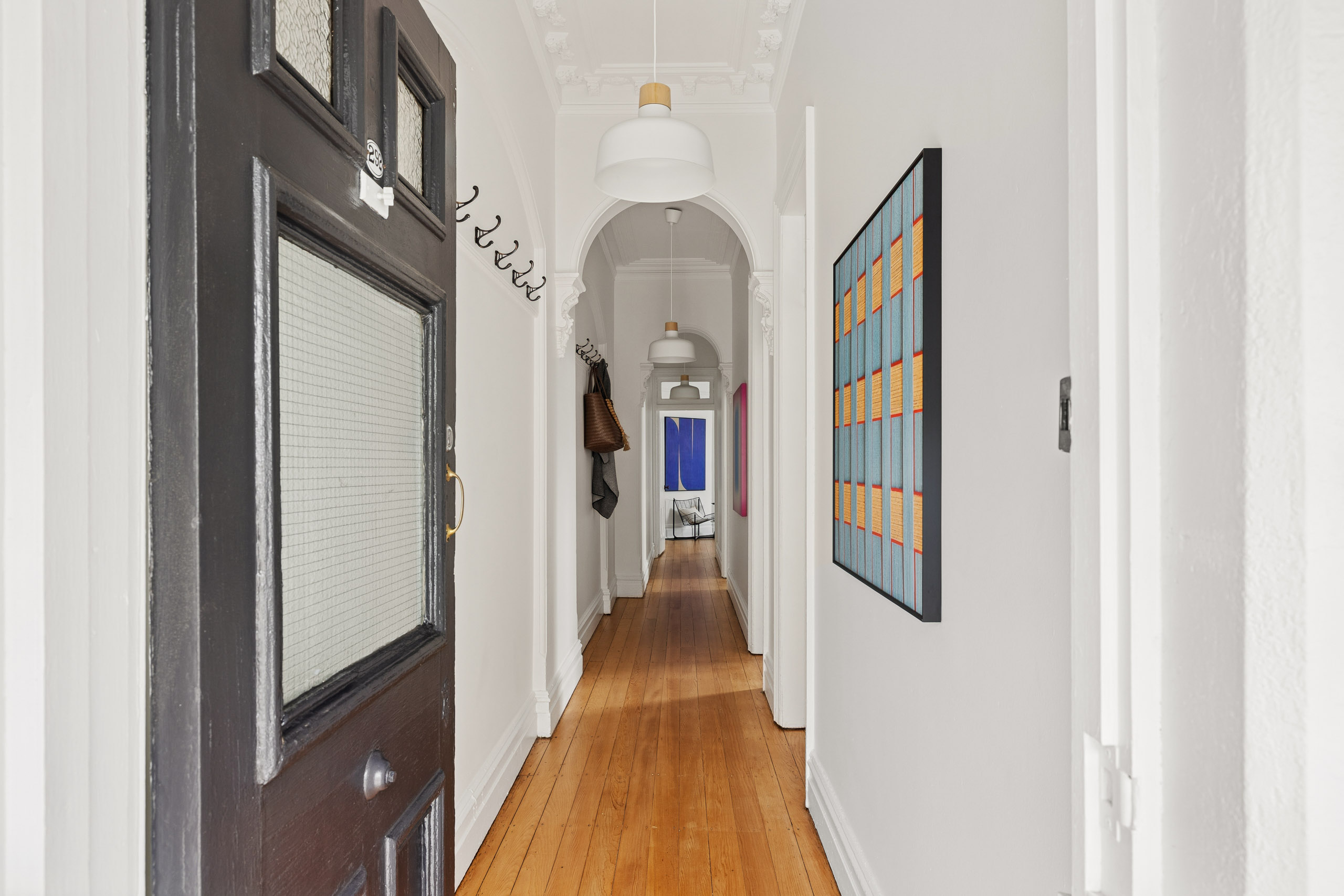 - Polished timber floorboards, clean style