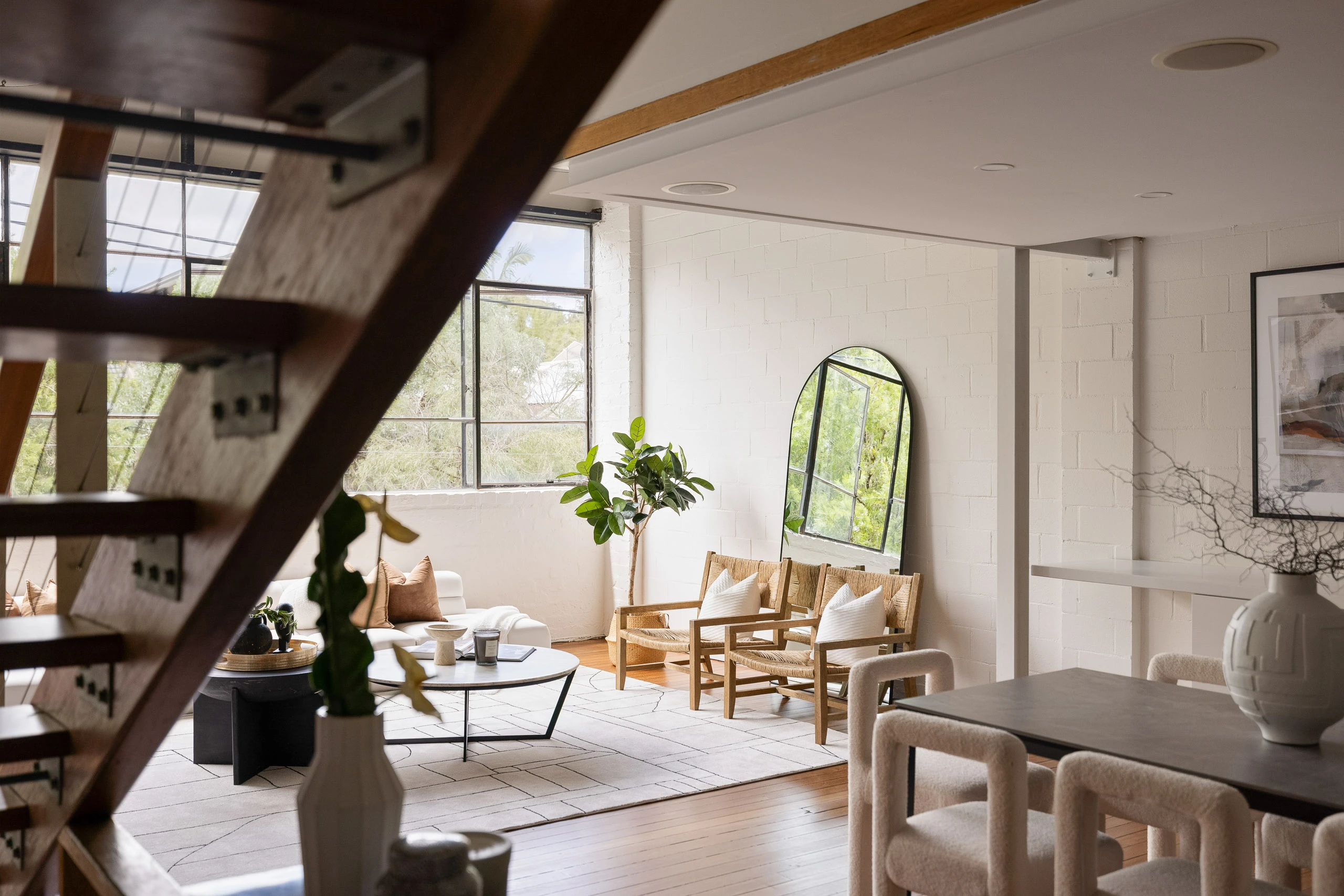 - Double-height open-plan living space