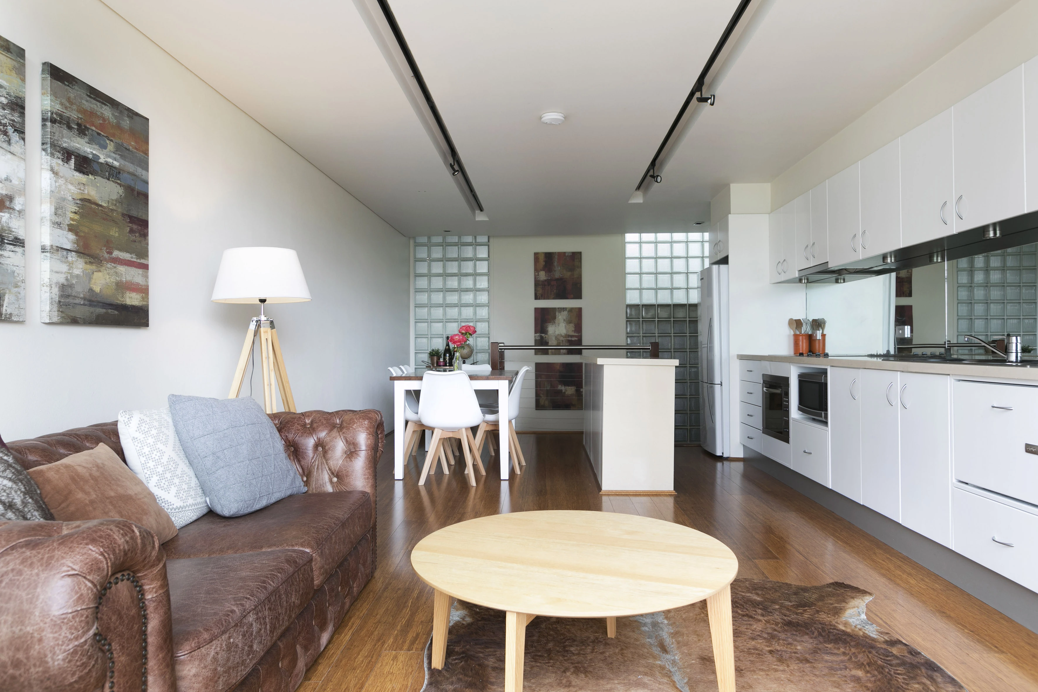- Open living, stone kitchen, small apps