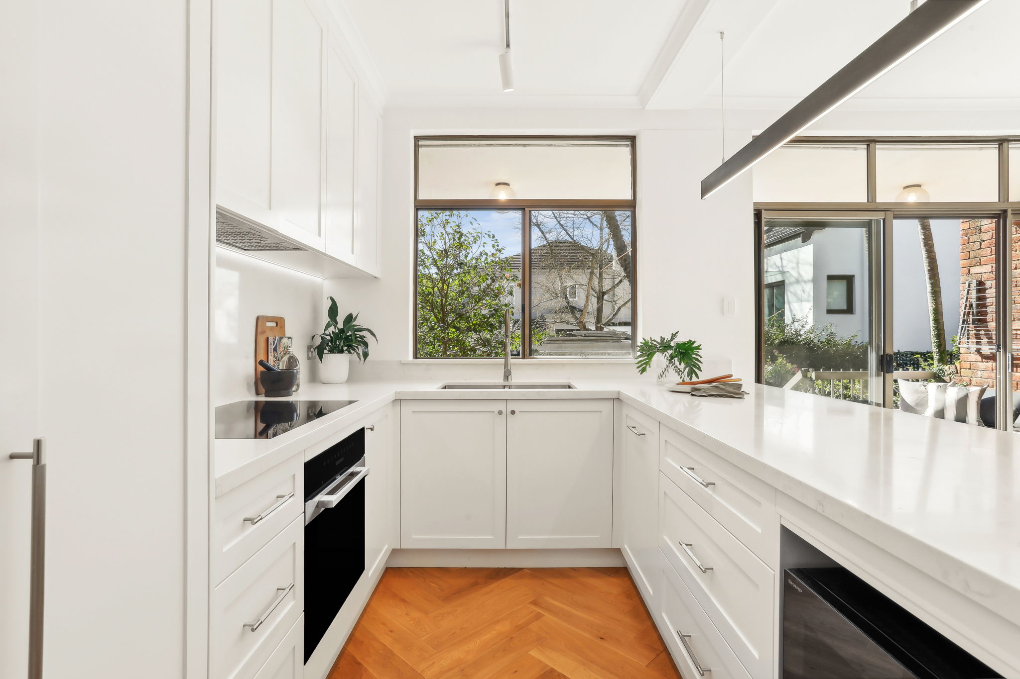 - Integrated kitchen with stone benches, Miele stove & dishwasher