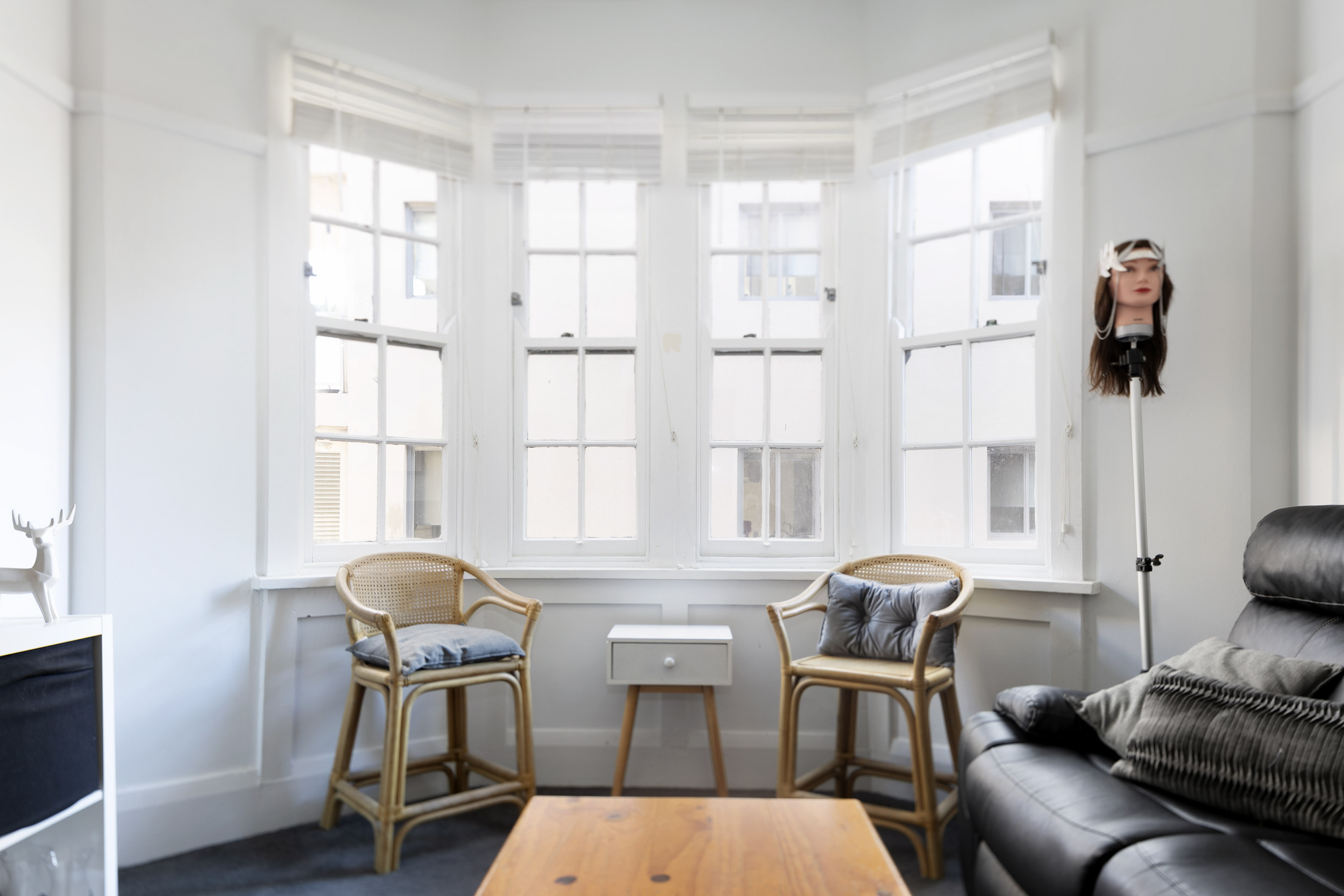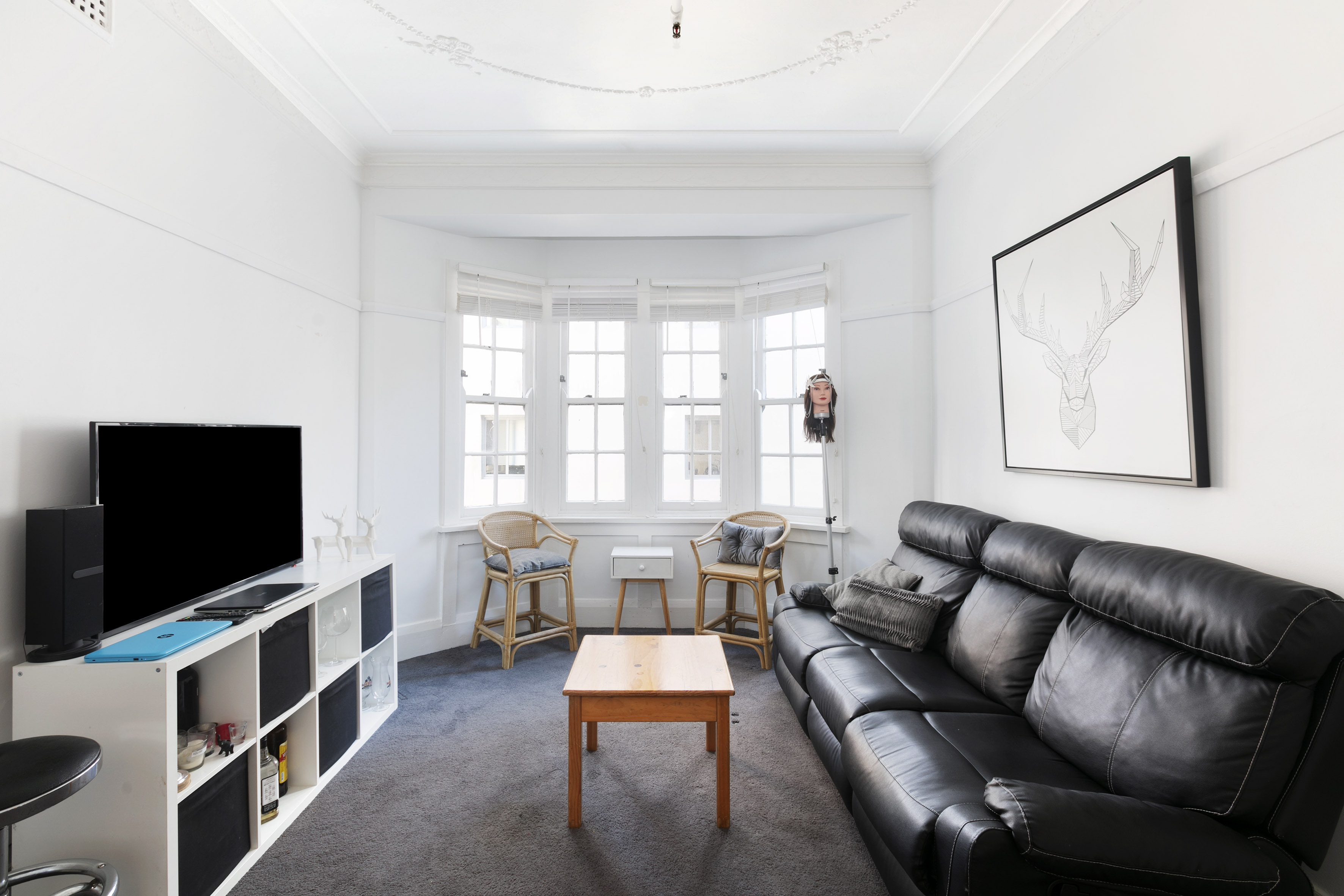 - Bright bay window in living