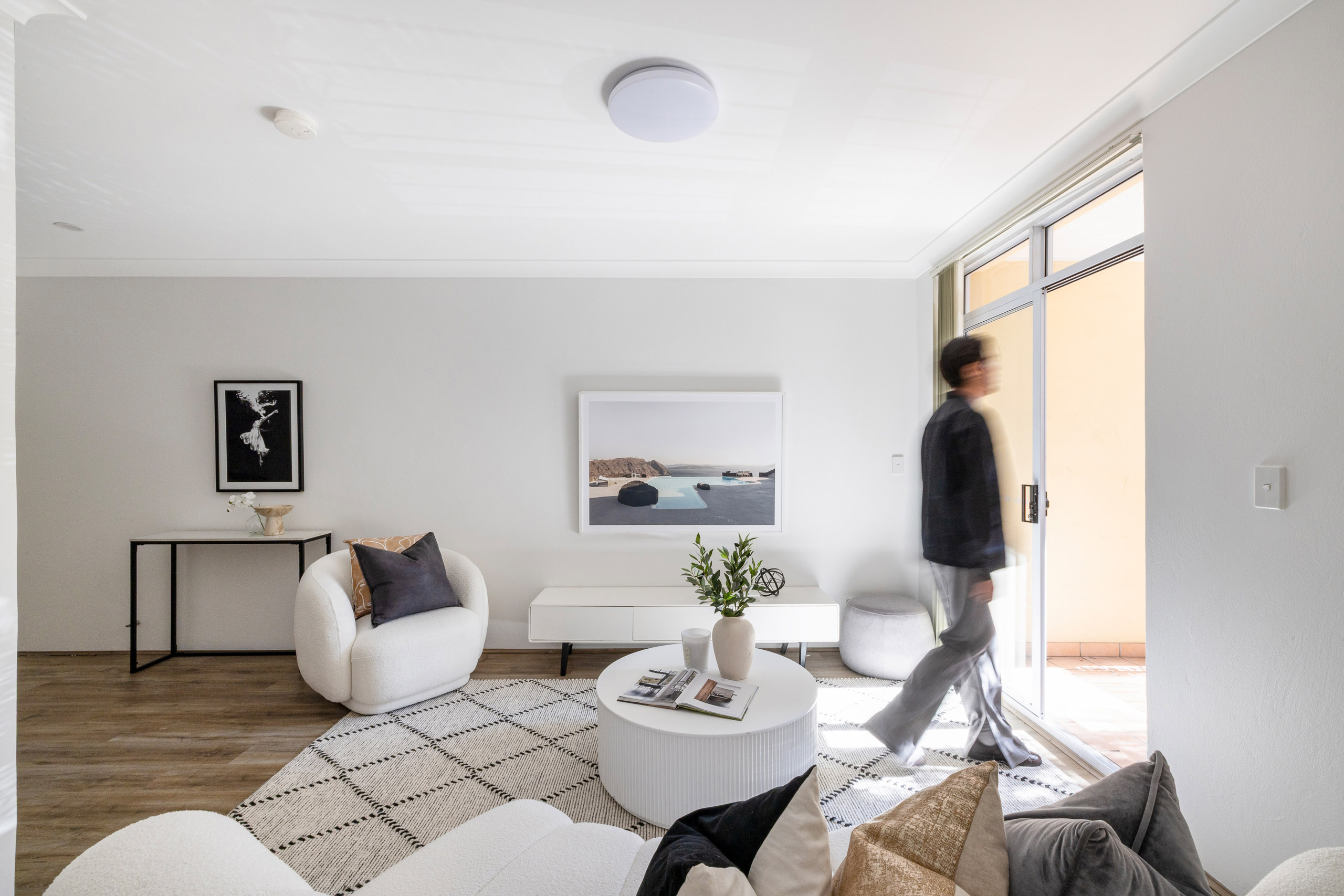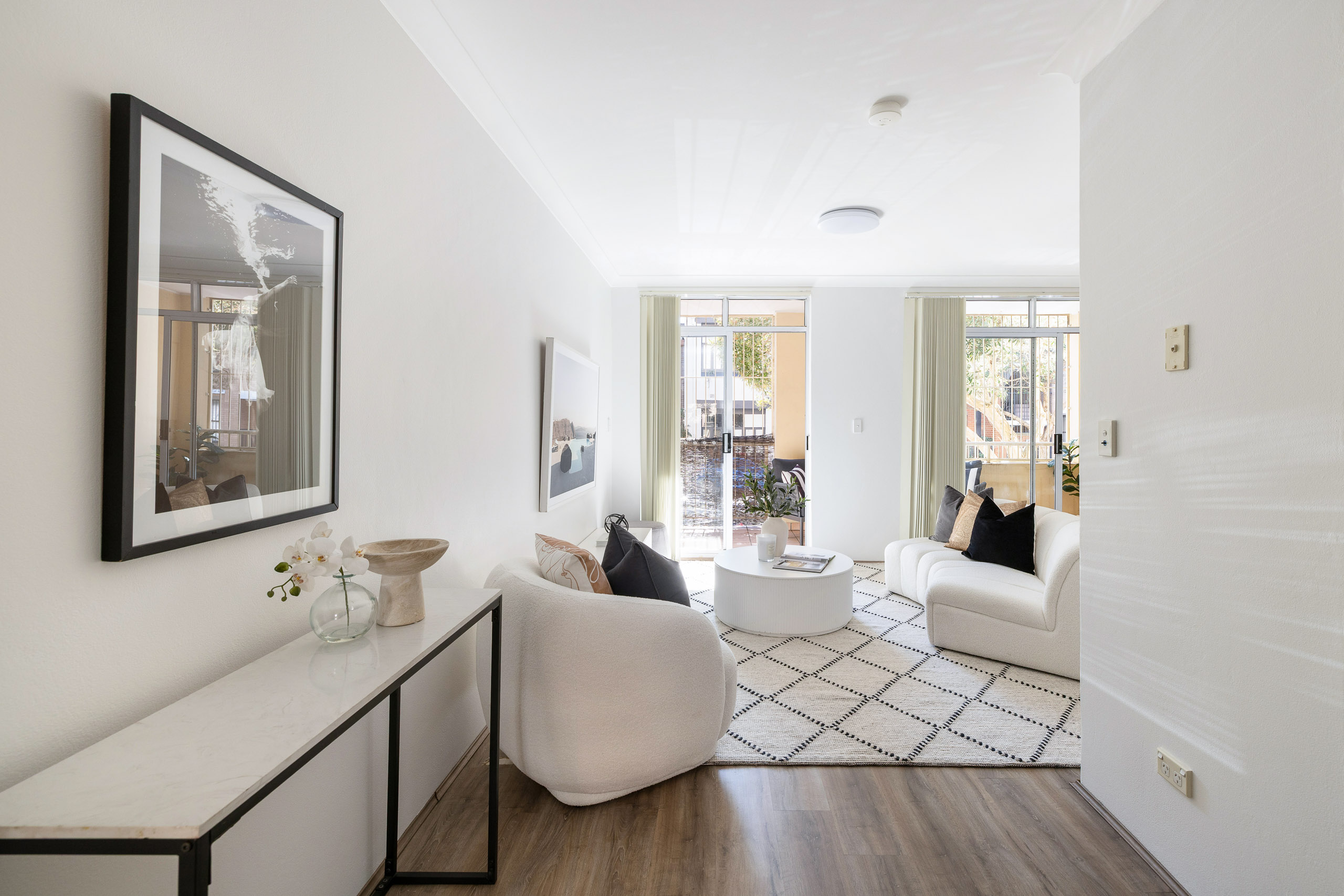 A north-facing balcony draws natural light into this streamlined ground-floor apartment. Double sliding glass doors connect the open living space to the full-width balcony and look out to a leafy streetscape. In a quiet pocket close to Peace Park, this is one of the most liveable and convenient pockets of the inner city, a short stroll to Chippendale Green, Kensington Street dining, Broadway, the universities and transport links.