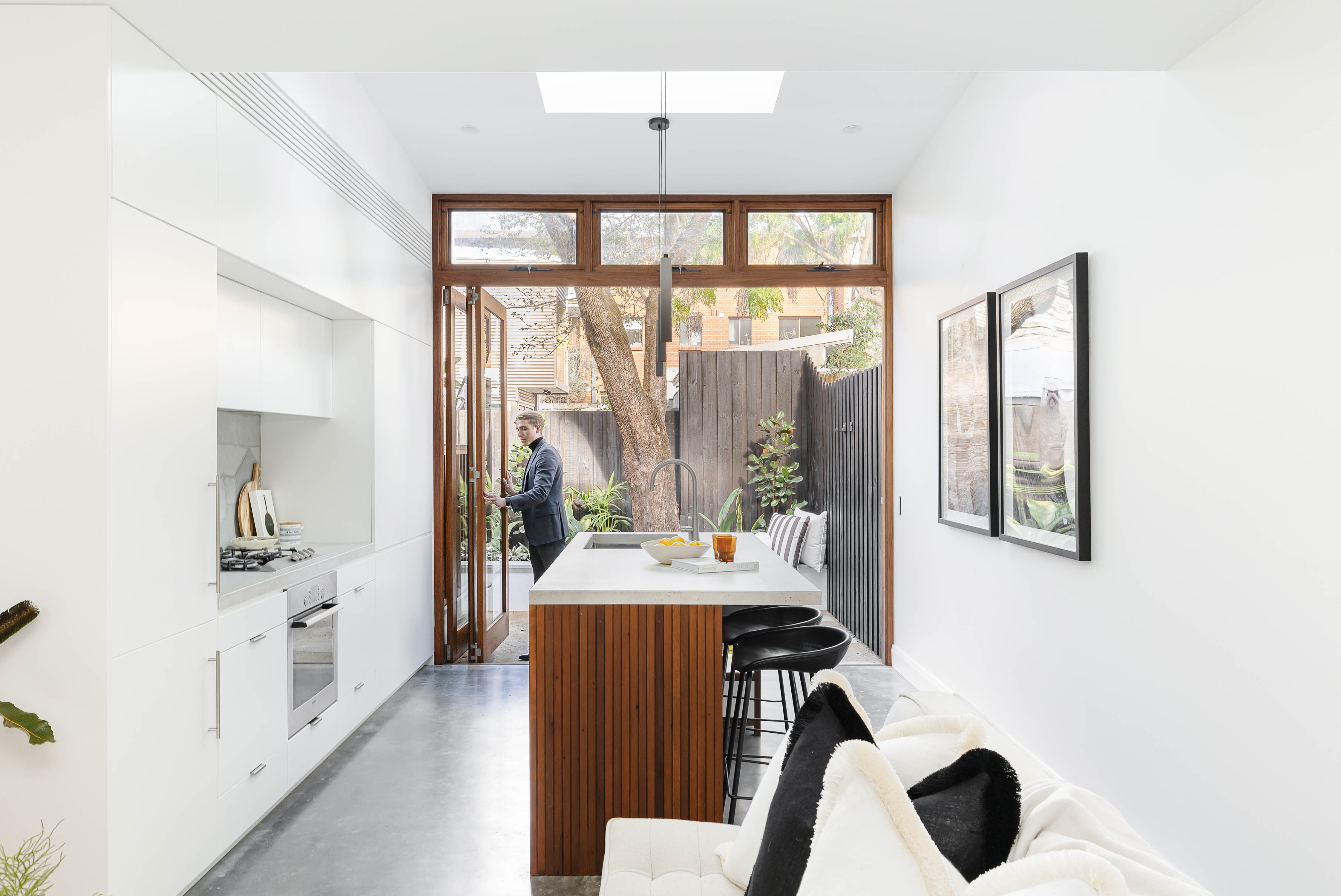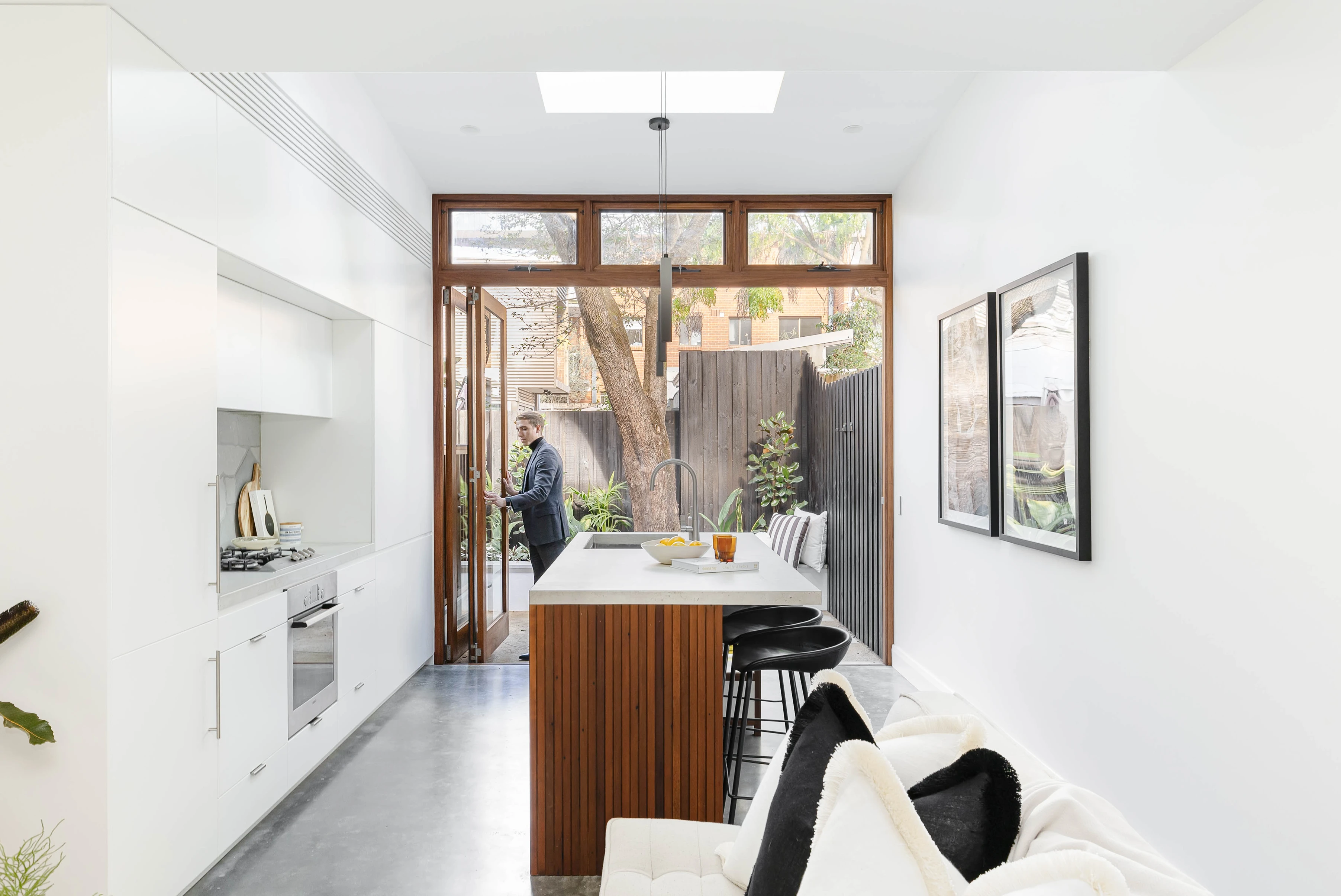 Rebuilt from front to back, this contemporary terrace is an immaculate modern space of inspired design, beautifully finished with sky-lit interiors, hardwood accents, natural stone and garden connection. In a tucked-away location on the edge of Erskineville village, an array of attractions are on your doorstep, with the home well-curated to match its surrounding lifestyle.