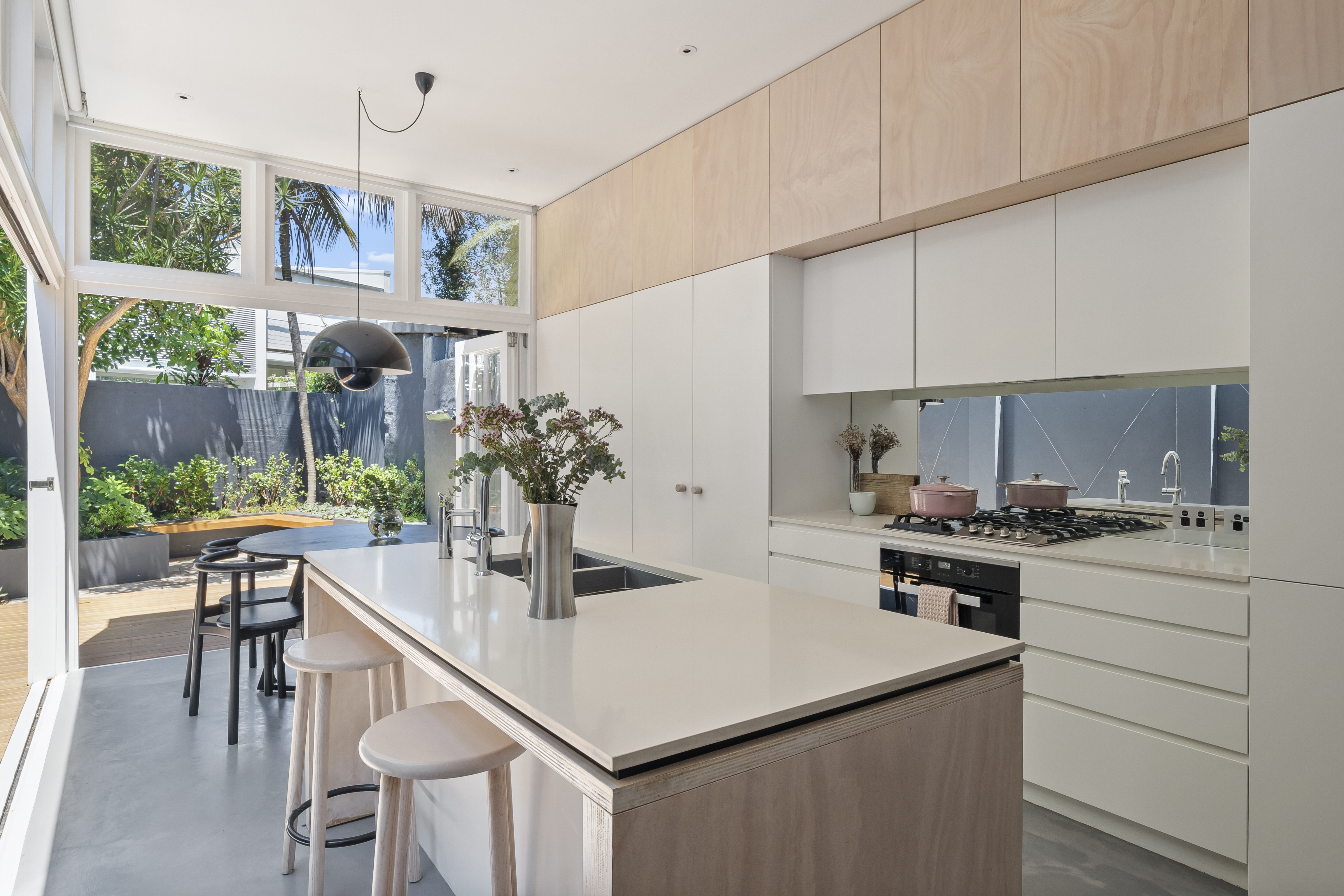 Located in a quiet street, this home has been designed by award-winning Eva-Marie Prineas from Studio Prineas to maximise natural light and easy family living. A short walk to The Royal Hospital for Women's Park and Five Ways, this free standing house to the north has three bedrooms and an innovative pavilion extension with wraparound deck and lush sunken garden. Both upper level bedrooms open to a balcony, the main with an ensuite, while a dedicated home office overlooks an internal atrium bringing light into the heart of the home. Featured extensively in design journals including Inside Out Magazine and The Local Project, and incorporating high-quality finishes, this is a home that is not only beautiful but a joy to live in.