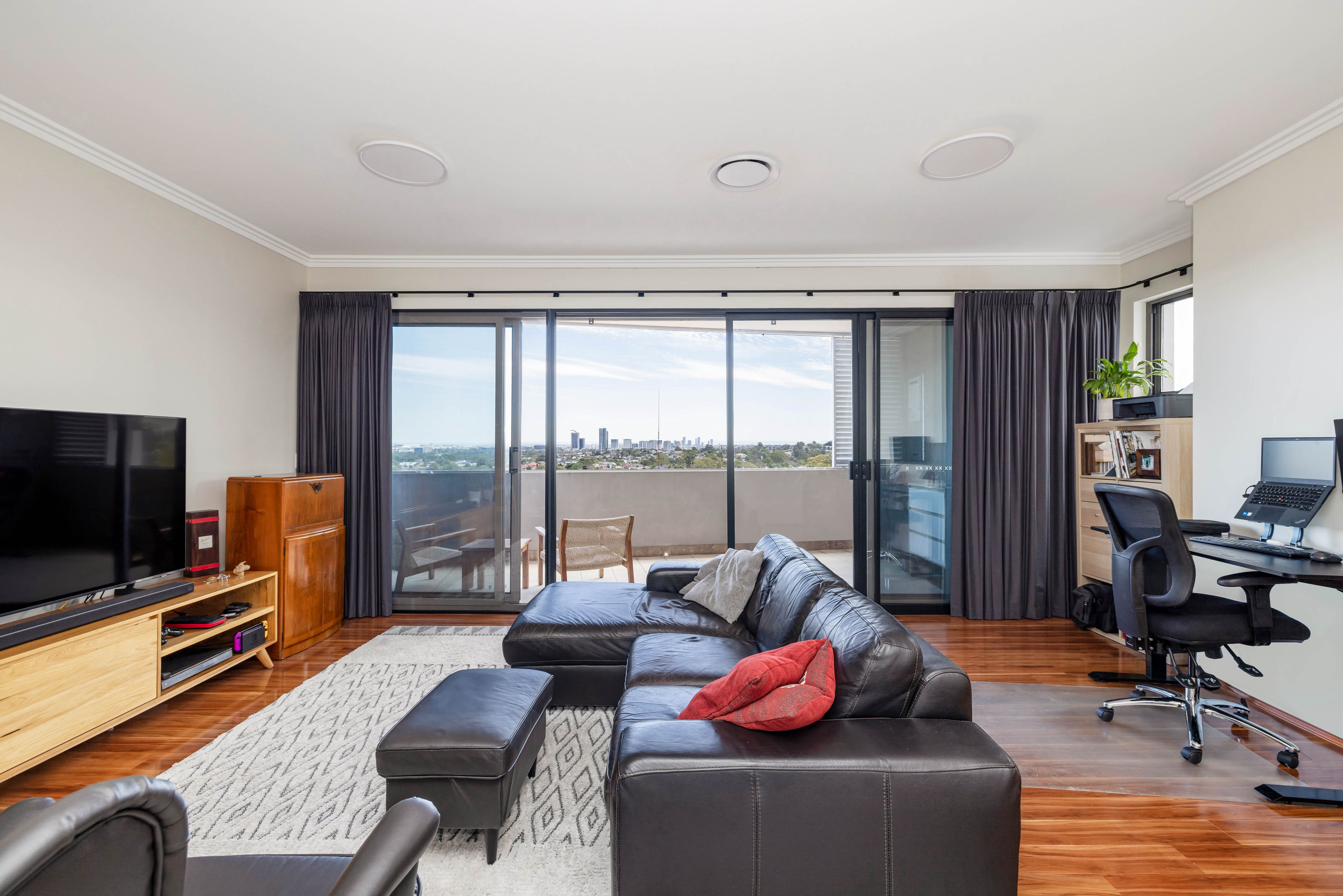 On the top floor of 'The Bellevue', this bright and spacious apartment captures stunning sunset views from a northwest aspect. Tailored for modern living, it offers an open-plan design with a large balcony, and all the conveniences of Gladesville's vibrant lifestyle at your doorstep. A home that delivers a sense of quiet, behind energy-efficient triple-glazing, and an impressive package totalling 142sqm on title.