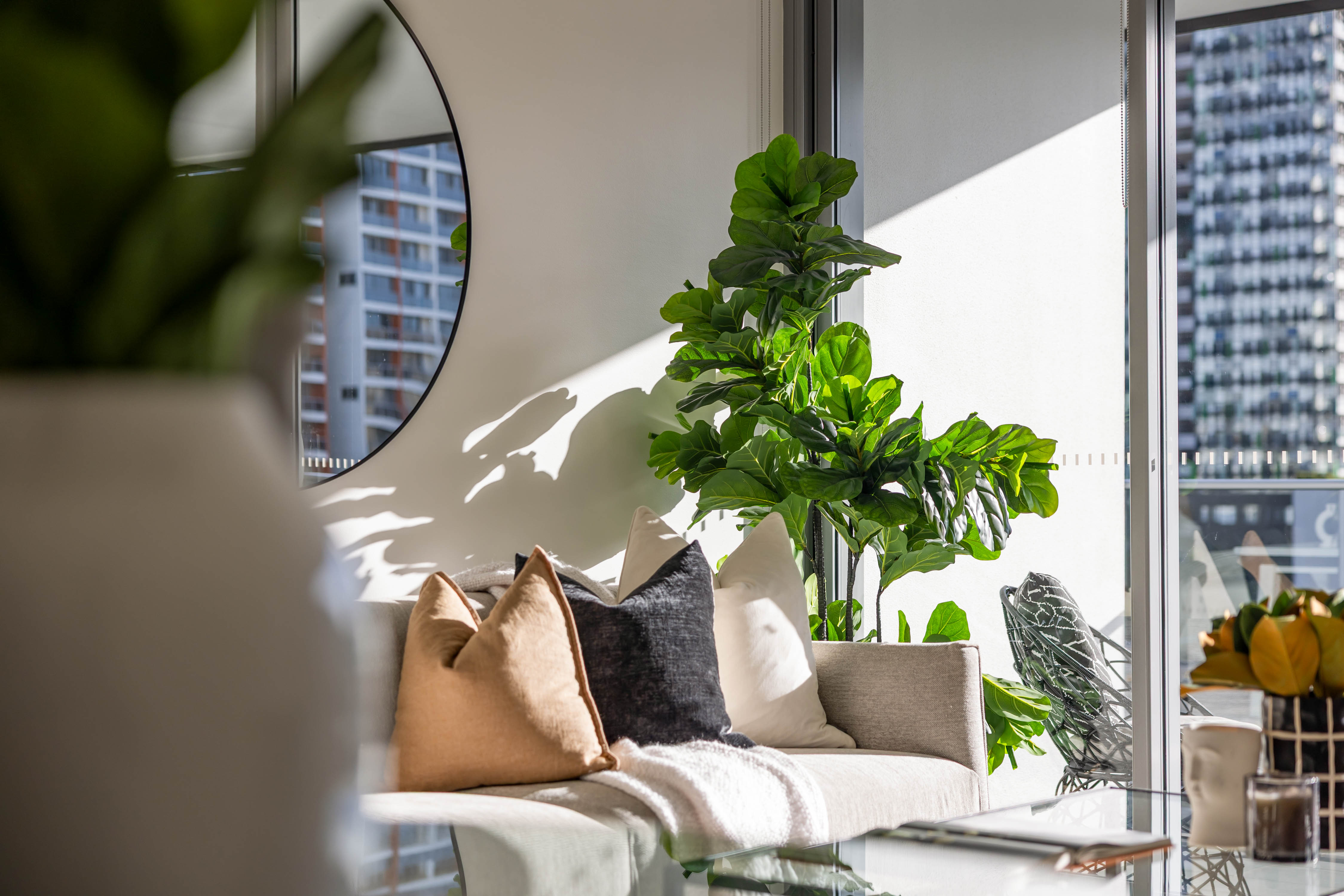 - Full-width balcony to beds/living