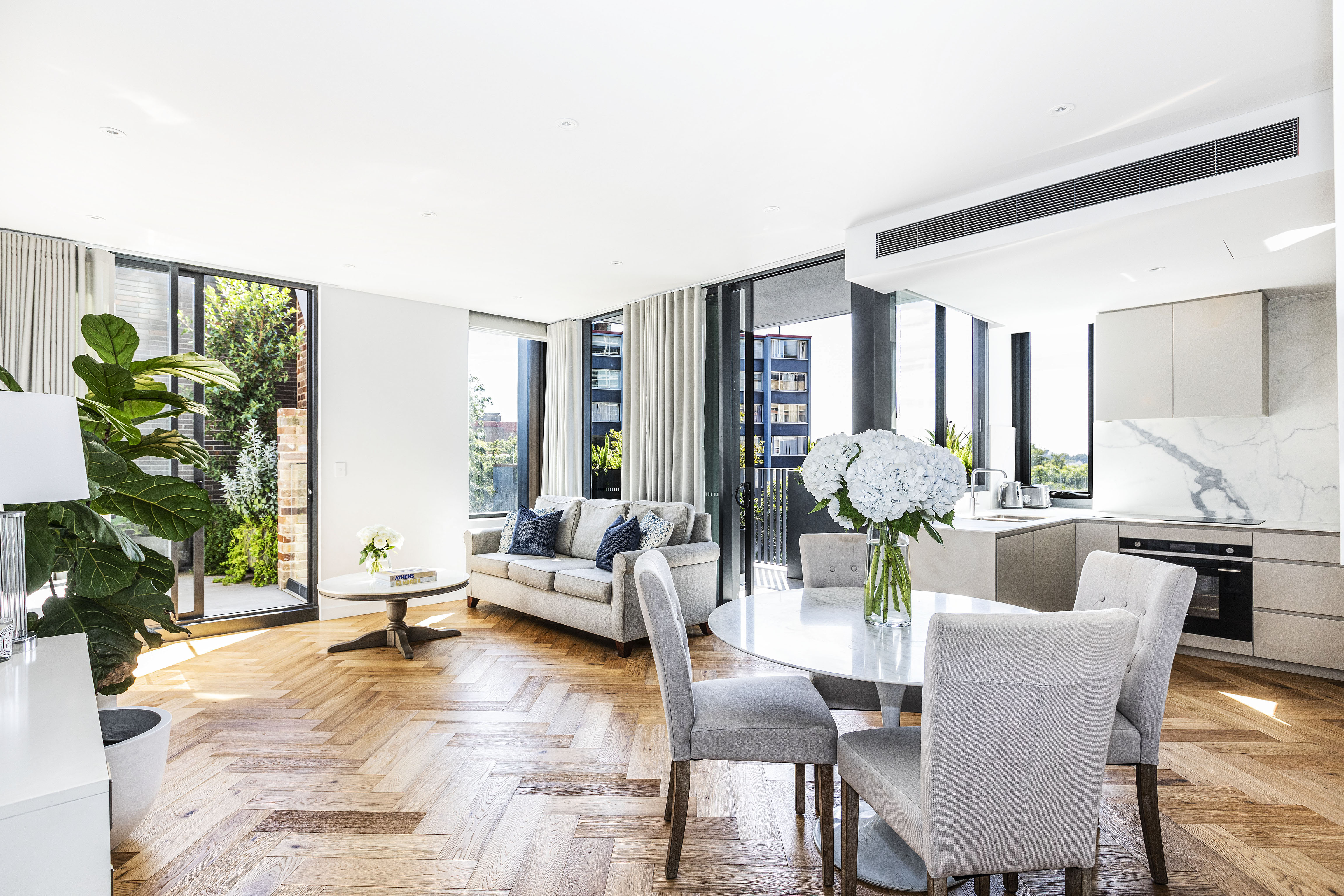 - Ducted air con, herringbone parquet floors