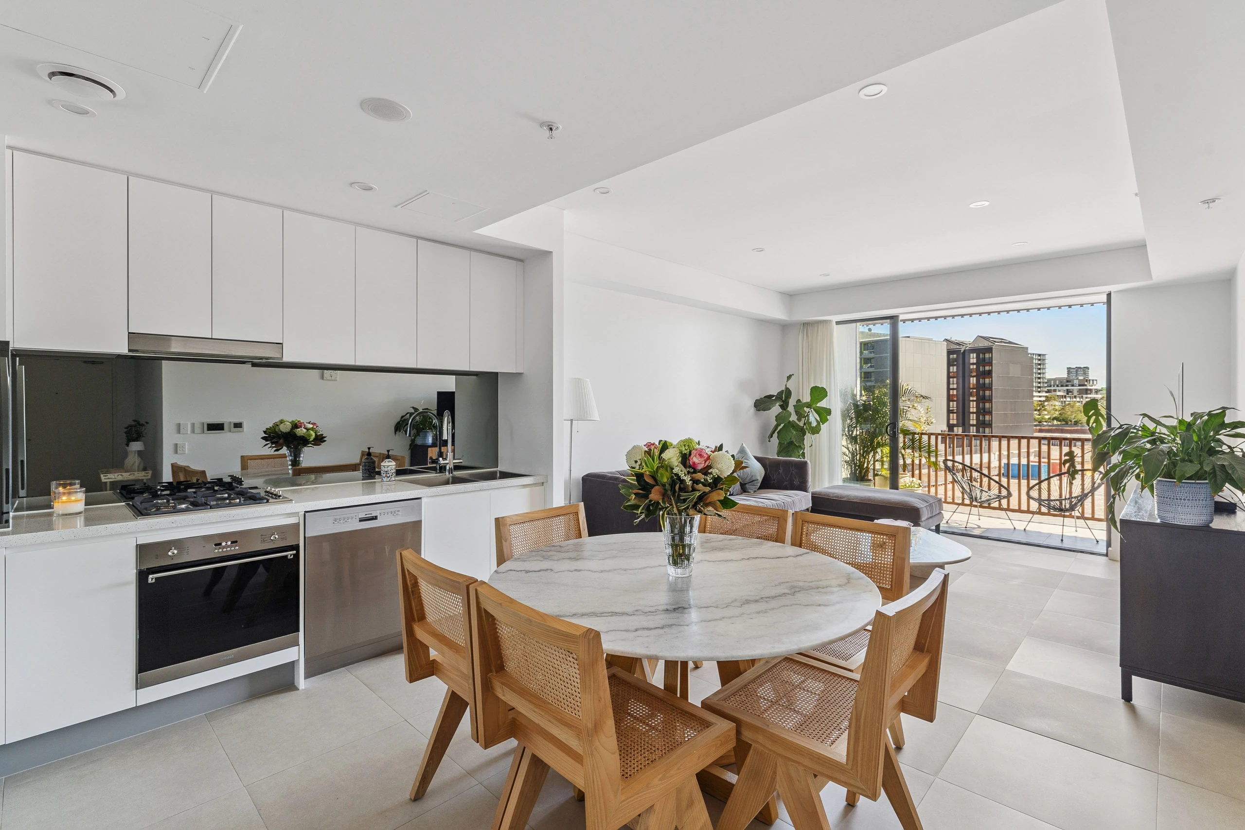 - Fluid open living and dining zones