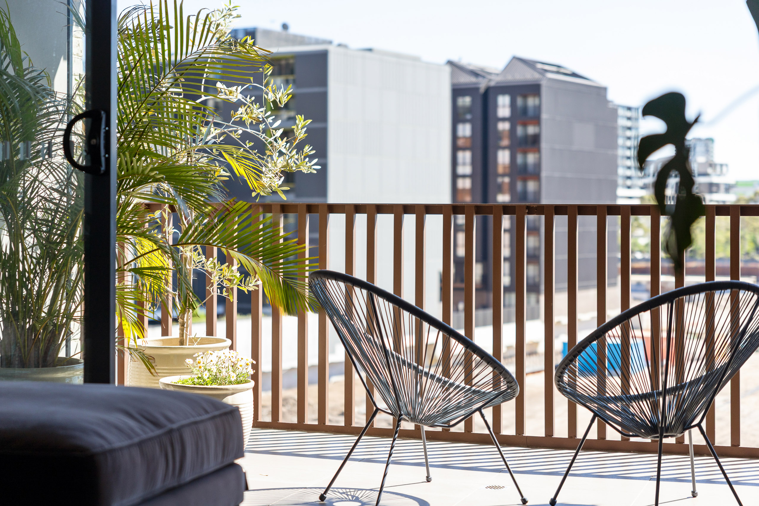 - Tall glass sliders to large balcony