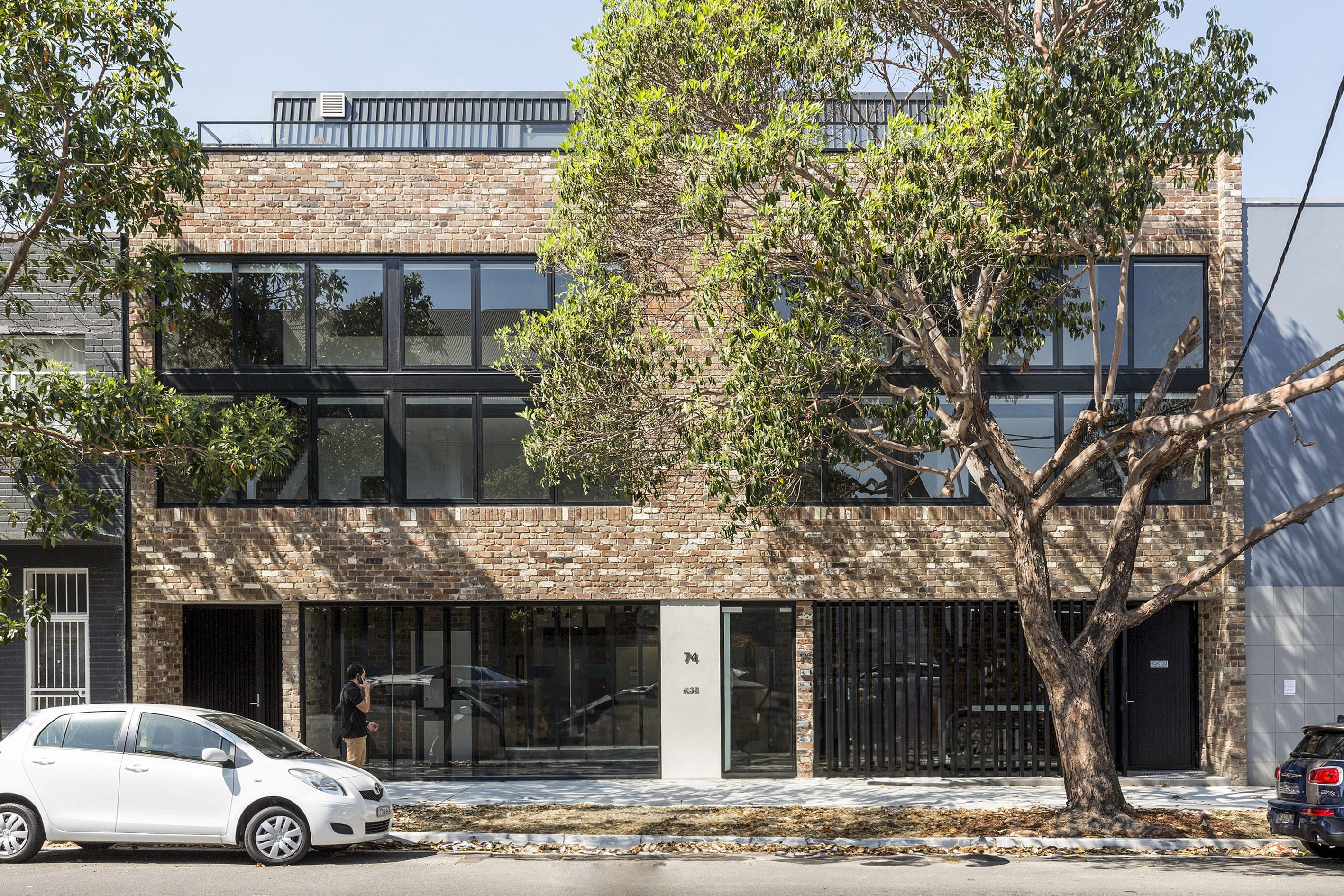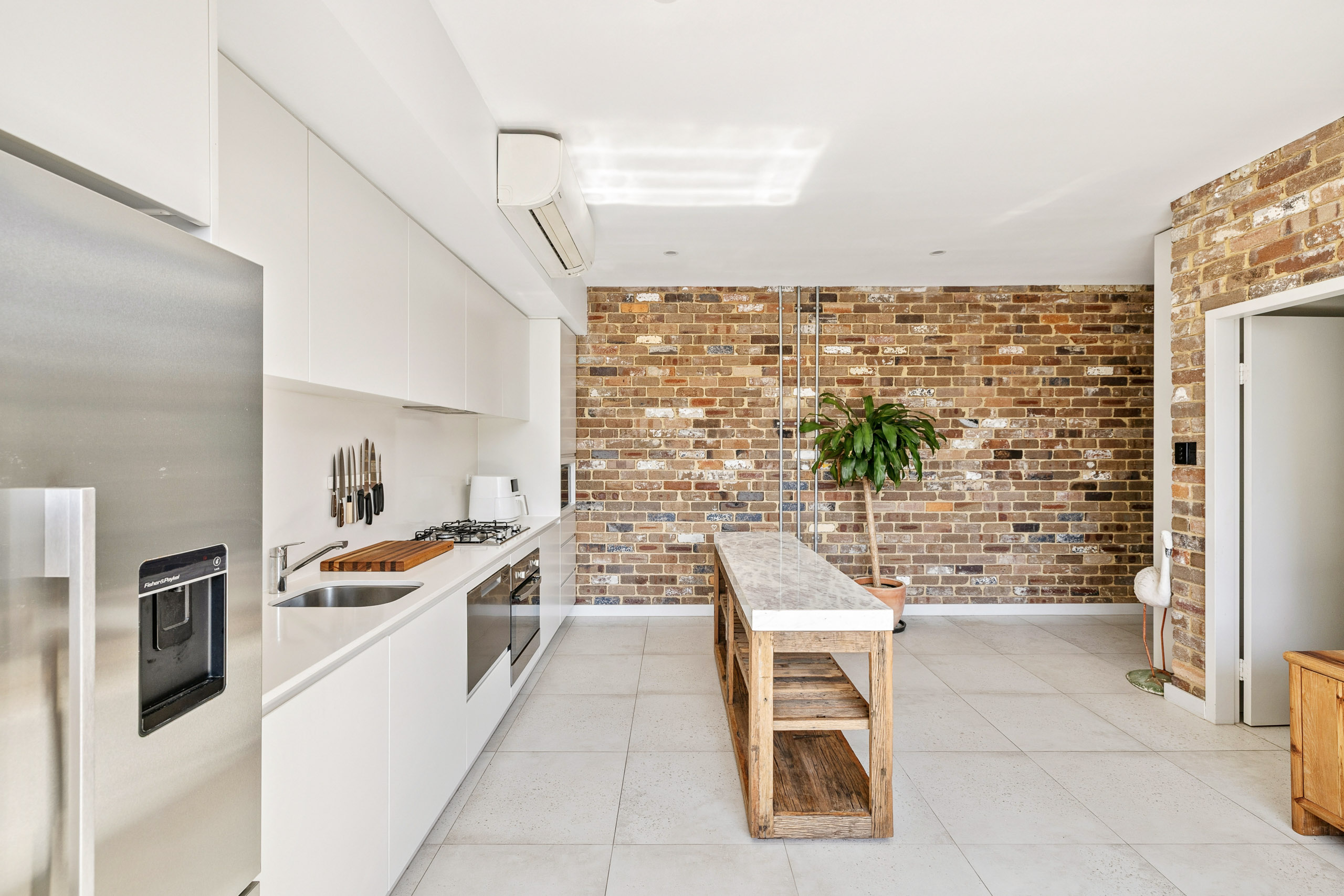 - Exposed brickwork, raw concrete and steel