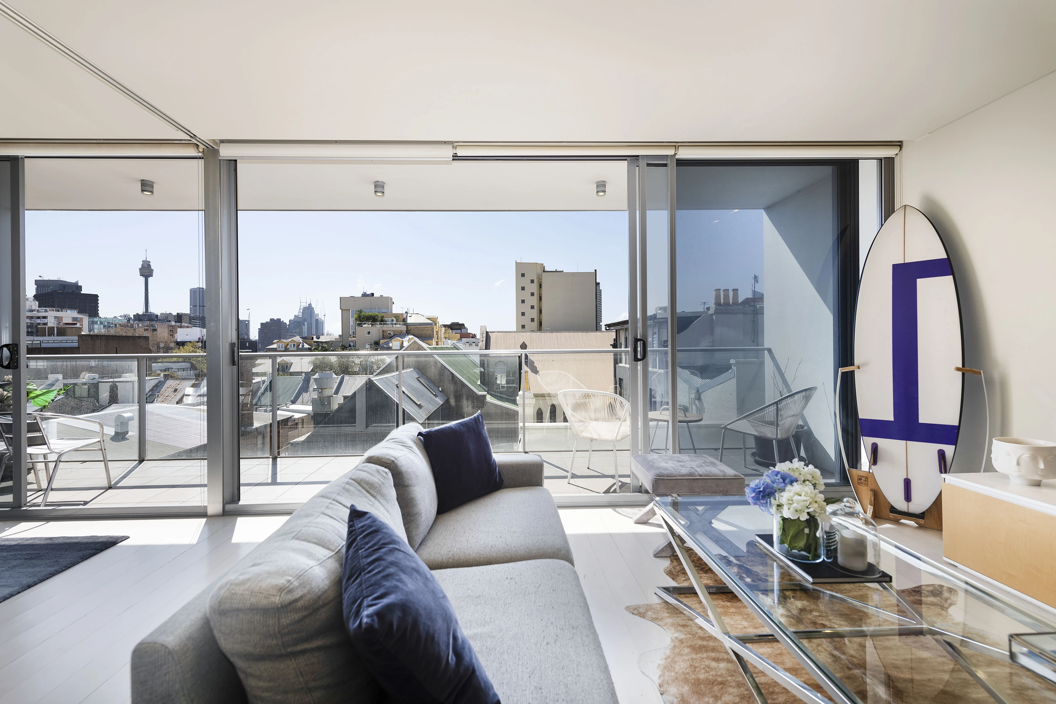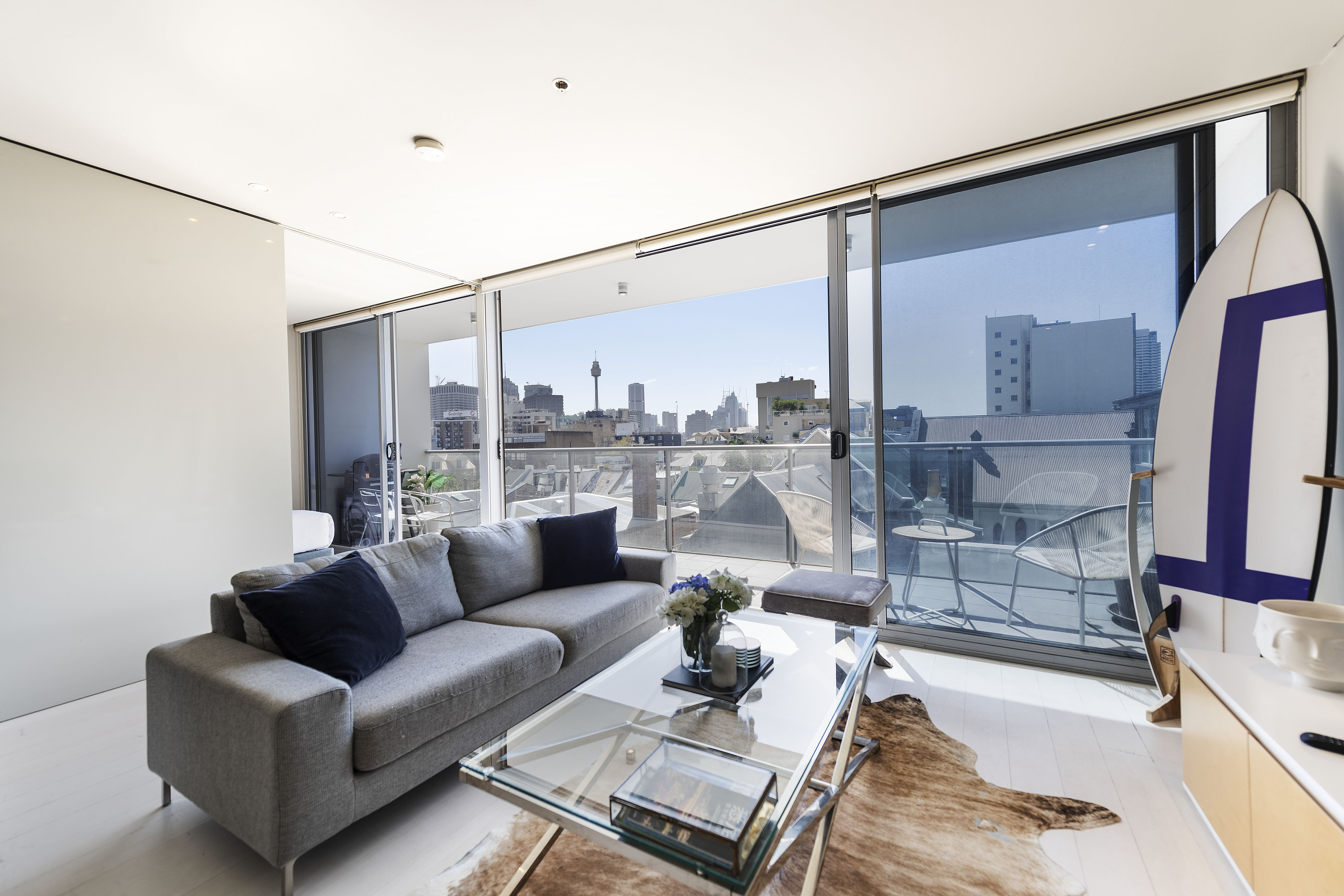 - Full-width balcony, N-facing, CBD views