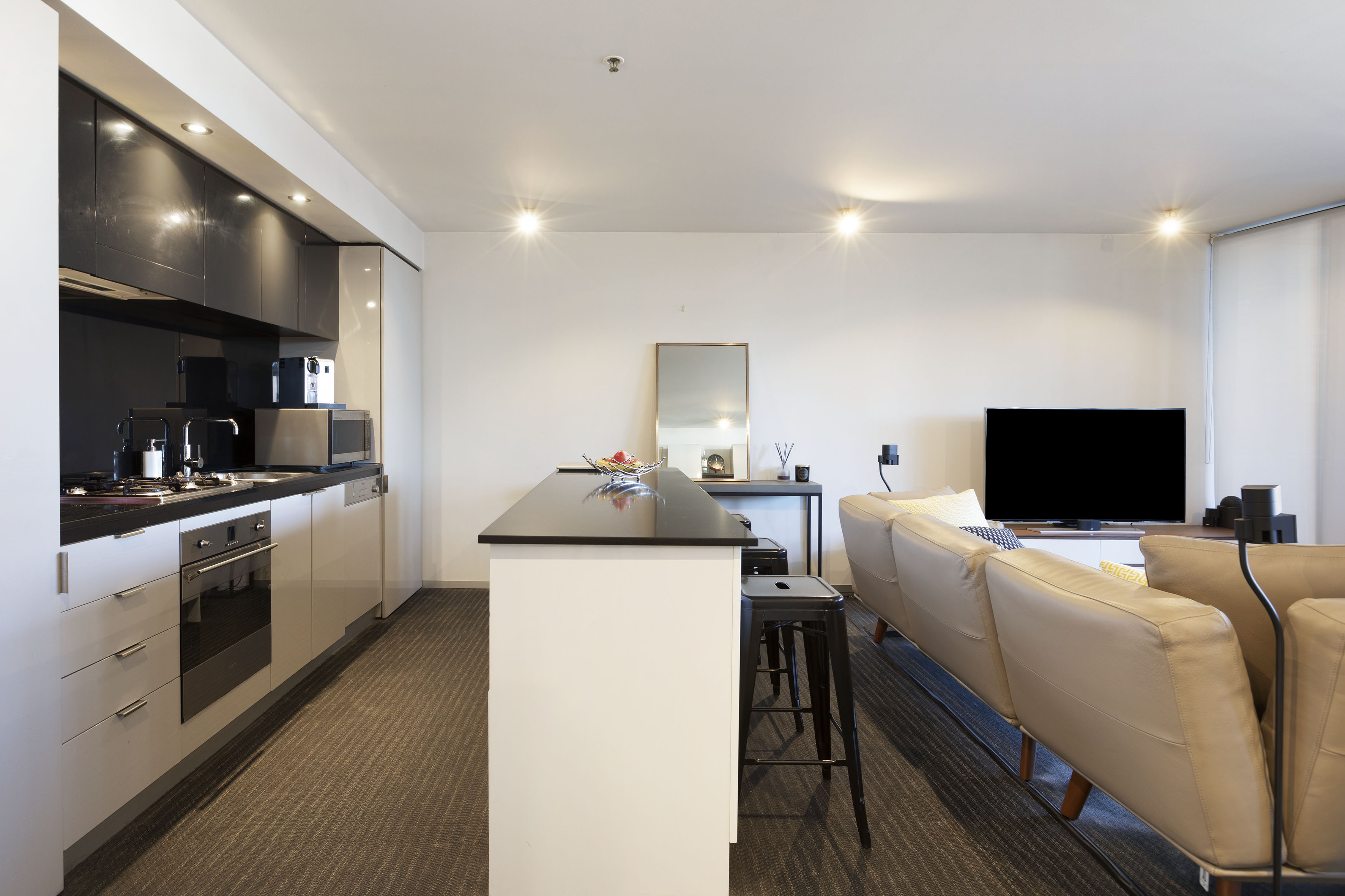 - Intl position, full-width balc, island bench